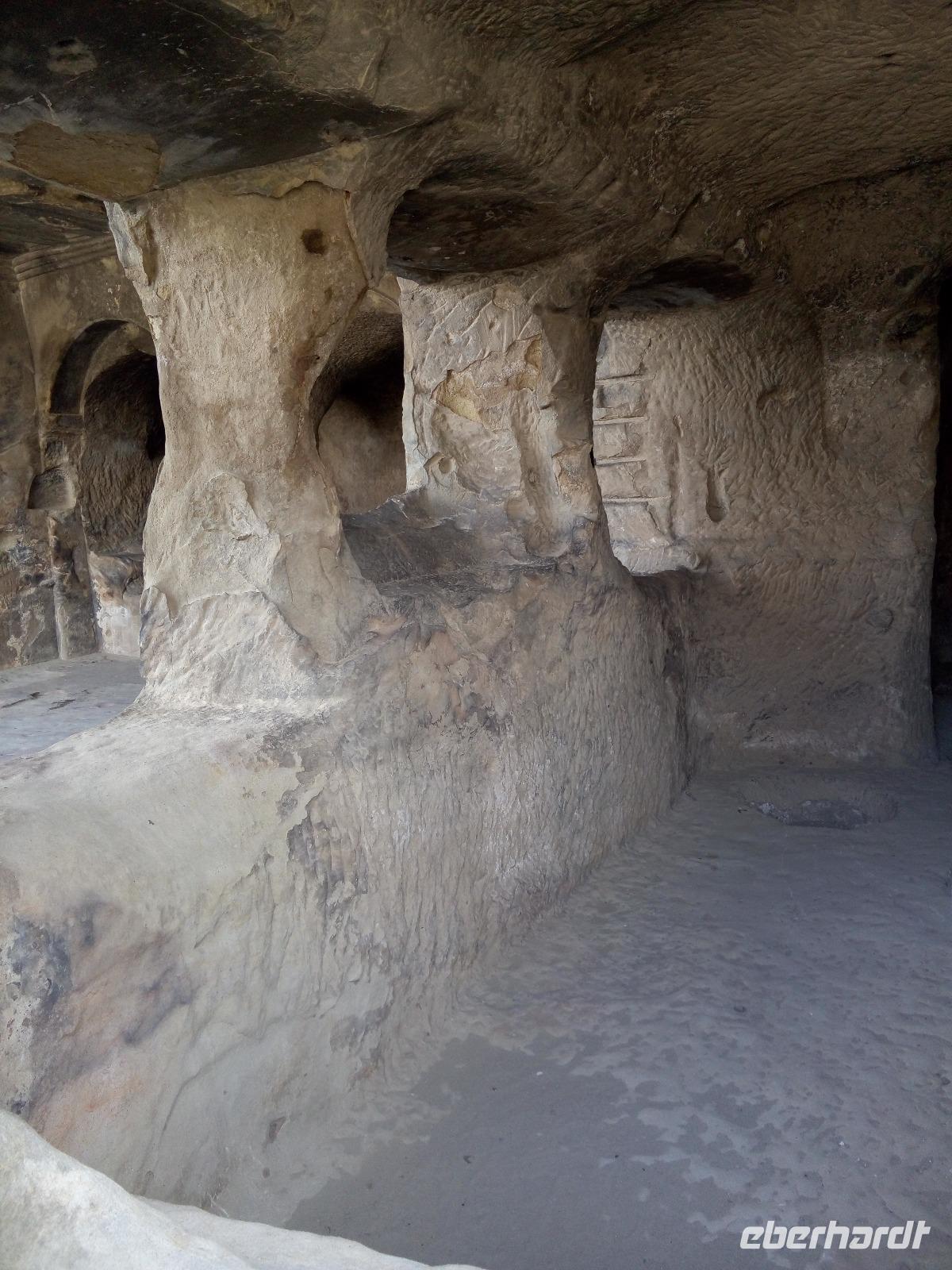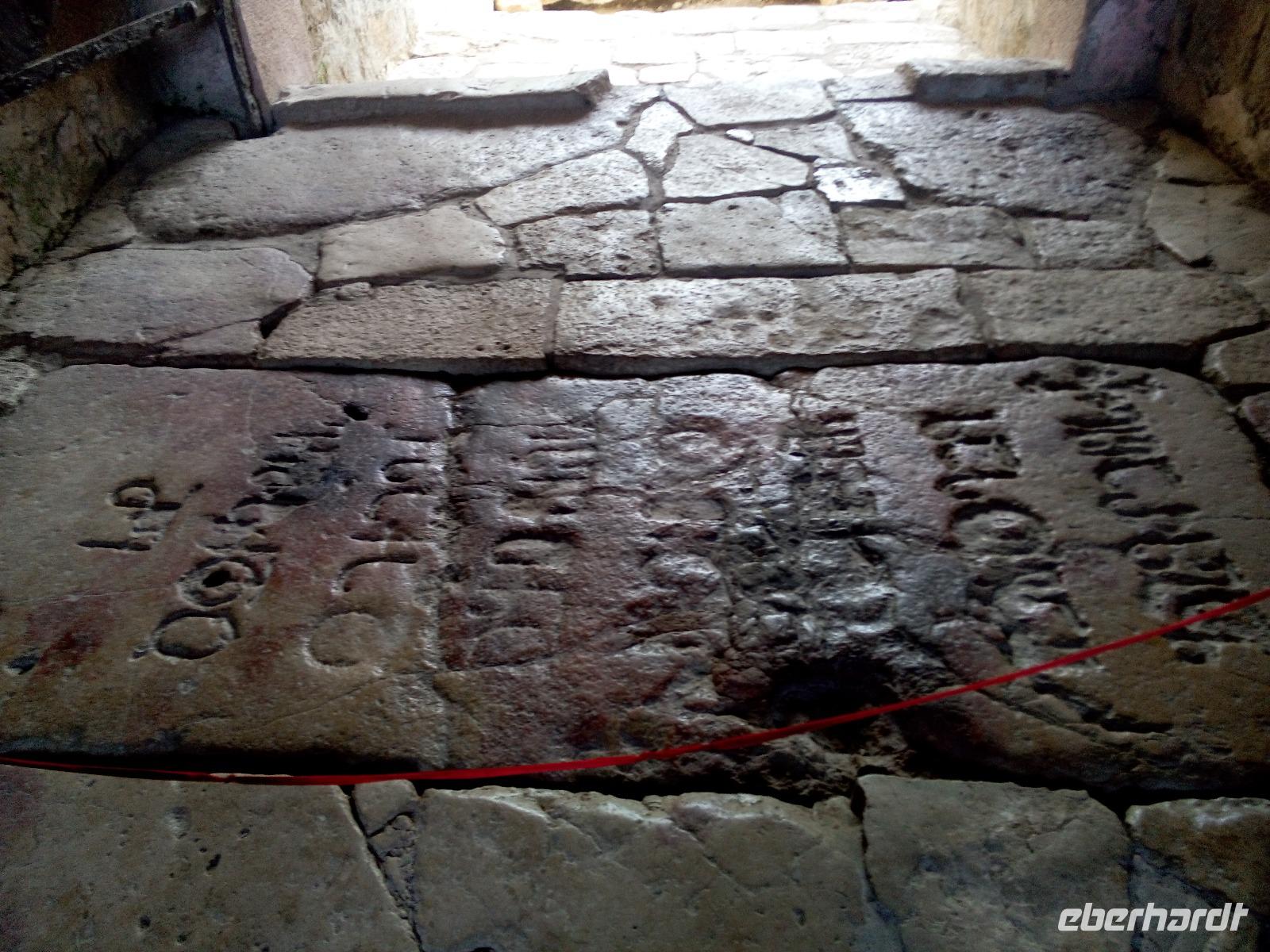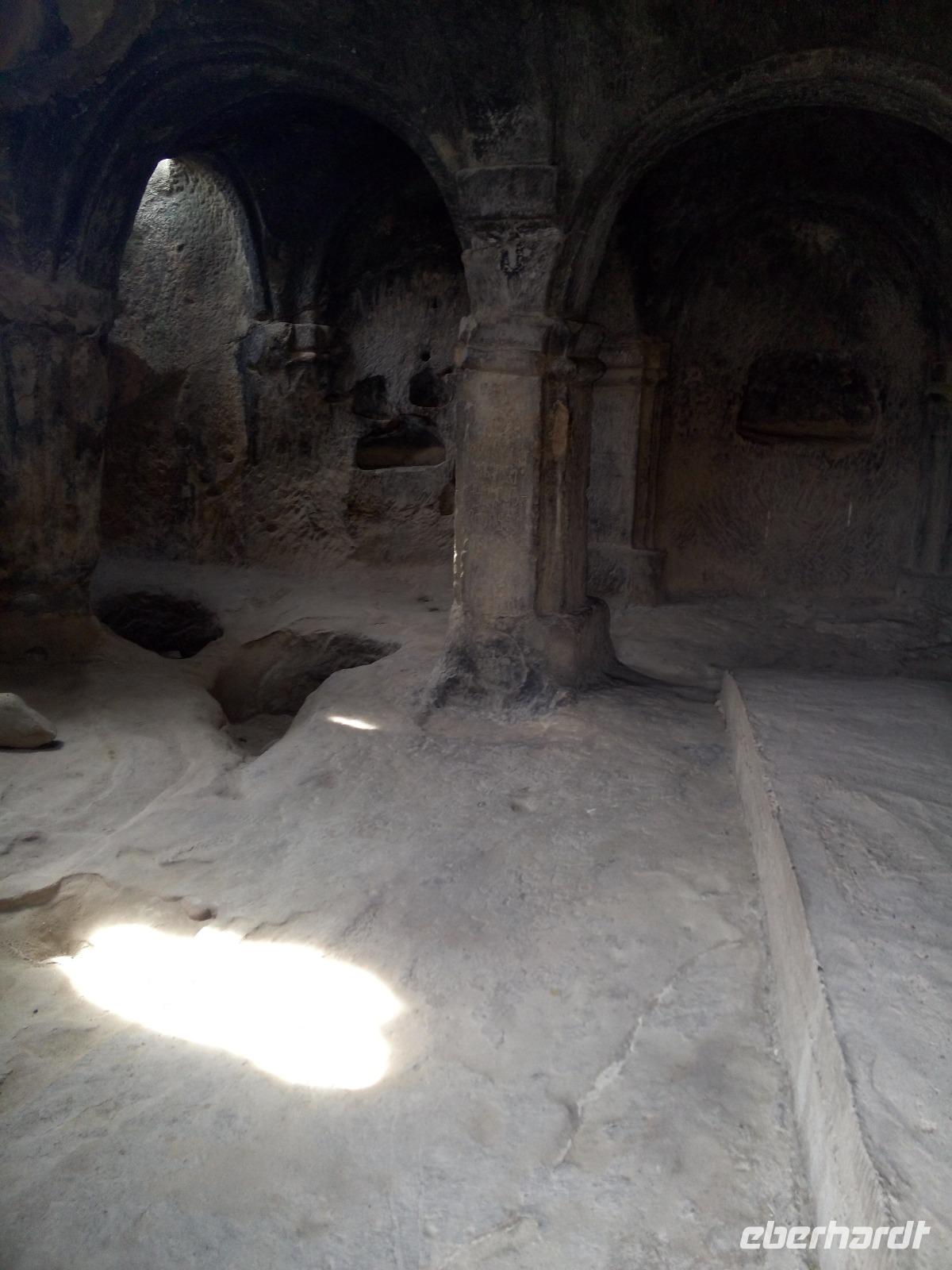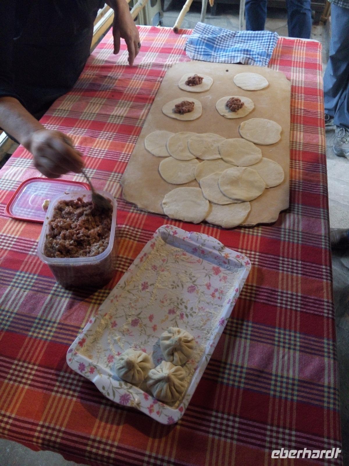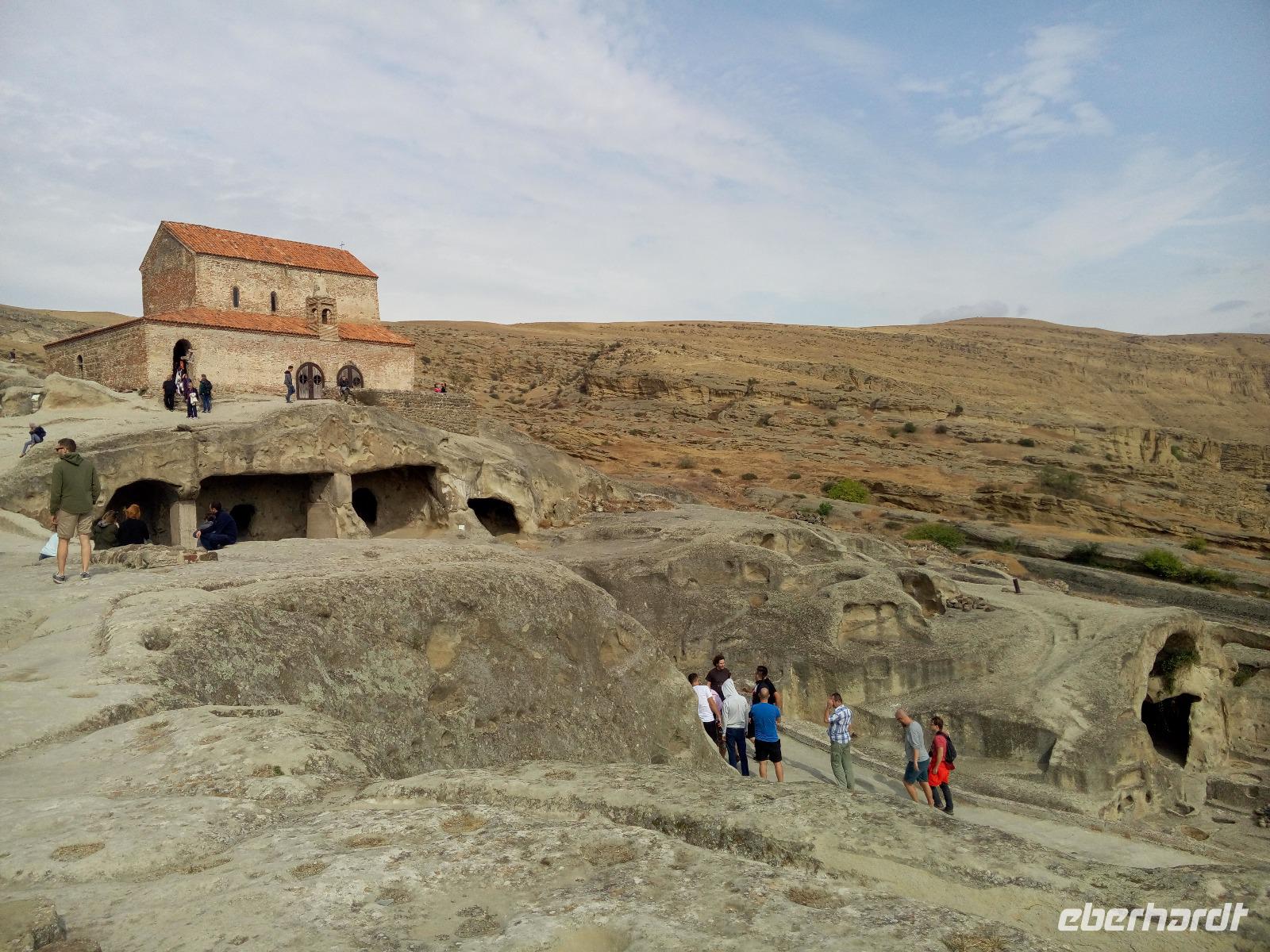 Die Höllenstadt Uplisziche wurde im 6. Jh v. Chr. gegründet. Bis zum 19 Jh. haben dort Leute gewohnt. In der Goldzeit von Uplisziche gab es dort mehr als 700 Höllen. Jetzt gibt es ca. 150. Die Stadt befindet sich auf einem Plateau, deswegen ist dort oftmals Wind. Nachdem wir viele viele Fotos gemacht haben und in fast jede Hölle eingestiegen sind, sind wir wieder Richtung Gori gefahren, wo wir eine kleine Pause bei dem Museum von Stalin gemacht haben, ein paar Souvenirs eingekauft, sein Geburtshaus gesehen und weiter zu der Familie Iago unseren Weg fortgesetzt. Bei dem Bauernhof von der Familie Iago, wo wir gegen 16.30 angekommen sind, konnte man selbst das traditionelle georgische Brot braten, Hinkali vorbereiten, Chacha verkosten oder die Tschurtschchela machen. Man konnte auch den georgischen Weinkeller besuchen, wo der Wein im großen Amphoren in der Erde begraben ist. Am Anschluss hatten wir ein Abendessen bekommen, auch von den Produkten die wir selbst gemacht haben. Natürlich, gab es auch Schaschlik, ein Fleisch, was am Spieß gebratenen ist. Damit wir etwas mehr von den Sitten und Traditionen von Georgien erfahren, wurde eine Folkloregruppe eingeladen. Besonders schön waren die roten traditionellen Kleider von den Männern aus der Folkloregruppe. Bei den Trinksprüchen und georgischen Liedern ist die Zeit geflogen. Schon waren wir wieder unterwegs, Richtung Tbilisi.