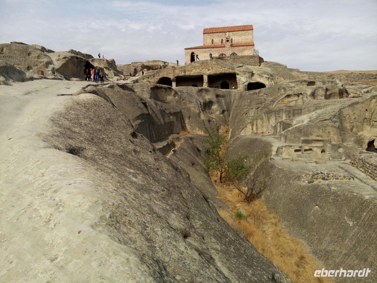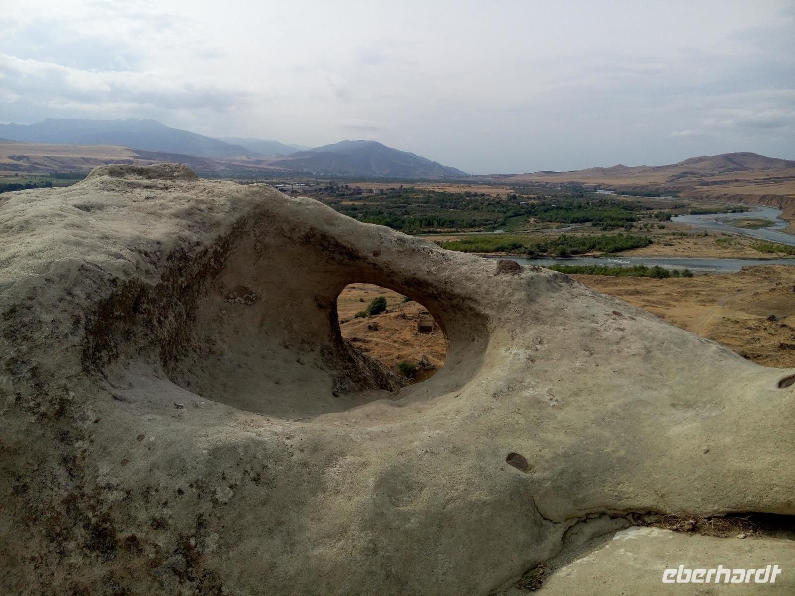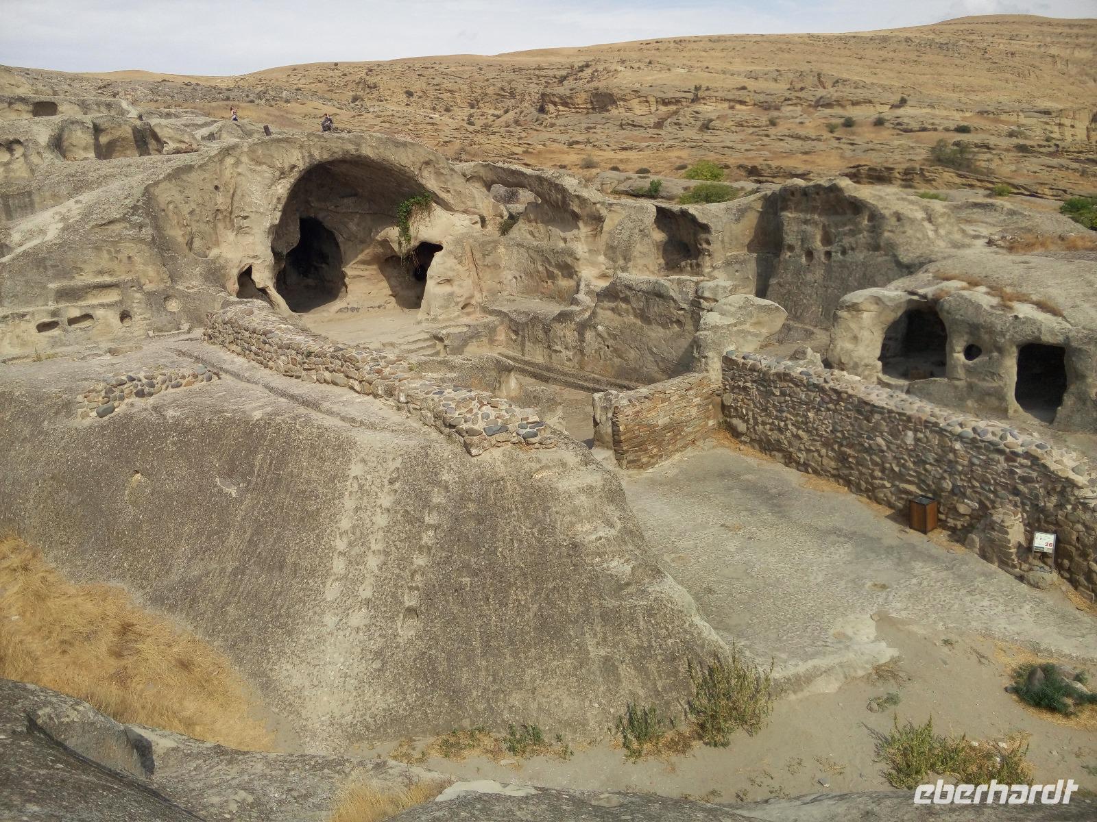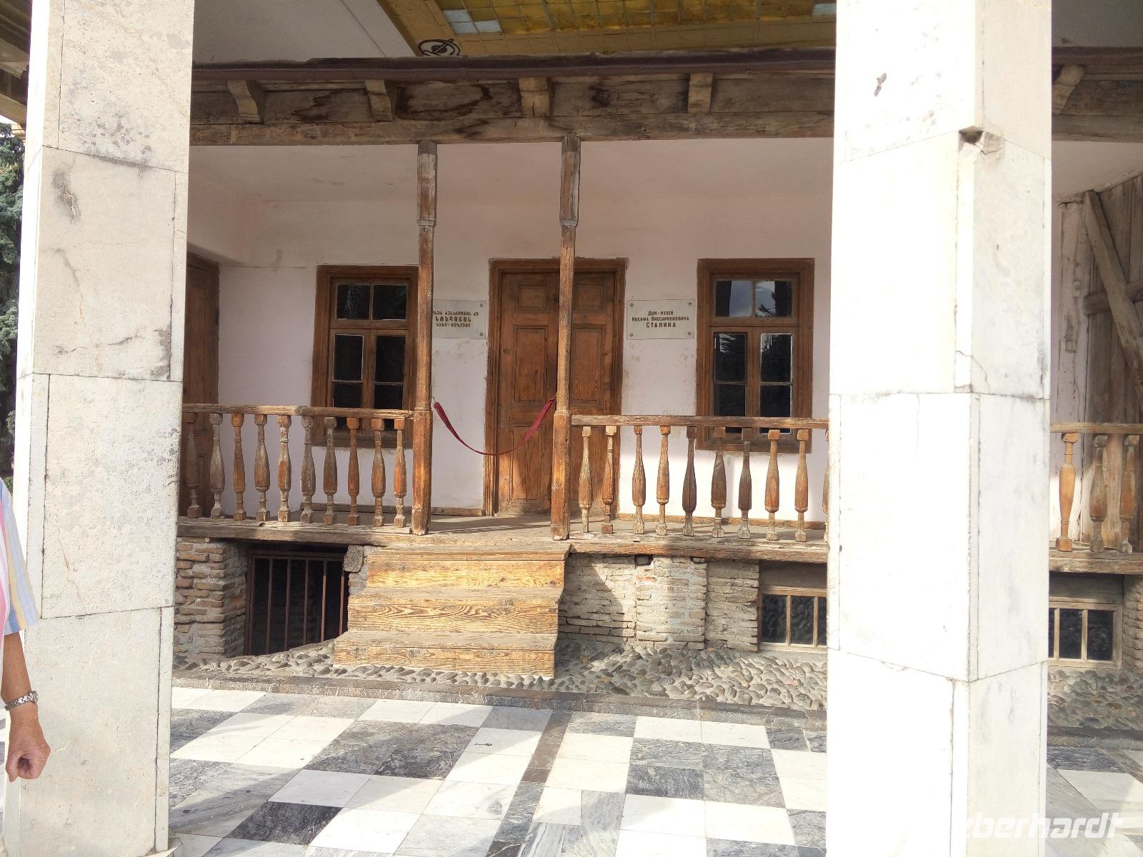 An diesem Tag nach dem frühen Frühstück haben wir einen kleinen Stadtrundgang gemacht. Natürlich, das interessanteste war der Markt, der sich nicht weit von unserem Hotel befand. Wir haben Weintrauben und eine riesige Wassermelone gekauft. Selbstverständlich, Nüsse, georgischen Tee und weitere Spezialitäten. Heute lag unsere Reise über Gori, Höllenstadt Uplisziche nach Tbilisi, die Hauptstadt von Georgien. Damit wir das wechselbare Wetter besser genießen konnten, haben wir erstmal die Höllenstadt besucht und dann eine kleine Pause bei dem Stalinmuseum in Gori gemacht. Gori ist die Stadt, wo Stalin geboren wurde, deswegen steht dort ein Haus wo er als Kind gelebt hat und ein großes Museum.