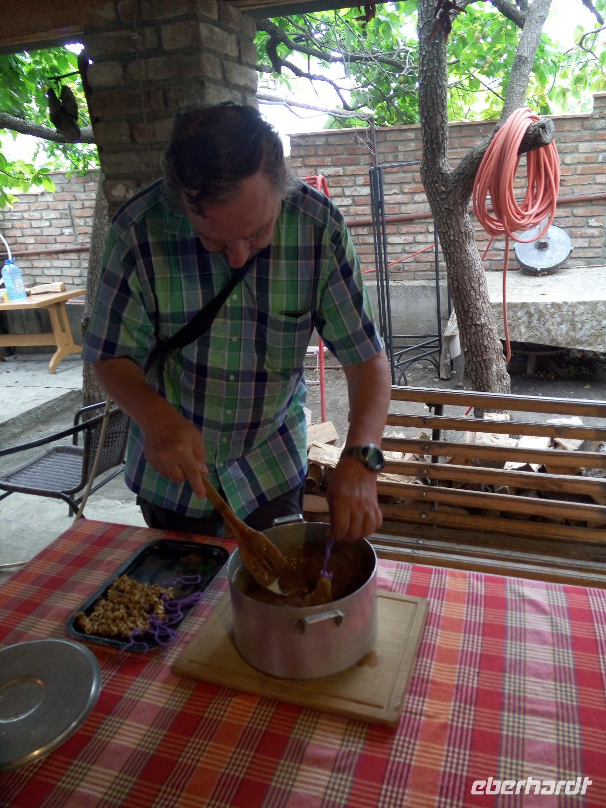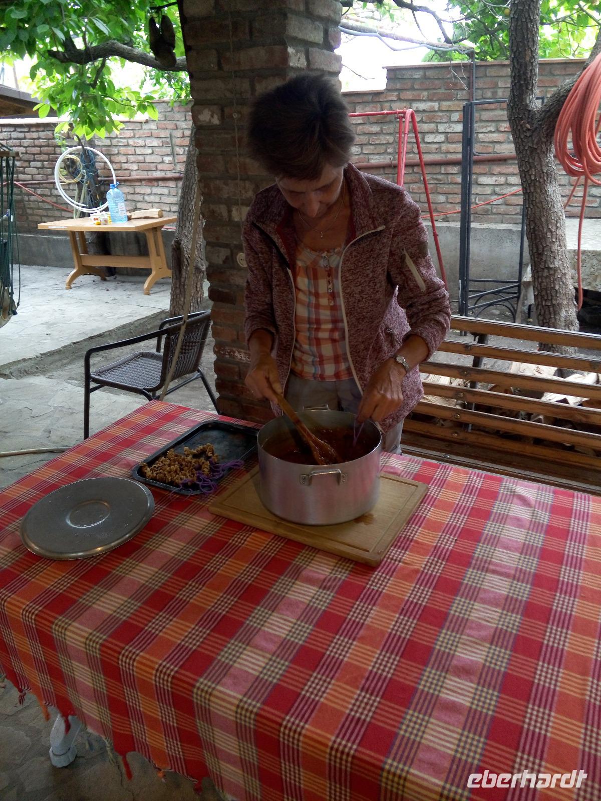 Natürlich haben wir auch eine Mittagspause gemacht. Und zwar in Sugdidi, einer Hauptstadt von der Region Mingrelien. Da dürften wir eine einzigartige Tradition von den georgischen Restaurants kennenlernen. Man bezahlt die Rechnung per Tisch und nicht pro Person. Also, vergessen Sie nicht, was sie bestellt haben und was das kostete, der Kellner ist Euch keine Hilfe. ;-)