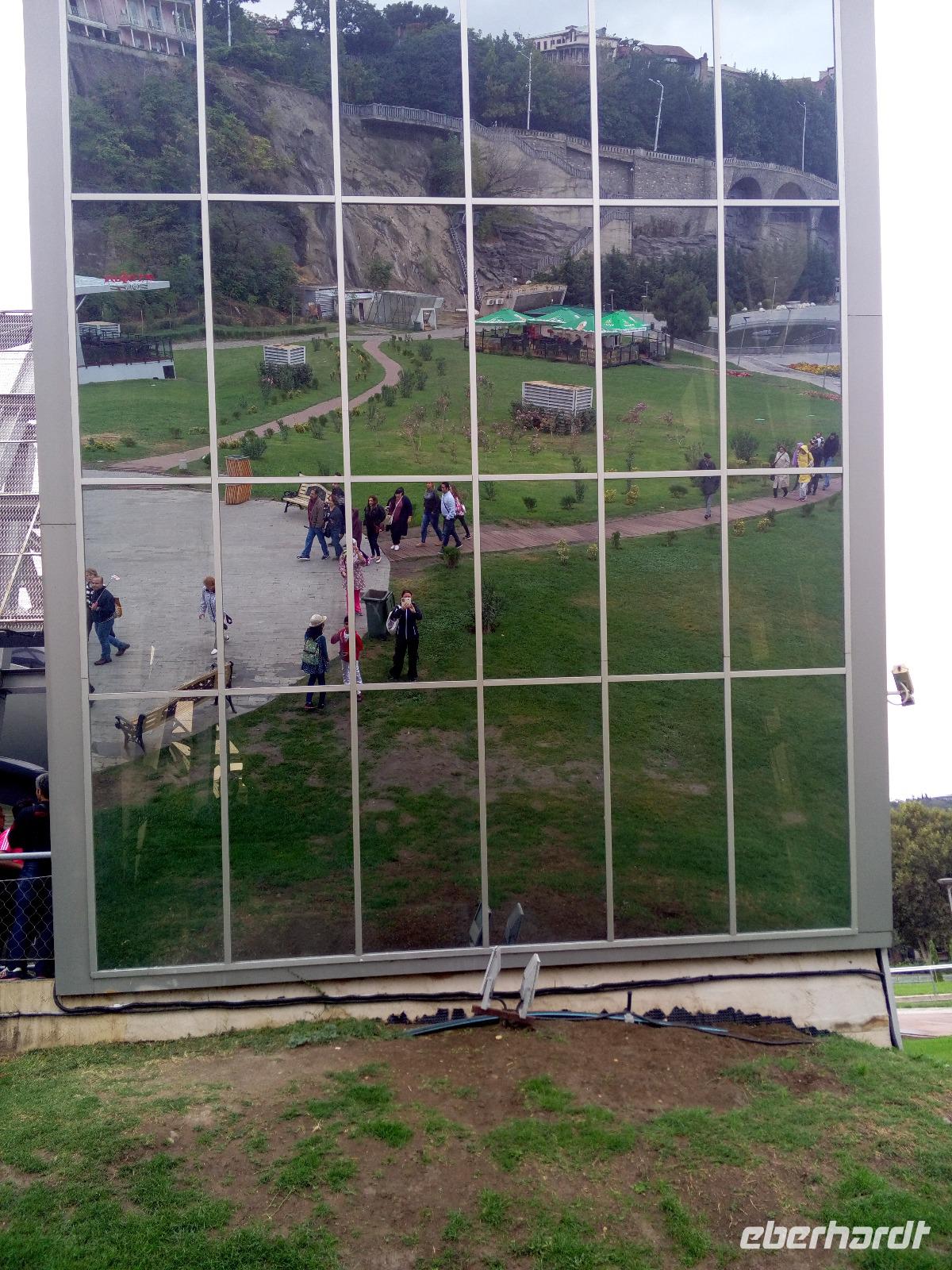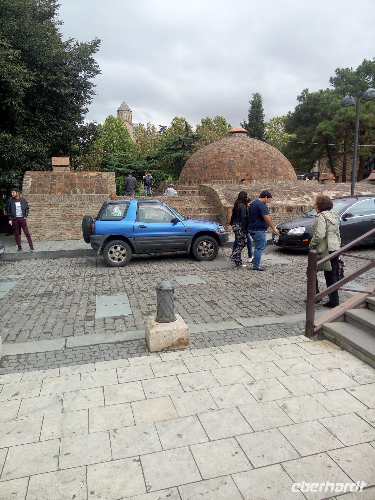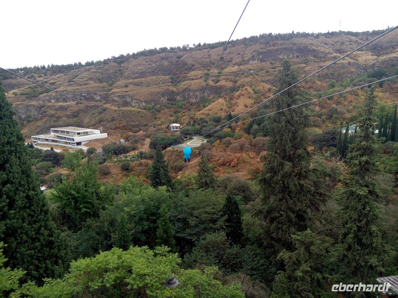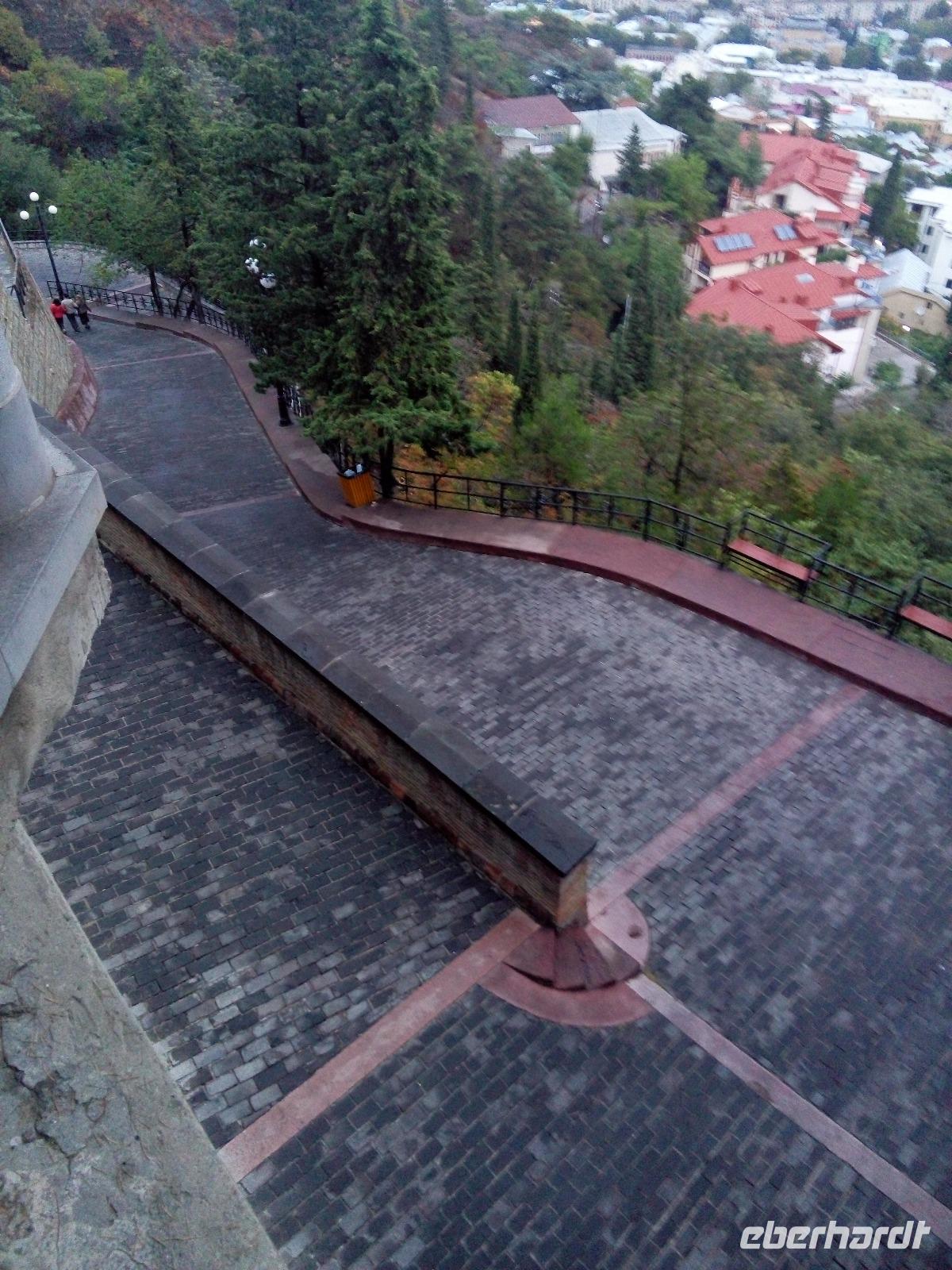 Das war unser vorletzter Tag in Georgien. Gott sei Dank, es hat nicht geregnet und wir konnten problemlos erstmal die Kathedrale besuchen und dann noch den Spaziergang durch die Altstadt unternehmen. Nachdem wir mit der Seilbahn zu der Mutter Georgiens gefahren sind, wurde die Gruppe geteilt. Einige sind in den botanischen Garten "geflogen", die anderen haben den gleichen Weg nach unten unternommen. Das Zusammentreffen sollte in dem so genannten Bäderviertel stattfinden. Das "Fliegen" war Seilrutschen - man ist mit einem Klettergurt gesichert, der an ein Seil gebunden ist. Man setzt sich hin und gleitet runter. Sehr schöne Erfahrung, besonders wenn man bedenkt dass unter dir der botanische Garten von Tbilisi liegt.