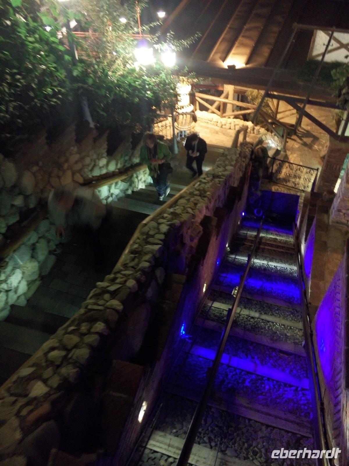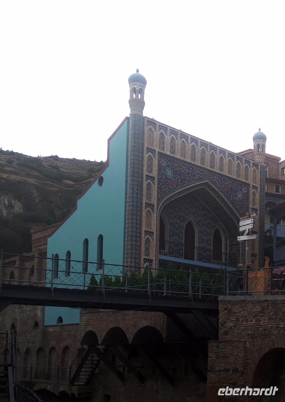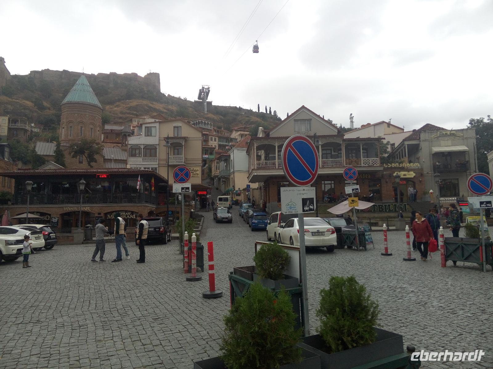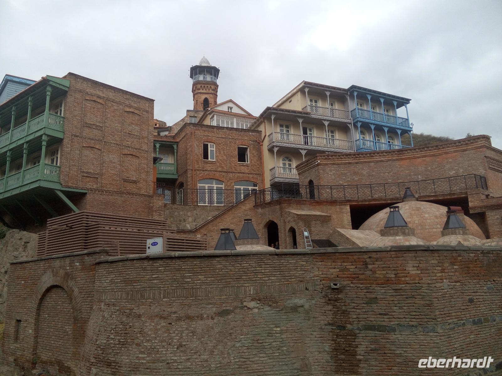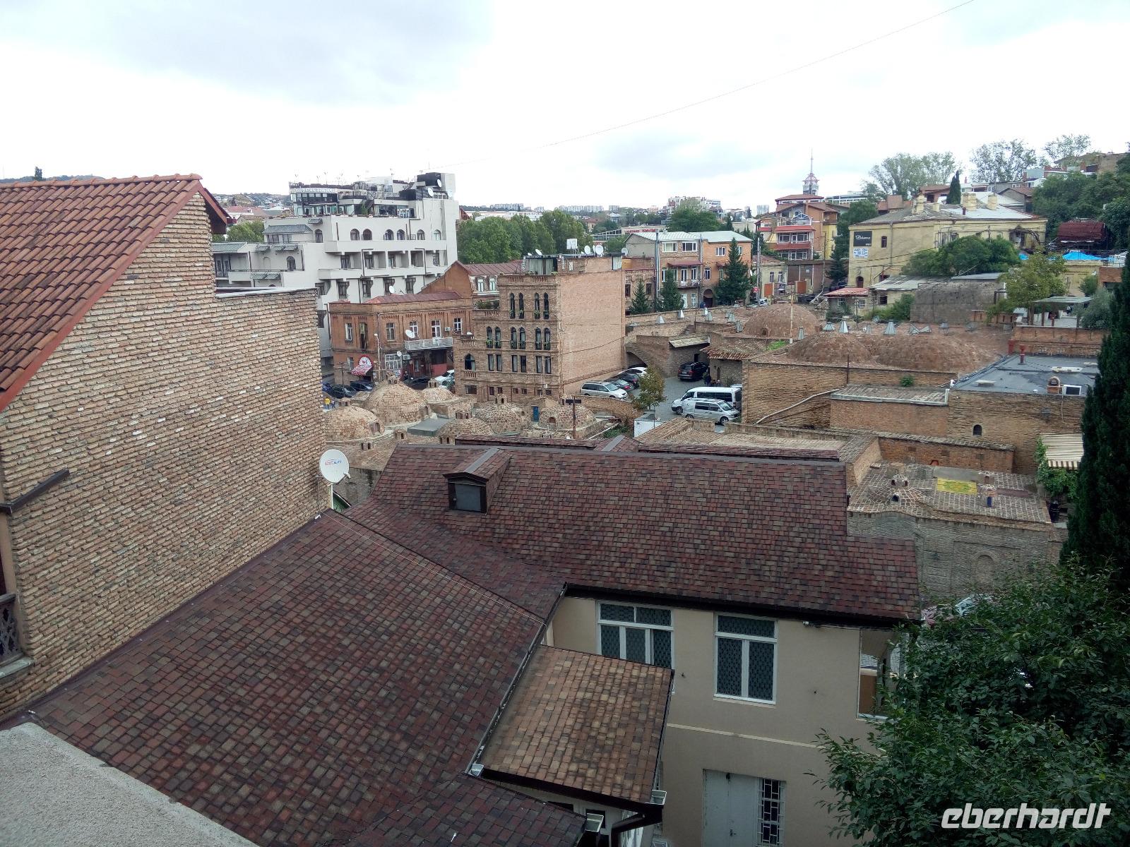 Das war unser vorletzter Tag in Georgien. Gott sei Dank, es hat nicht geregnet und wir konnten problemlos erstmal die Kathedrale besuchen und dann noch den Spaziergang durch die Altstadt unternehmen. Nachdem wir mit der Seilbahn zu der Mutter Georgiens gefahren sind, wurde die Gruppe geteilt. Einige sind in den botanischen Garten "geflogen", die anderen haben den gleichen Weg nach unten unternommen. Das Zusammentreffen sollte in dem so genannten Bäderviertel stattfinden. Das "Fliegen" war Seilrutschen - man ist mit einem Klettergurt gesichert, der an ein Seil gebunden ist. Man setzt sich hin und gleitet runter. Sehr schöne Erfahrung, besonders wenn man bedenkt dass unter dir der botanische Garten von Tbilisi liegt.