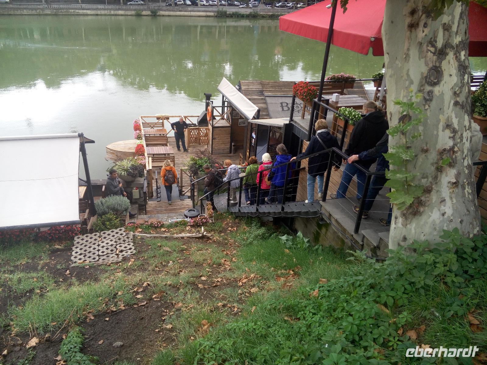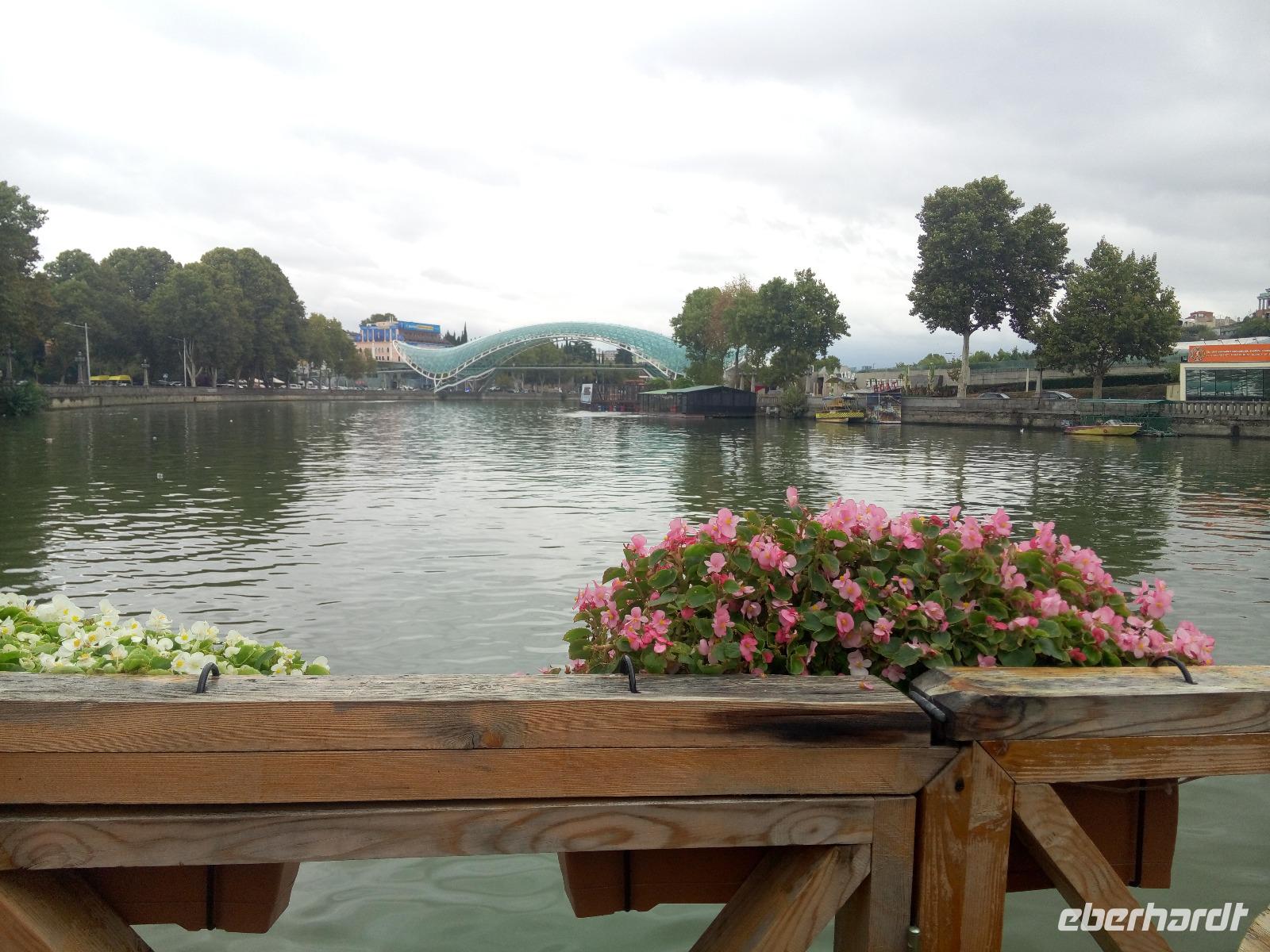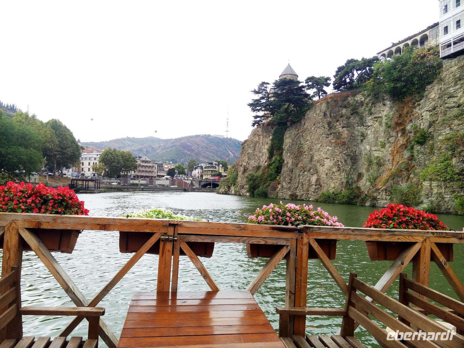 Nach dem sich alle bei dem Bäderviertel wiedergefunden haben, haben wir zusammen unseren Weg zum Fluss Mtkvari fortgesetzt. Da hatten wir unser Mittagessen am Bord des kleinen Schiffes gemacht. Es hat nicht geregnet und wir konnten alle Sehenswürdigkeiten vom Zentrum Tbilisi noch einmal vom Wasser sehen.
