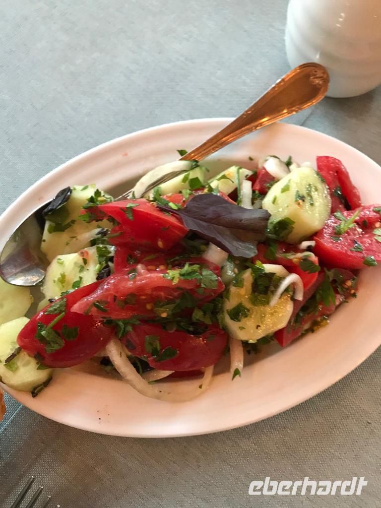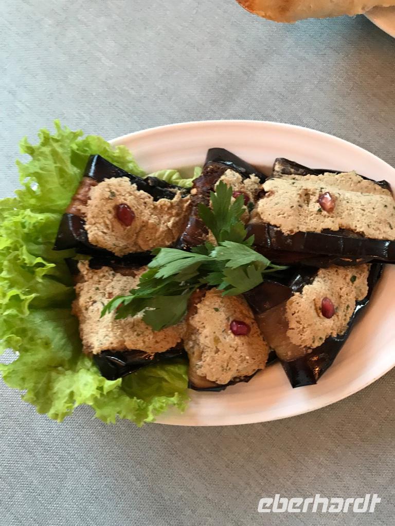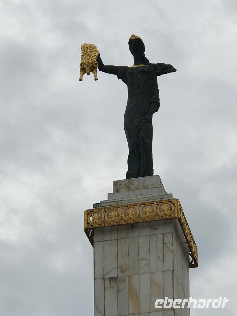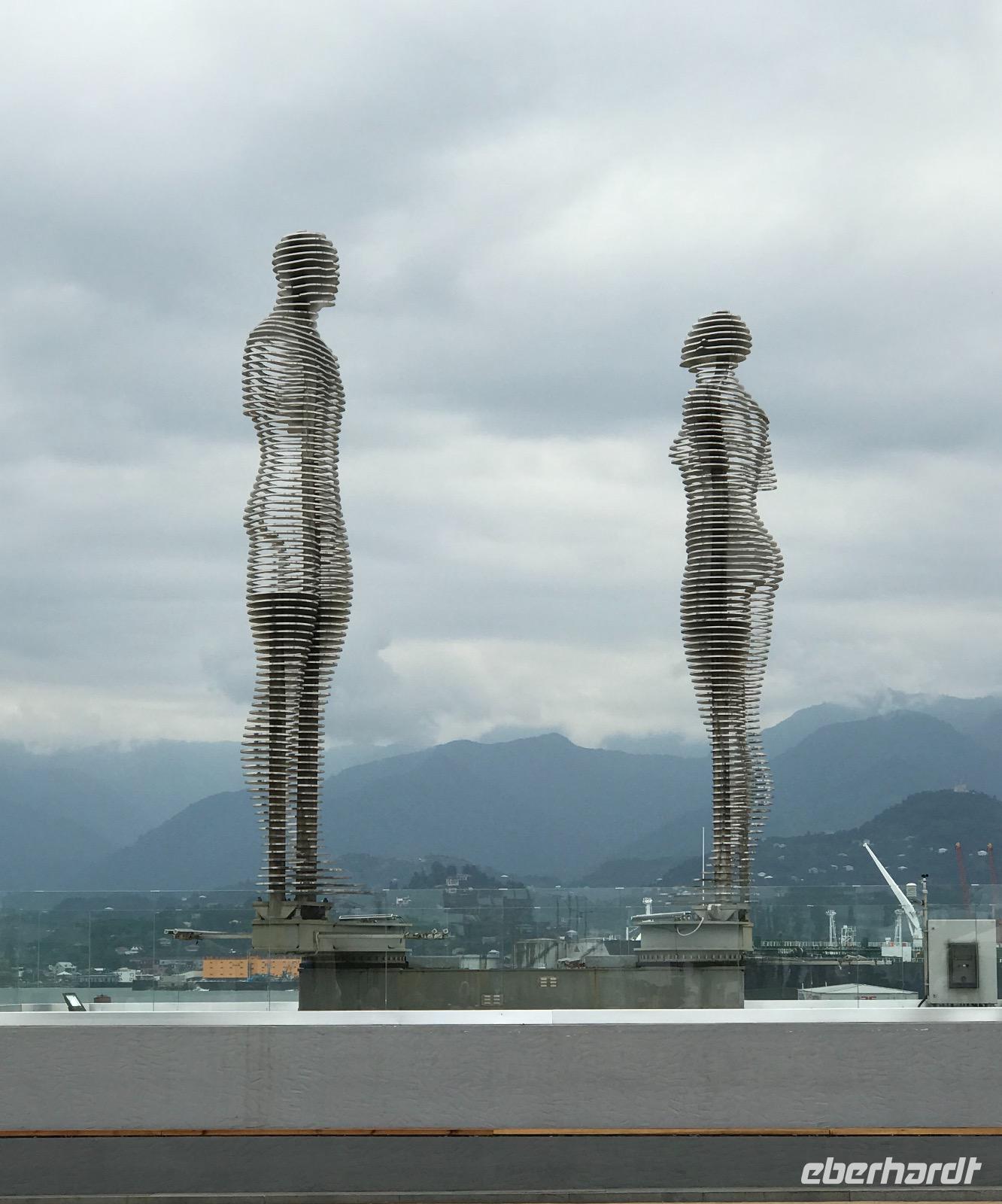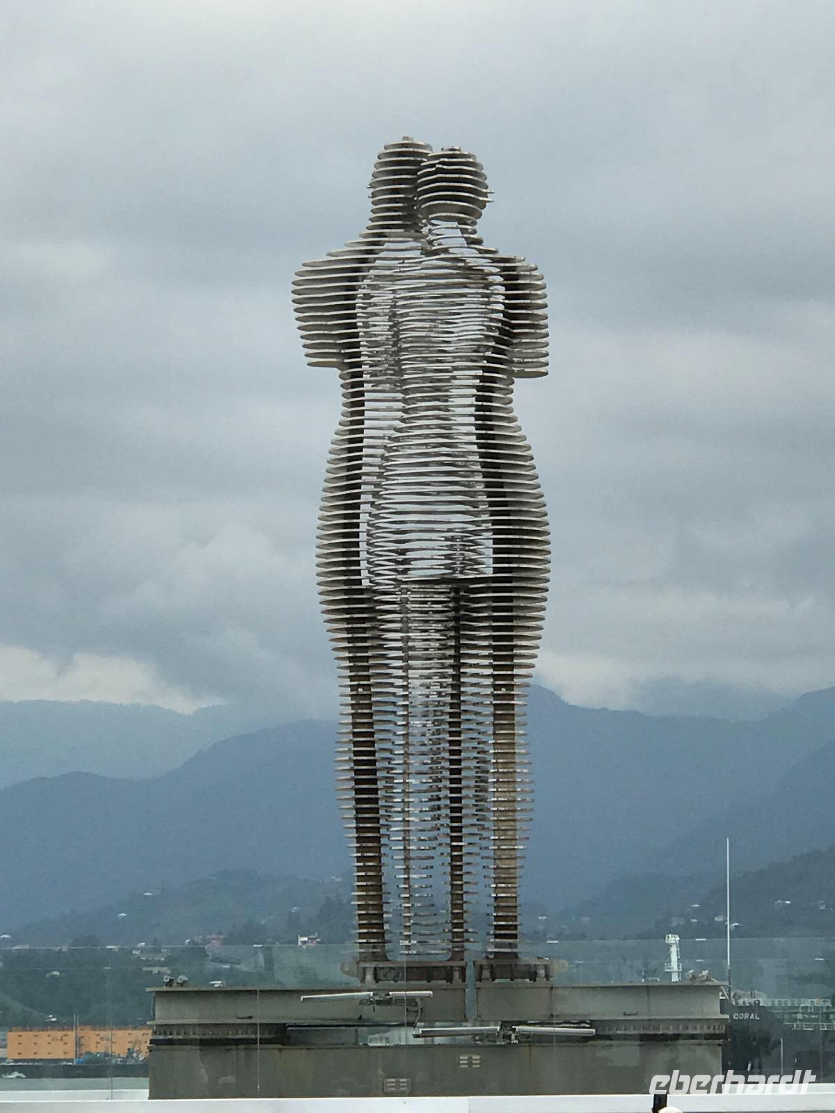 Den Tag gingen wir ruhig an. Nach einem ausgiebigen Frühstück auf der Hotelterrasse mit Blick auf die Strandpromenade hatten wir uns vorgenommen, die Stadt zu erkunden. Unsere örtliche Reiseleiterin Eka holte uns ab. Zunächst ging es in Richtung Alt-Batumi vorbei an der griechisch-orthodoxen Kirche des heiligen Nikolai, dem ältesten Gotteshaus der Stadt. In unmittelbarer Nähe liegt die neu gestaltete Piazza im venezianischen Stil. Hier gibt es eine Menge Cafés und Restaurants und abends Lifemusik. Wir wandten uns in Richtung Hafen. Batumi ist der wichtigste Hafen Georgiens. Wir staunten über die großen Schiffe, Kräne, Tanker, die aus der Ferne zu sehen waren, und über die Männer, die in aller Ruhe dem Angeln nachgingen. Dann führte uns der Weg weiter die Strandpromenade entlang, die in den letzten Jahren komplett umgestaltet worden ist und wo neben dem Alphabet-Turm ein Riesenrad und Hotelkomplexe entstanden sind. Bei der Skulptur Nino und Ali verweilten wir einen Moment, um der Geschichte über die wunderbare Liebe zwischen Nino, der christlich erzogenen Georgierin, und Ali, dem muslimischen Aserbaidschaner, zu lauschen. Und wir erwarteten dem Moment, wenn beide Skulpturen sich in Liebe vereinen. Ist dies nicht wunderbar, und die Geschichte ist doch noch immer aktuell. Der Turm des georgischen Alphabets zog erneut unsere Blicke auf sich. Er ist in der Nacht wie auch am Tage sehenswert. Das sich noch immer im Bau befindliche und schon lange nicht genutzte Gebäude der Technischen Universität zeigte uns seine besondere Attraktion - die goldenen Gondeln leuchteten schon von weitem in der Sonne. Es war Zeit eine Mittagspause einzulegen. Wir wollten in der Nähe des Strandes sein und fanden ein Café mit direkten Zugang zum Meer. Da saßen wir eine Weile bei gutem Bier, hausgemachter Limonade und Espresso, um das Wasser in seiner gewaltigen Schönheit und Kraft zu bewundern. Weiter ging es anschließend noch ein Stück die Strandpromenade entlang stets auf der Hut, Fahrrädern, Motorrädern oder anderen neumodischen Fahrzeugen nicht im Wege zu sein. Schließlich endete unser Spaziergang am Europaplatz bei der Skulptur von Medea. Und noch einmal bezaubert uns Eka mit der Legende um Medea, das Goldene Vlies und die Argonauten. Der Nachmittag dann war frei zur Entfaltung persönlicher Wünsche. Die einen fuhren mit der Seilbahn hinauf auf einen Hügel, um einen traumhaften Blick auf die Stadt Batumi werfen zu können. Die anderen wollten im warmen Meer baden. Dieses Unterfangen war nicht so einfach, da der Strand aus runden Steinen besteht und das Ufer leicht abfallend ist. Mit Badeschuhe ging es dann schon, hinein ins Wasser zu kommen, schwieriger war es, wieder herauszukommen, denn die Wellen halten irgendwie den Fuß fest. Den Abend verbrachten wir mit wunderbarer Aussicht auf die Bucht von Batumi und das Meer im Restaurant Goldener Fisch. Und wieder beeindruckte die georgische Küche. Die Khachapuri (Teigtaschen mit Käsefüllung) in diesem Restaurant waren die besten.