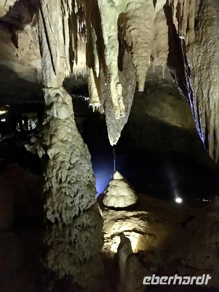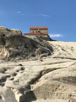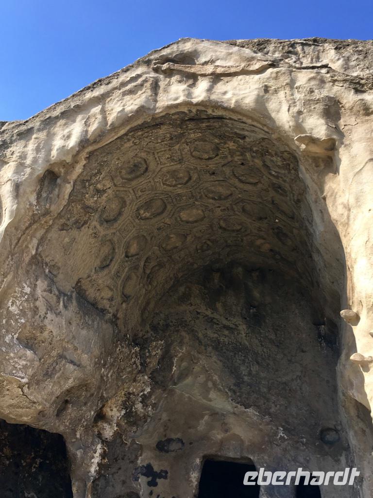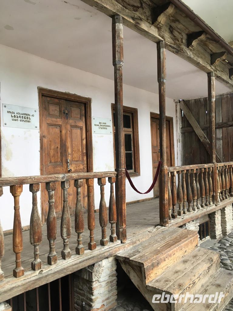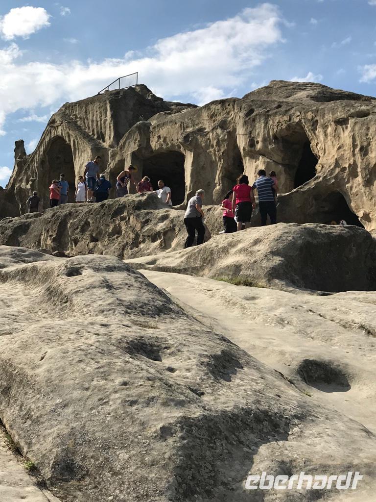Bevor wir weiterfuhren besuchten wir die Bagrati-Kathedrale „Maria Entschlafen", die eindrucksvollste Sehenswürdigkeit von Kutaisi. Von der Anhöhe hat man einen wunderbaren Blick auf die Stadt. Es war noch früh am Tage, die Sonne schickte ihre ersten Strahlen und wir warteten vor verschlossener Tür. Der Priester verspätete sich. So hatten wir einen schönen Rundgang um die Kathedrale und bewunderten den Bau, der einst zum UNESCO-Kulturerbe gehörte, aber nun wohl in Ungnade gefallen war wegen einiger moderner Veränderungen der Architektur. Einige unserer Gäste hatten eifrig den Reiseführer studiert und entdeckt, dass ganz in der Nähe die Prometheus-Höhle lag. Sie war nun unser nächstes Ziel. Und wir sollten es nicht bereuen. Wir besichtigten einen sehr umfangreichen Höhlenkomplex, der kompetent baulich hergerichtet war, um Gäste empfangen zu können, und erfreuten uns an den so vielfältigen Figuren aus Stalaktiten und Stalakmiten, die unseren Weg säumten. Nach etwa einer Stunde Führung fuhren wir weiter nach Uplistsikhe, der antiken Höhlenstadt, deren Alter auf etwa 3.000 Jahre geschätzt wird. Klettern ist angesagt, um die noch sichtbaren Sandsteinhöhlen und Gebäude auf einem riesigen Sandsteinplateau besichtigen zu können. Der Wind weht ziemlich stark und die Sonne strahlt erbarmungslos. Die auf dem Plateau verbliebenen Bauten datieren aus dem 2./3. Jahrhundert nach Christus. Wir sahen uns kurzzeitig in diese Zeit des Handels an der Seidenstraße versetzt und sinnierten ein wenig über die Menschen, die damals diese Region bewohnt haben. An diesem Tag hatten wir einen straffen Zeitplan. Als nächstes stand das Stalin-Museum in Gori auf dem Plan. Wir besichtigten lediglich Stalins Geburtshaus von außen und den gepanzerten Eisenbahnwaggon mit dem Stalin reiste, um in Jalta und Potsdam mit über das Schicksal Deutschlands und Europa zu verhandeln. Der Tag endete in Tbilissi. Das Abendessen hatten wir im Restaurant Tsiskvilli. Wieder eine wunderbare georgische Tafel, eine feurige Folkloreshow vom Feinsten, georgische Musik, schwerer Rotwein und leichter sommerlicher Weißwein. Das Leben kann so wunderschöne Augenblicke bescheren. Nach einem erlebnisreichen Tag fanden wir dann unsere Übernachtung im Hotel Ibis am Platz der Freiheit, mitten im pulsierenden Leben der Großstadt.