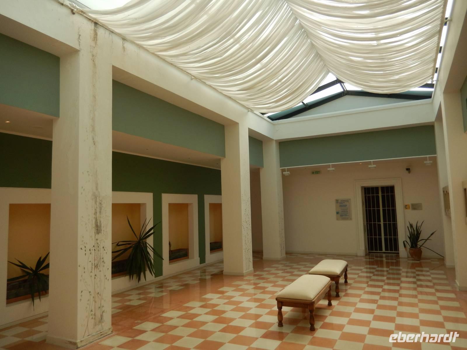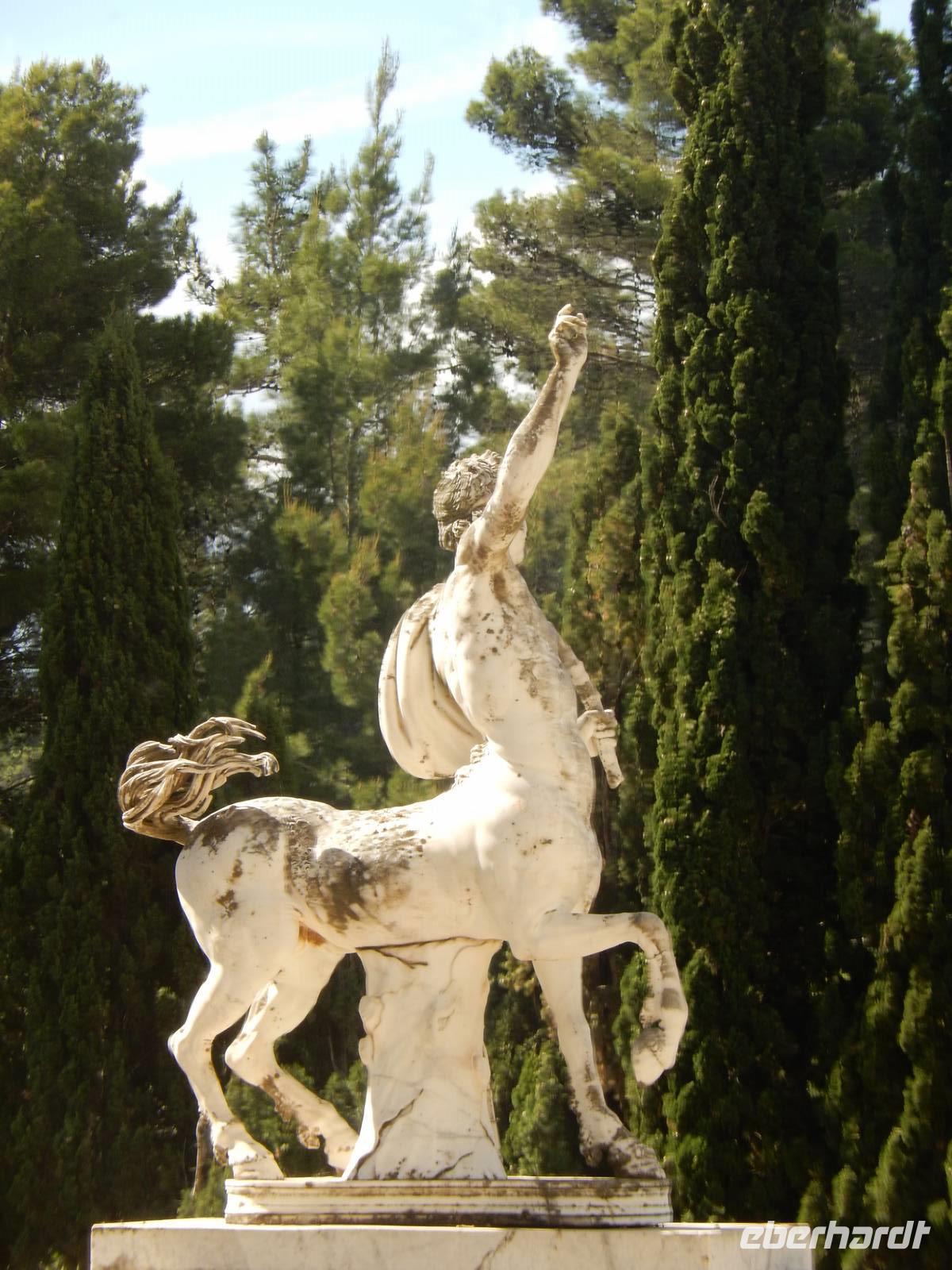 Im Achillion angekommen gingen wir zuerst in den Garten des Achillion. Dort nutzen wir den Ausblick und erfreuen uns an der tollen Atmosphäre. Anschließend besuchten wir die Ausstellung im Palast und hatten noch individuelle Zeit zum erkunden des Palastes.