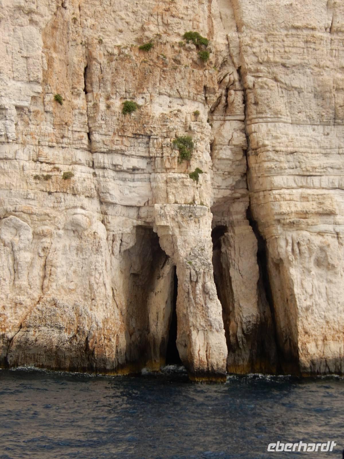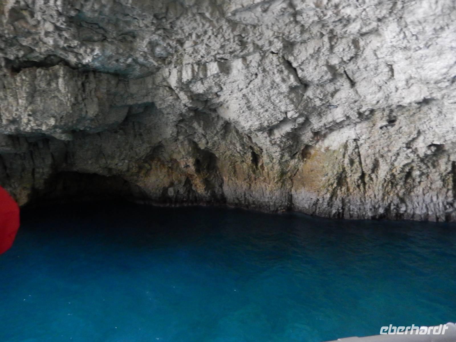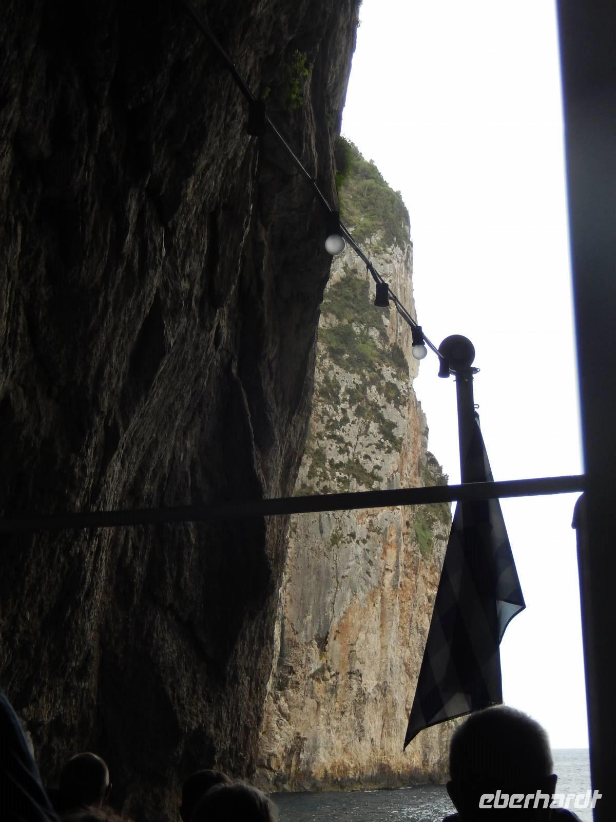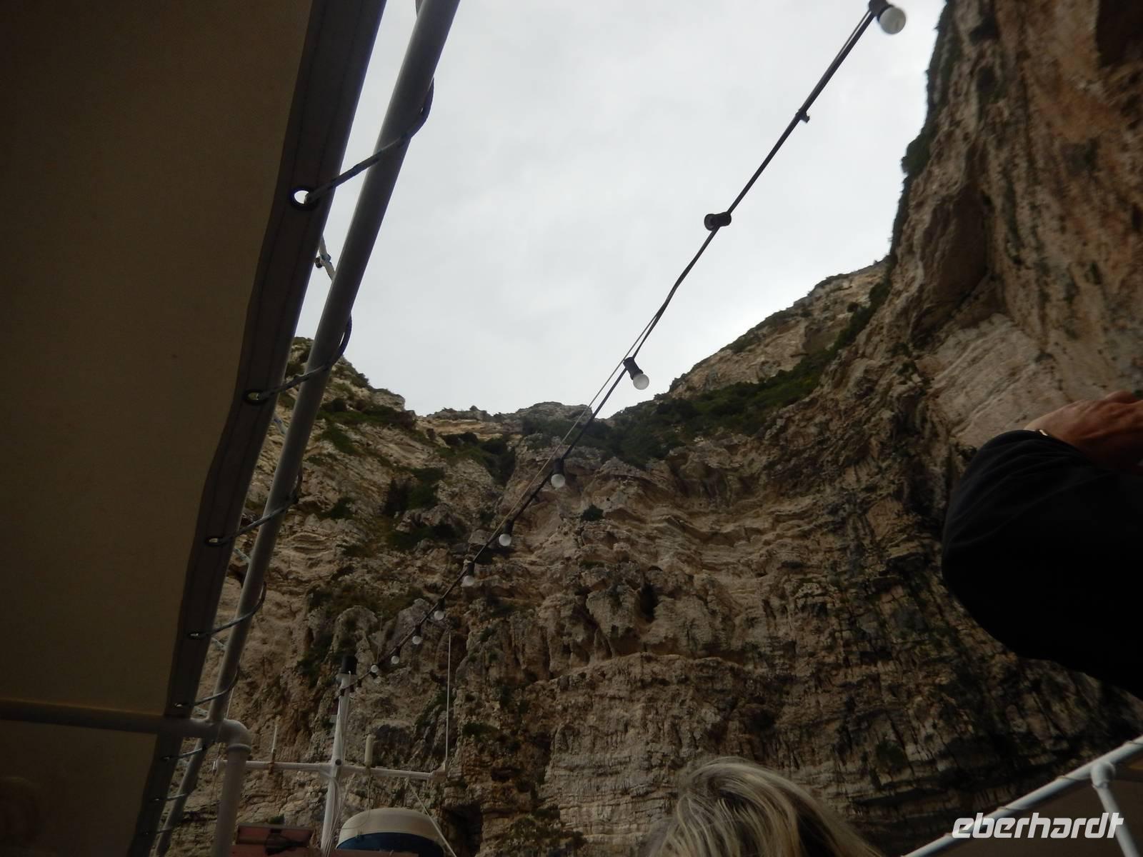 Unser erster Stopp waren nun die Grotten von Paxos. Wir waren beeindruckt von den meterhohen Felswänden und Gebilden, die von der Natur geformt wurden - und noch mehr über die Kunst des Kapitäns das Boot dort hinein und auch wieder heil herauszuführen - trotz des windigen Wetters! Weiter ging die Fahrt zur Insel Antipaxos. Antipaxos ist eine kleine Insel von vier Kilometern Länge und nur zwei Kilometern Breite. Eine kleine Bucht lud zum Badestopp. Uns war es zu kalt, aber wie staunten wir über andere Gäste, die mutig in das kühle Nass sprangen.