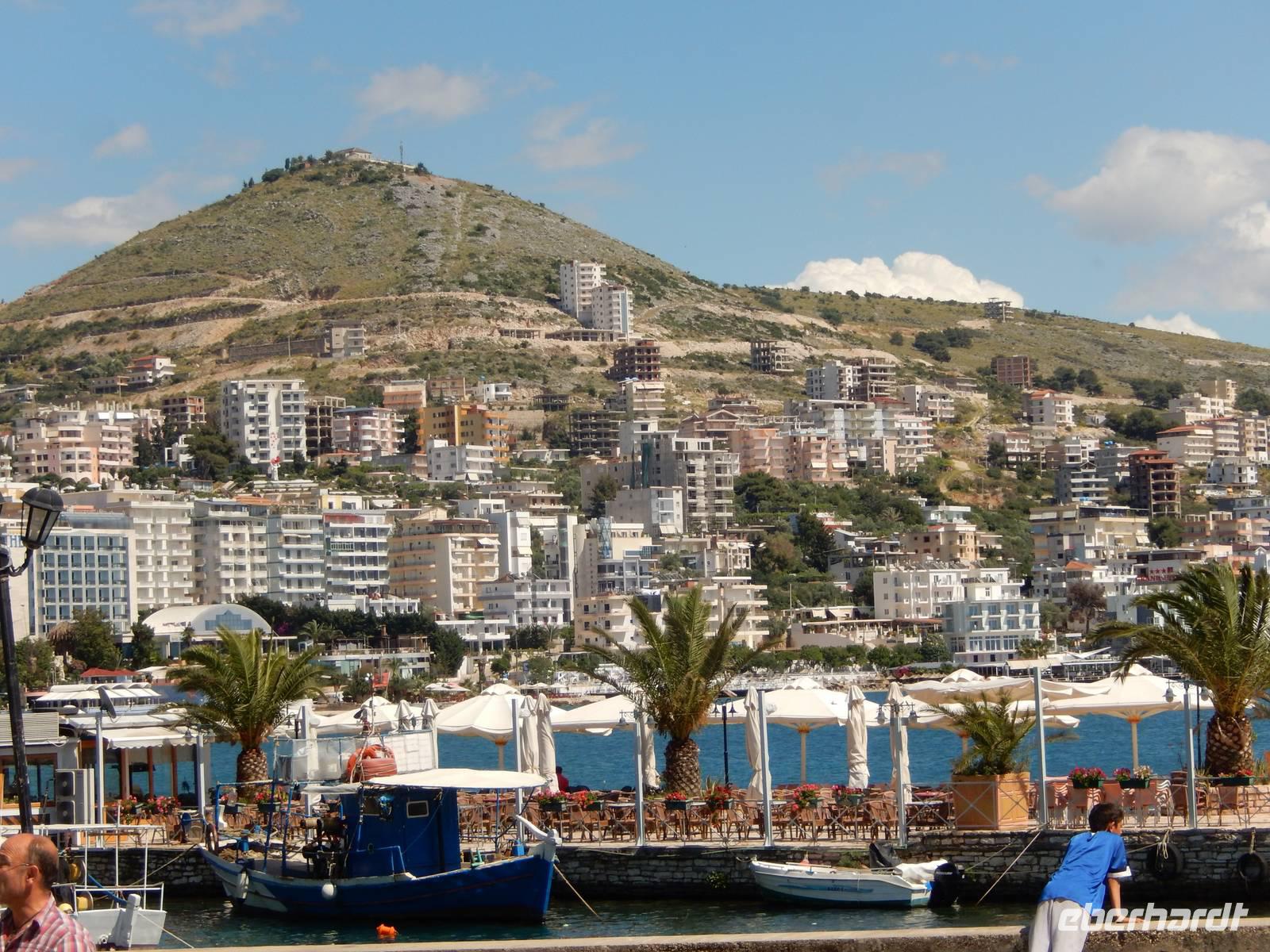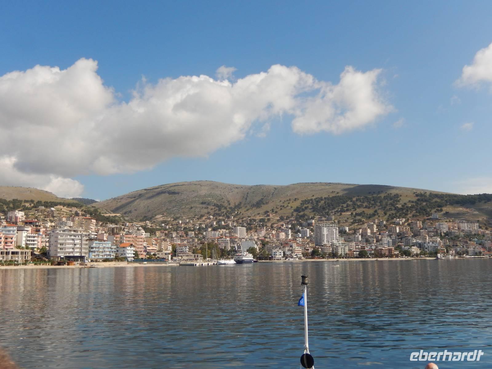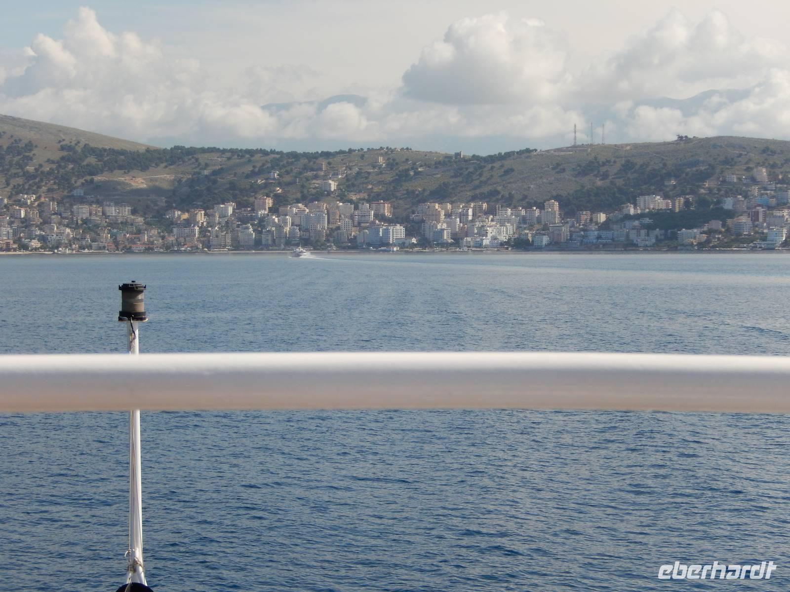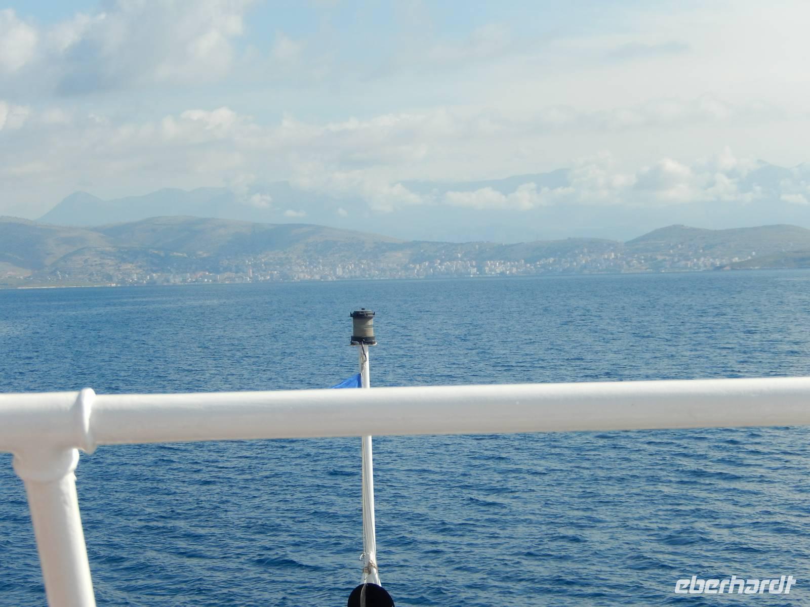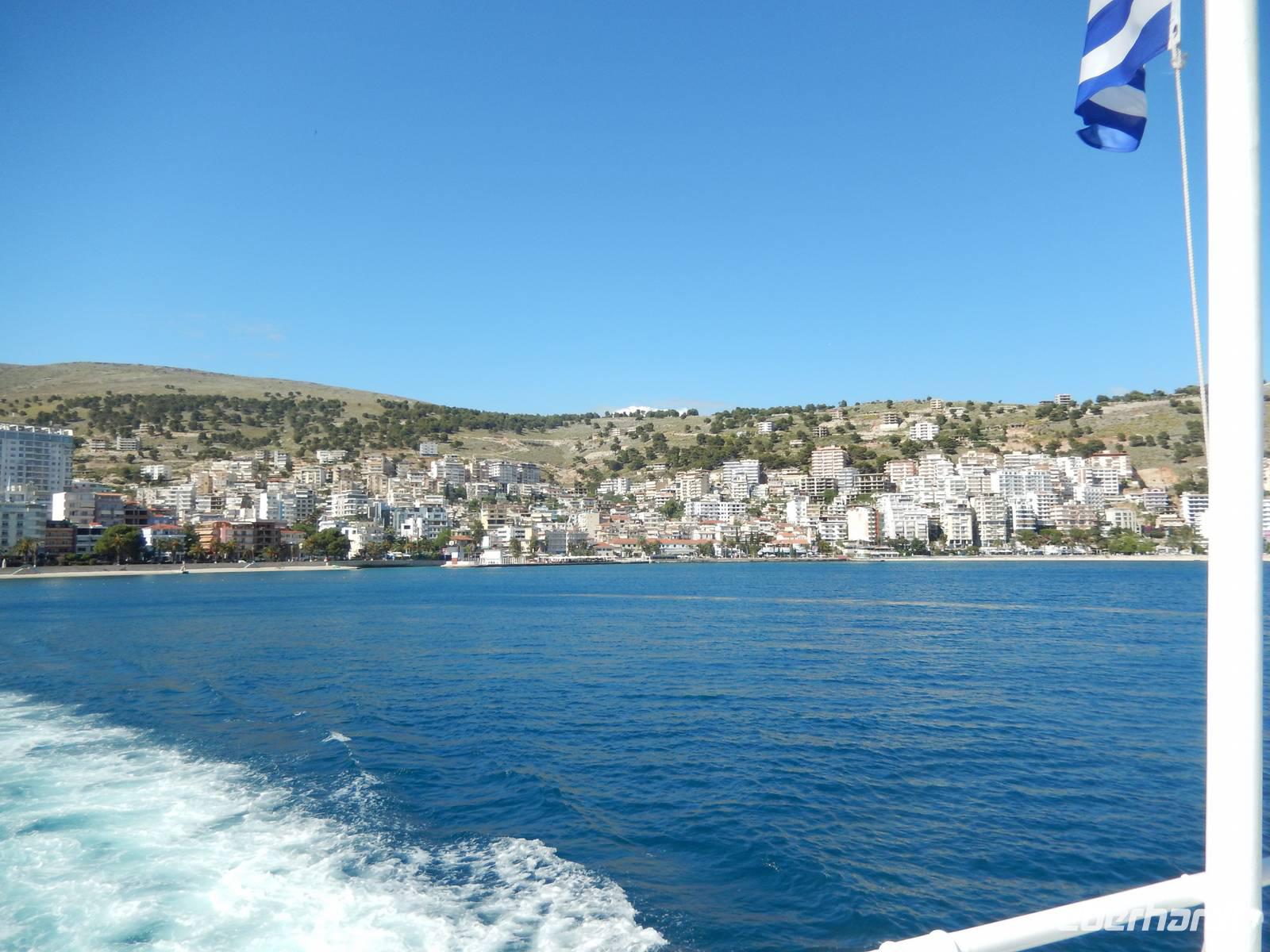 Heute hieß es für 12 Reisegäste zeitig Aufstehen. Nach einem leckeren Frühstück fuhren wir gemeinsam zum Hafen. Dort wartete schon Spiridon auf uns von der „Ionian Sun". Wir freuten uns sehr, da wir ihn schon von unserer Mini-Kreuzfahrt kannten. Nach den Zollformalitäten gingen wir an Bord und starteten in Richtung Albanien. Nach einer Stunde Überfahrt, bei schönstem Sonnenschein, kamen wir im Hafen von Ag. Saranda an.