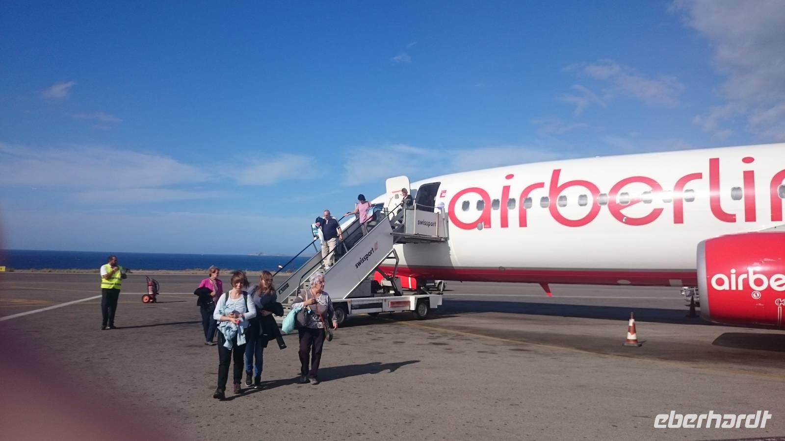 Das Dilemma um den Hauptstadtflughafen ist bekannt. Zum Glück konnten die Reisebegleiter der Wander- und der Rundreisegruppe, Marcus und Stefan, ein wenig Ordnung in alles bringen und so bekamen wir bald unsere Bordkarten und absolvierten den Sicherheitscheck, ehe es bei noch 8 Grad in Berlin an Bord der Boeing 737-800 der Air Berlin ging, die pünktlich abhob.