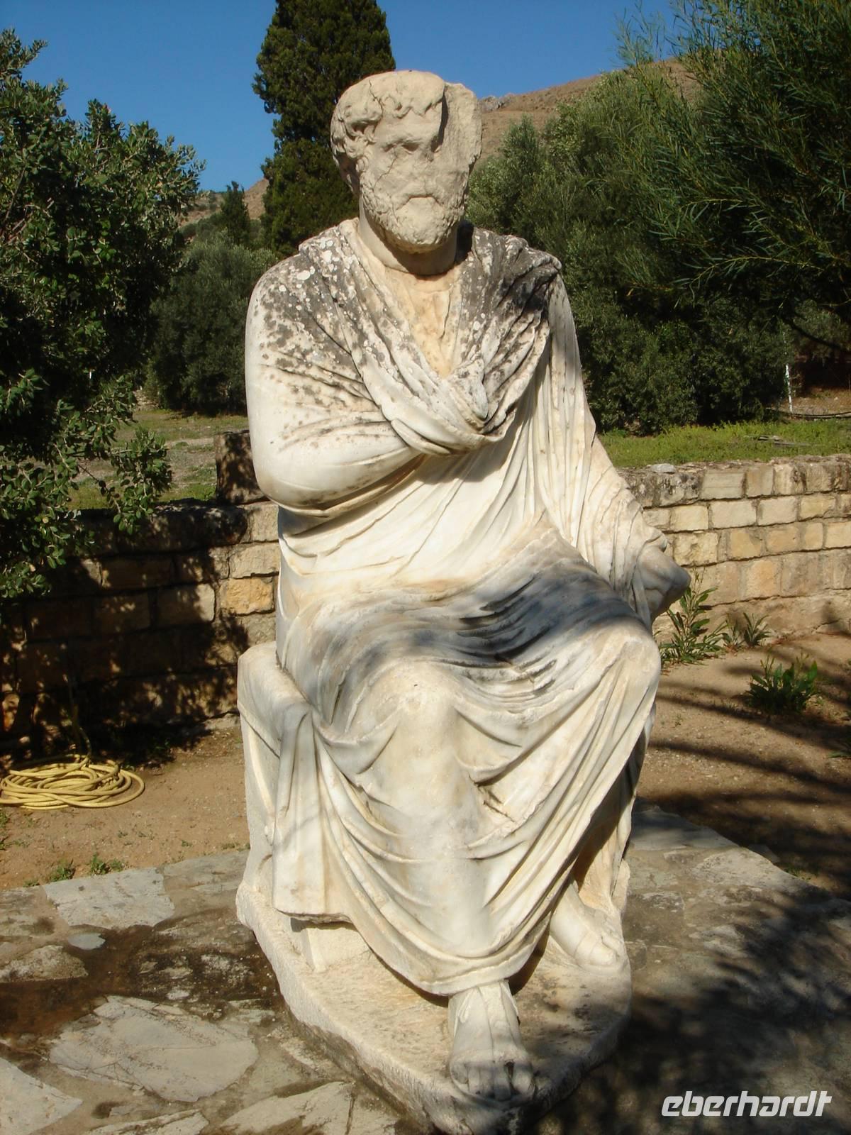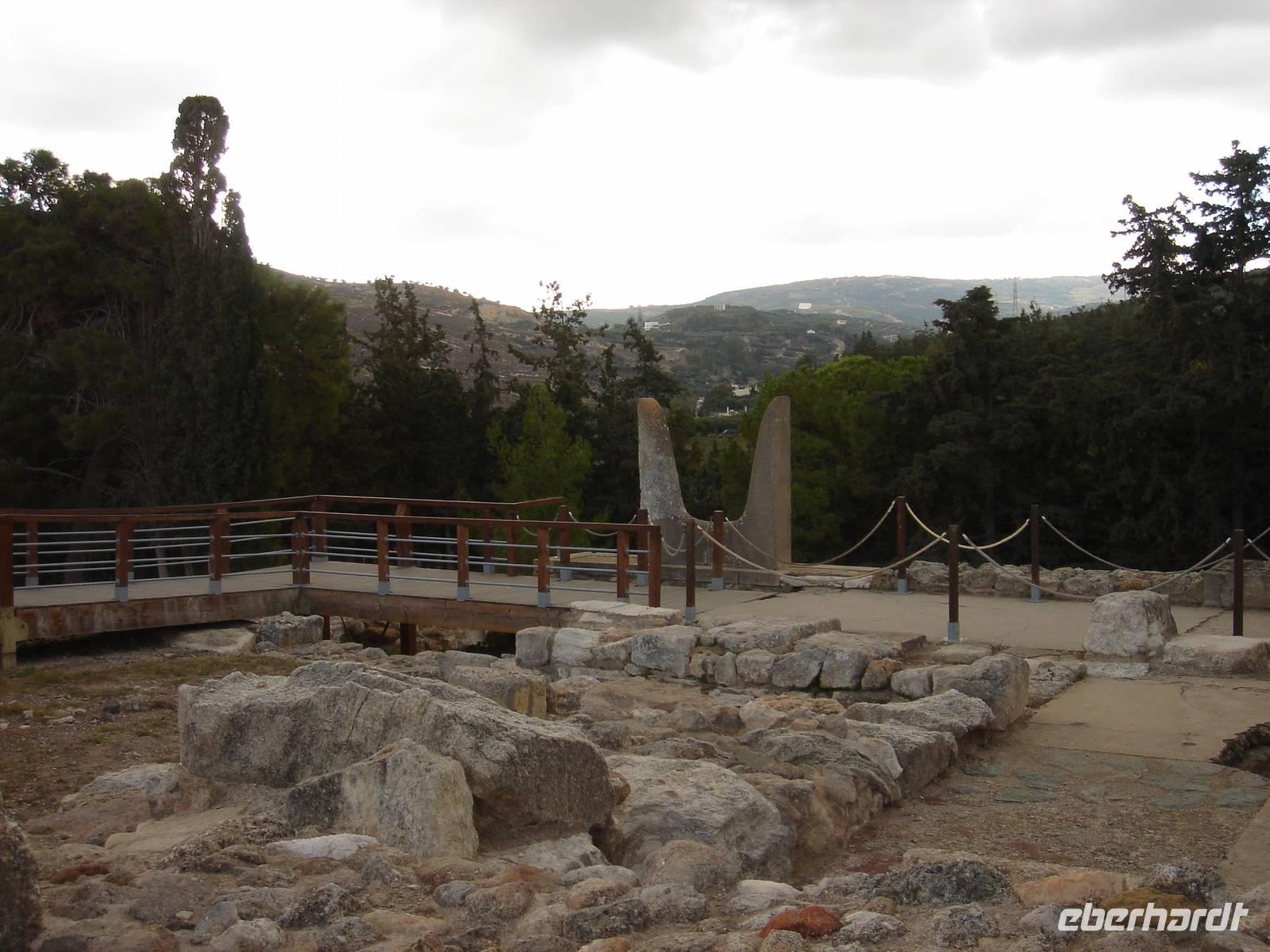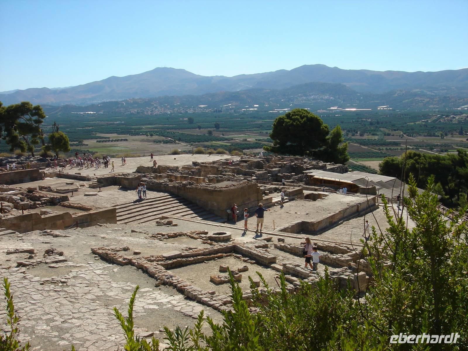 Heute zog die Wandergruppe weiter gen Westen nach Chania und vor uns lag wieder ein schöner und ereignisreicher Tag. Den breitesten Teil der Insel Kreta wollten wir besichtigen und begannen mit der Besichtigung von Gortys, wo wir unter alten Olivenbäumen wandelten und die wohl ältesten Gesetzestexte in Stein gemeißelt sehen konnten, ehe es weiter in den zweitwichtigsten Palast der Insel ging, nach Festos. Hier fand man einst den Disc of Phaistos, dessen Inschriften bis heute noch nicht entziffert werden konnten. Einige von uns nutzten die Zeit in Heraklion zum Museumsbesuch und sahen das Original dort stehen. Nun waren wir jedoch an jenem Ort, wo man ihn fand und erkannten durch Renas gute Führung deutlich, wie sich der einstige Palast gliederte. Diesen betreuten die Italiener archäologisch und darum gab es hier keine Rekonstruktionen wie in Knossos, aber trotzdem wirkte alles sehr anschaulich.