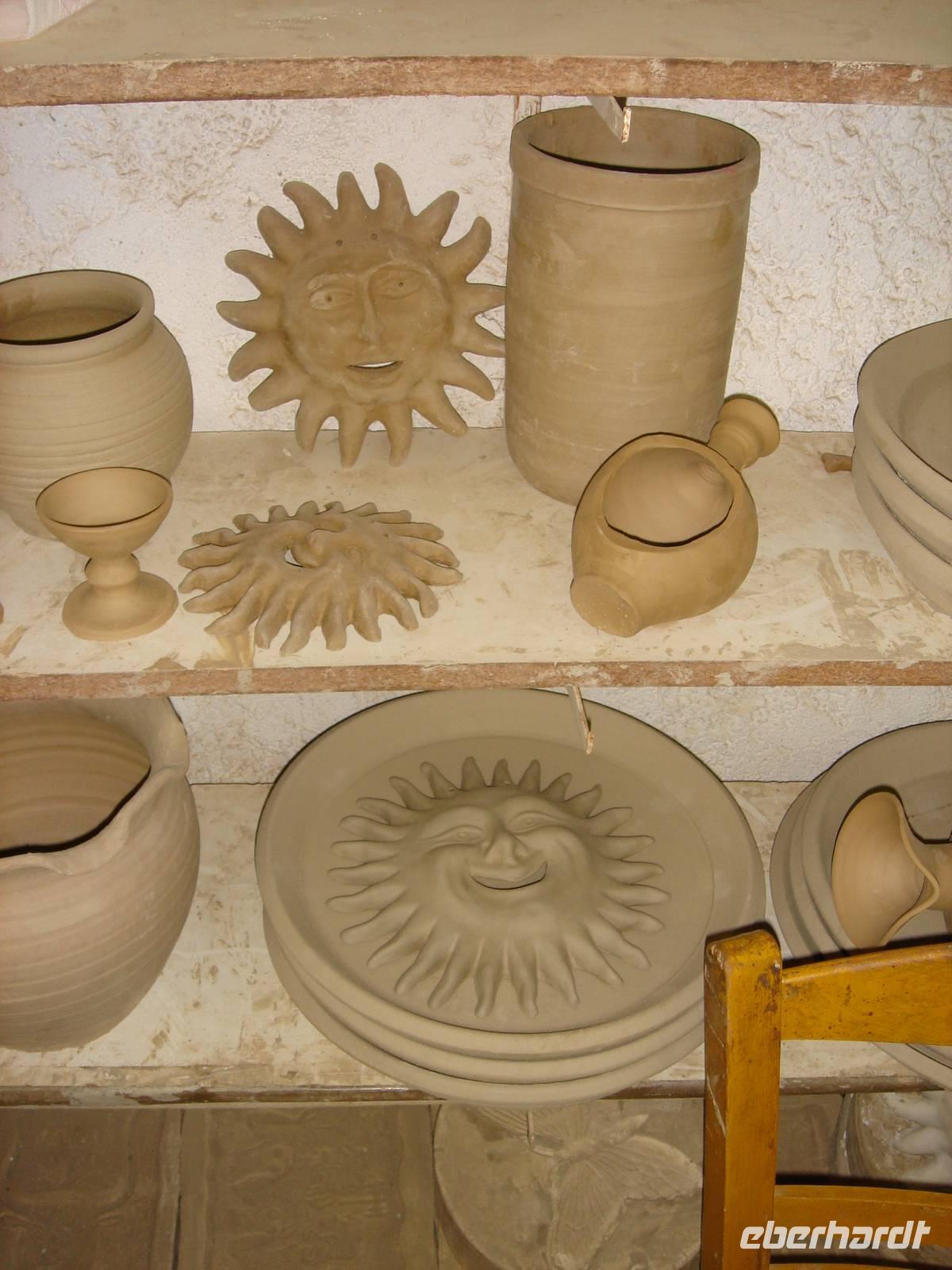 Da man Kreta nicht nur mit alten Steinen in Verbindung bringen darf, versuchten wir auf dem Weingut Minos anschließend drei verschiedene kretische Weine, ehe wir bei Janis sahen, wie früher und heute die typisch griechisch-kretischen Töpfereiwaren entstehen.