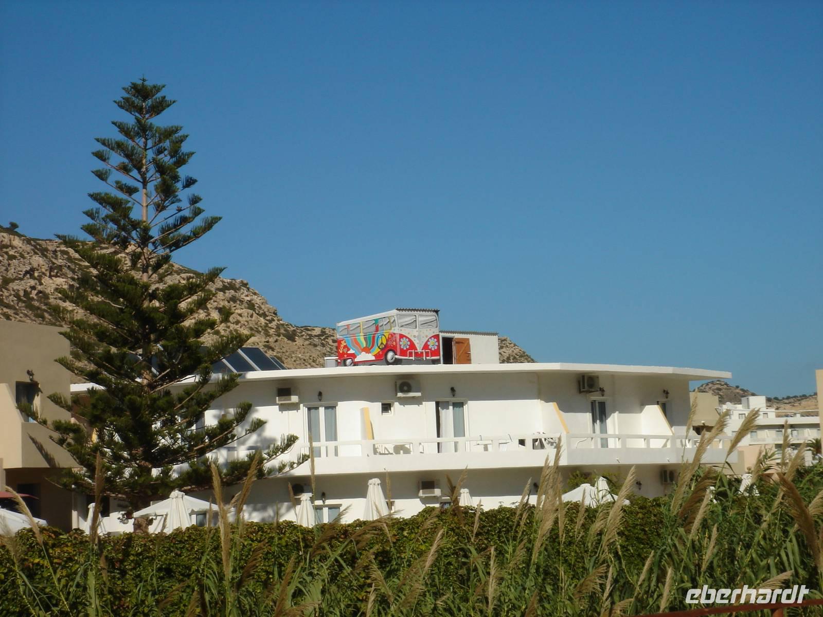 Noch ein ganzer Vormittag im Hotel oder im Ort blieb uns heute. Wir nutzten die Zeit und vor allem das schöne Wetter, sättigten uns dann noch einmal in der Poolbar, denn im Flugzeug gibt es ja heute nicht mehr soviel zu essen. Dann kamen ein letztes Mal Rena und Georgius und wir verluden unsere Koffer gemeinsam mit der Hotelbesatzung, schauten mit einem lachenden und einem weinenden Auge zurück zum Hotel und fuhren zum Flughafen Heraklion, wo wir dann bald mit Check-in und Sicherheitskontrolle zu tun hatten, nachdem wir uns von unseren zu Freunden gewordenen Begleitern verabschiedeten.