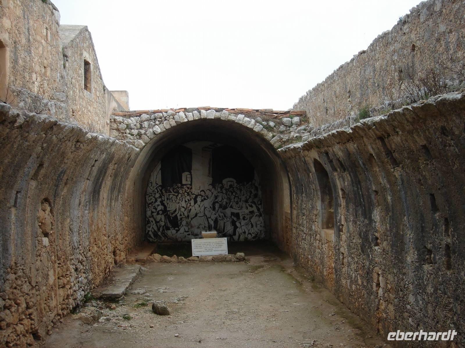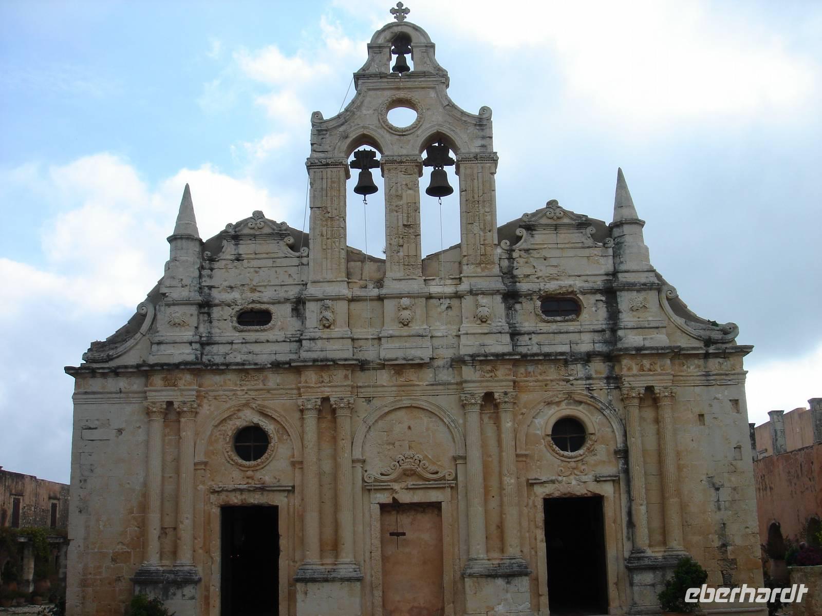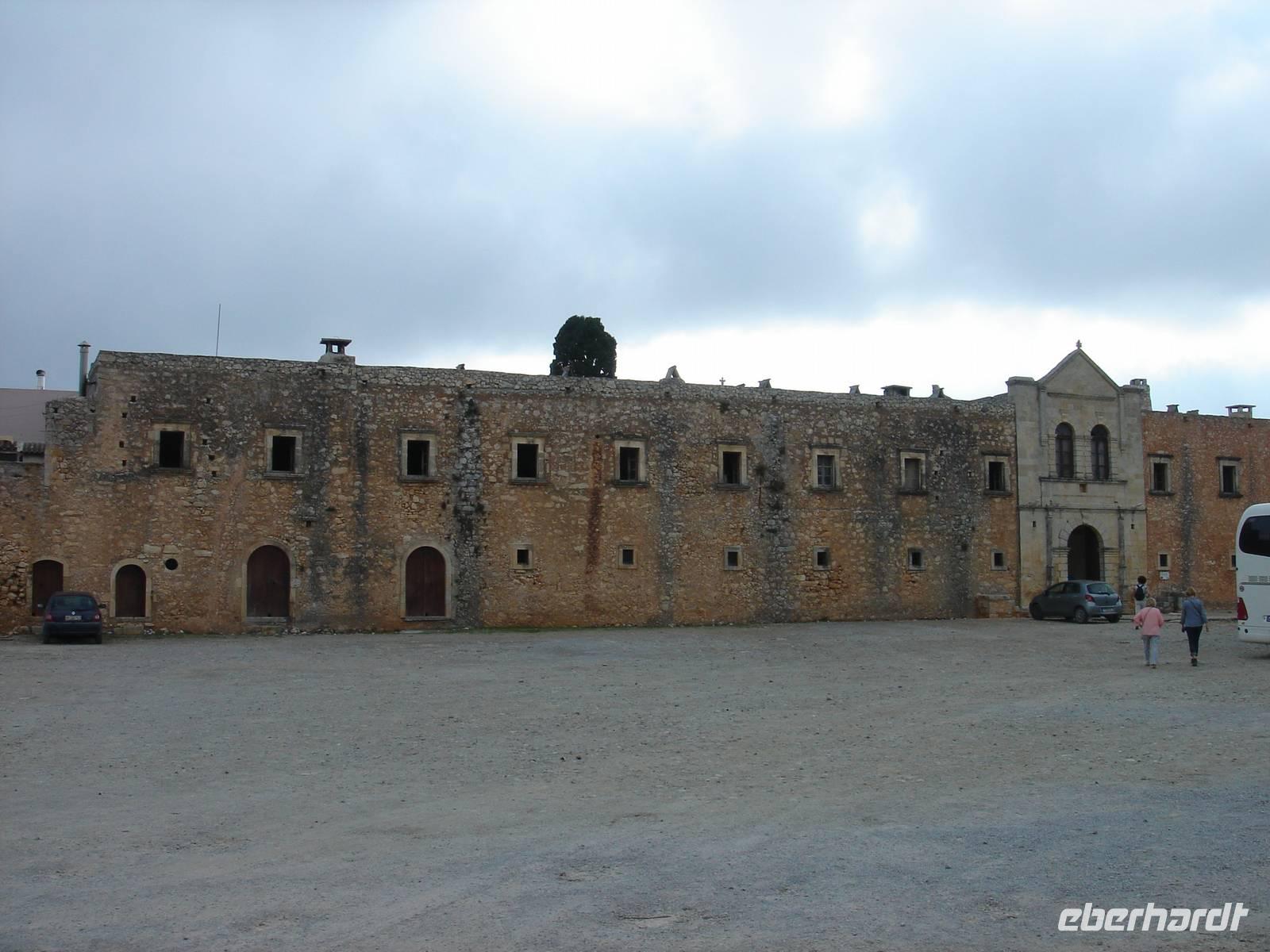 Kennen wir die alten Western aus Kino und Fernsehen, dann sahen wir sicher schon einmal den Alamo. Etwas Ähnliches von der Fassade her erwartete uns heute, denn wir fuhren am Morgen zum heiligen Kloster Arkadi, welches von Mönchen und Freiheitskämpfer bis zum letzten Atemzug gegen die Türken verteidigt wurde und das später wieder neu entstand, einfach ein MUSS ist auf einer Tour über Kreta.