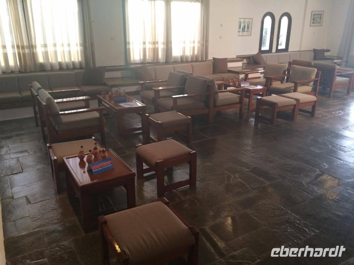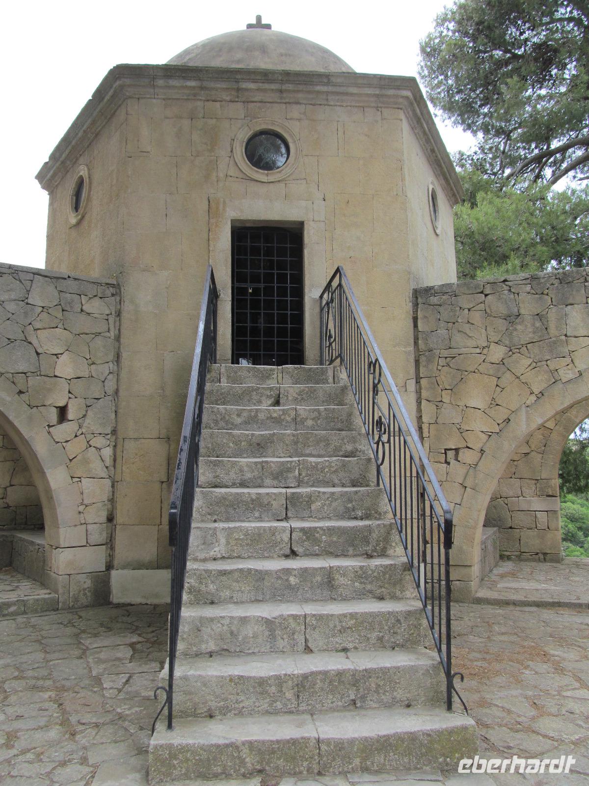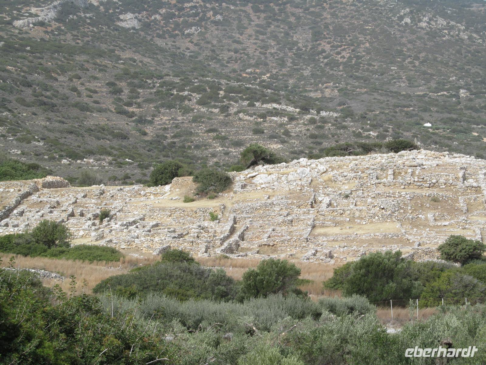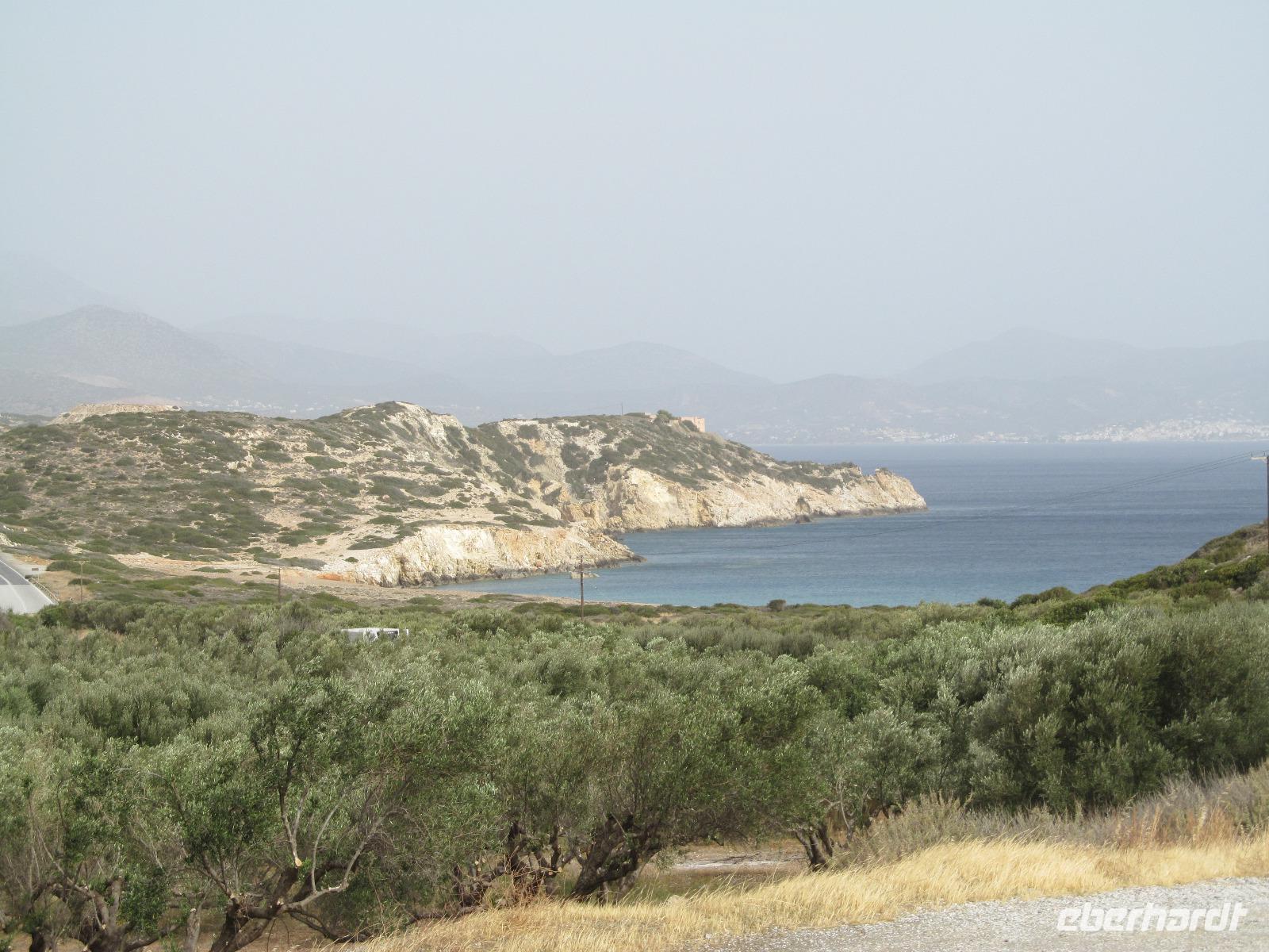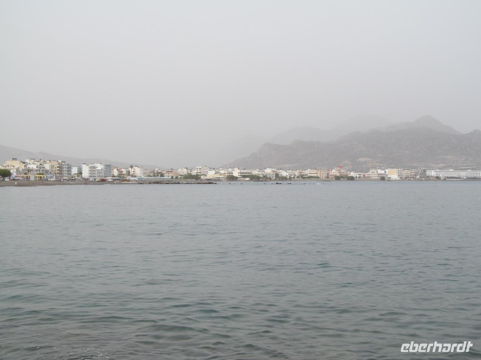 Wie jeden Morgen begrüßte uns Rena mit einem freundlichen „Kalimera", was auf Deutsch „Guten Morgen!" heißt. Wir starteten unseren langen Reisetag in den Osten mit der Fahrt entlang der Küste und legten einen kurzen Fotostopp an der Ruinenstadt Gournia ein, welche man schon von der Straße aus sehr genau erkennen konnte. Danach besichtigten wir, dass Mönchsklöster in Toplou, welches östlich von Sitia liegt. Das Kloster ist von außen sehr schmucklos und einfach, aber es besticht durch seine Geschichte. 1646 und 1821 wurde das Kloster von den Türken angegriffen und ausgeraubt. Im Zweiten Weltkrieg wurde Abt Silingakis von dem deutschen Trupp hingerichtet, da er kretische Widerstandskämpfer aufgenommen hat und ihnen erlaubte im Kloster eine Funkstation zu betreiben. Der mit kleinen Kieselsteinen bepflasterte Innenhof und dreistöckigen Arkaden hat ein romantisches Flair. Im Anschluss fuhren wir noch eine ganze Strecke bis an den östlichen Punkt unserer Rundreise, an den einzigen Palmenwald in Europa- nach Vai. Dort genossen wir ein leckeres Mittagessen und den herrlich Nachmittag am Strand. Auf dem Heimweg hielten wir noch an einem Bananenstand, da uns Rena schon auf dem Hinweg erzählte, dass sie da unbedingt Bananen für Ihre Familie holen müsse, da es die aromatischsten sein. Also ließen wir uns das nicht zweimal sagen und überzeugten uns selbst von dem Geschmack der kleinen gelben Früchte. Um noch mehr von dem Osten kennen zu lernen, führte uns Rena noch zu unserer letzten Station für den heutigen Tag, nach Ireapetra, der südlichsten Stadt Europas. An der Festung unternahmen wir noch eine Toilettenpause und kauften und frisches Wasser, bevor die lange Rückfahrt in das Hotel anstand.