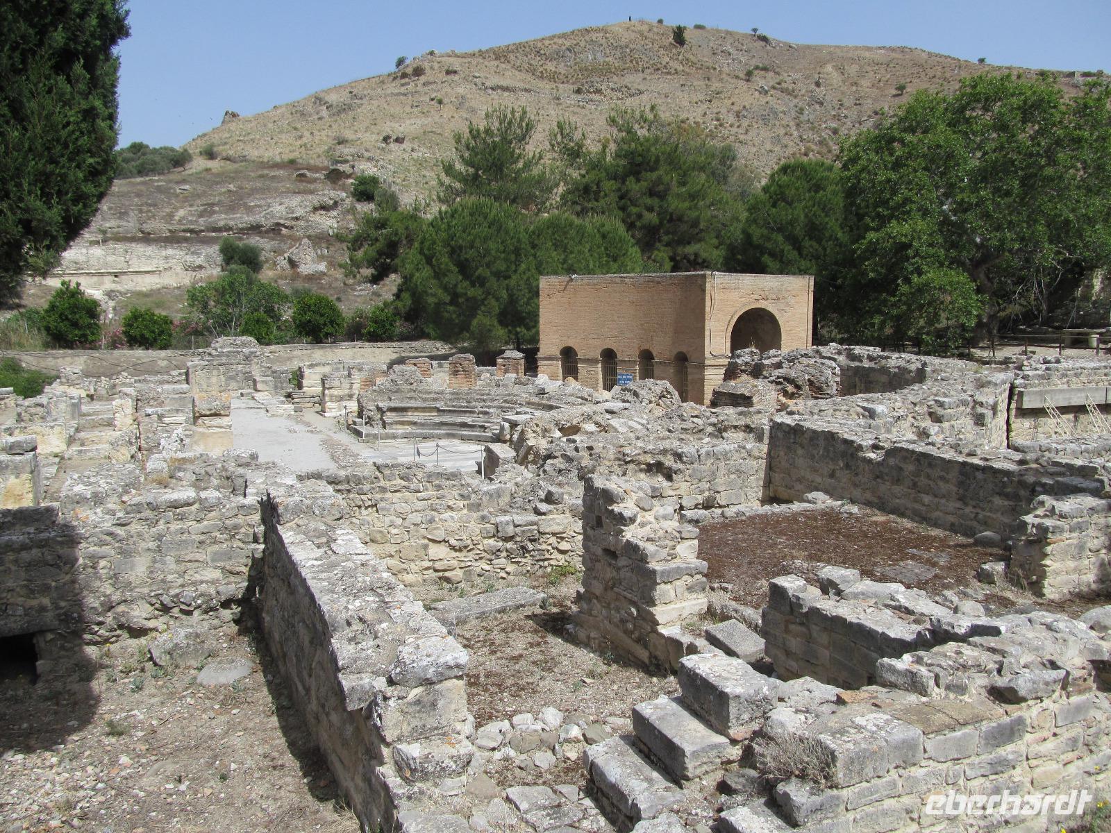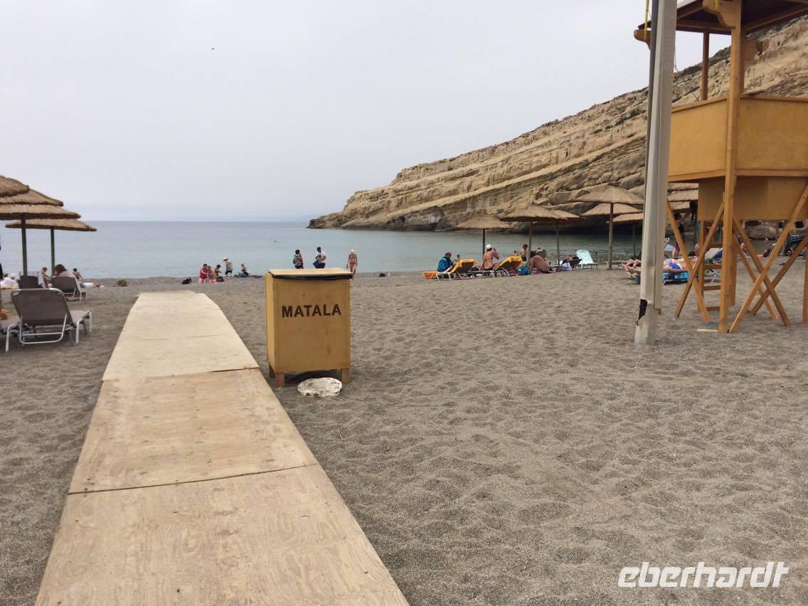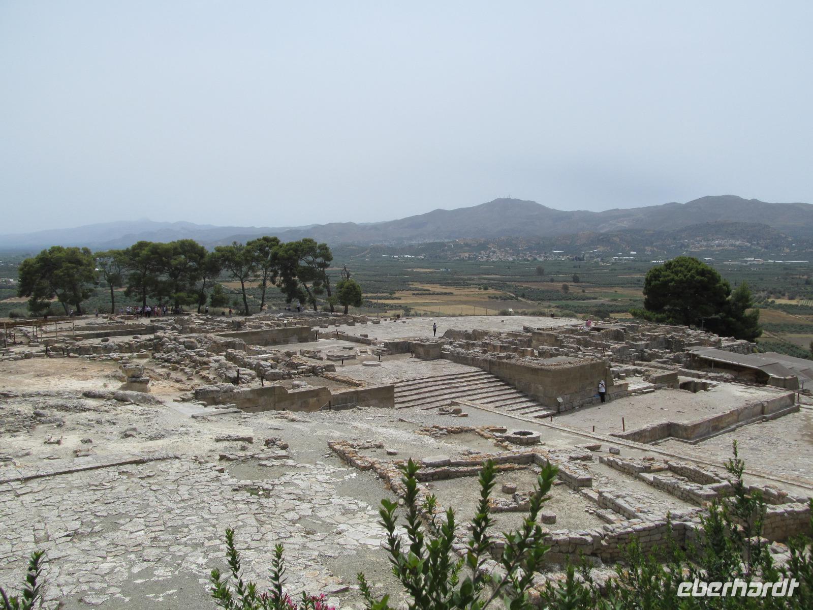 Nach einem langen Folkloreabend, begannen wir unser heutiges Tagesprogramm erst 9 Uhr. Unser Weg führte uns wieder durch die Messara-Ebene in Richtung Süden. Zunächst besuchten wir die Titus-Basilika und Odeions in Gortys. Rena führte uns durch die ehemalige Stadt, welche für ihre griechischen Gesetzestafeln aus dem 5. Jahrhundert bekannt war. Sie zeigte uns auch eine große alte Plantane, unter der laut Erzählungen Zeus mit Europa den jungen Sohn Minos gezeigt habe soll. Noch heute noch kommen junge Paare dort hin und pflücken drei Blätter von dem Baum, um drei gesunde Söhne zu bekommen. Nach einer kleinen Pause mit einem frisch gepressten Orangensaft und einem Kaffee, ging die Fahrt weiter, zur zweit größten Palastanlage nach Knossos-Festos. Die Anlage liegt hoch oben auf einem Berg in der Messara-Ebene, wo der 2. Sohn Zeus, Rhadamanthys lebte. Rena führte uns über das Theater, entlang der Vorratskammern in Richtung des Westhofes und zog immer wieder Parallelen zu der Palastanlage in Knossos. Die Anlage von Festos wurde zweimal erbaut, wodurch es immer wieder neue und alte Gesteins- und Bauarten zu sehen gab. Nach den vielen historischen Eindrücken, nahmen wir uns eine kleine Auszeit im Fischerdorf Matala, wo wir unser Mittagessen einnahmen. Anschließen stand die Zeit zu freien Verfügung, für einen Spaziergang durch die bunte Hippiestadt, mit einer Vielzahl an Geschäften oder einen Sprung in das kühle Nass am Strand von Matala. Auch eine Besichtigung der Hippie-Höhlen war möglich. Am späten Nachmittag trafen wir wieder im Hotel ein und wir nutzen die warmen Temperaturen für ein paar Stunden am Strand.