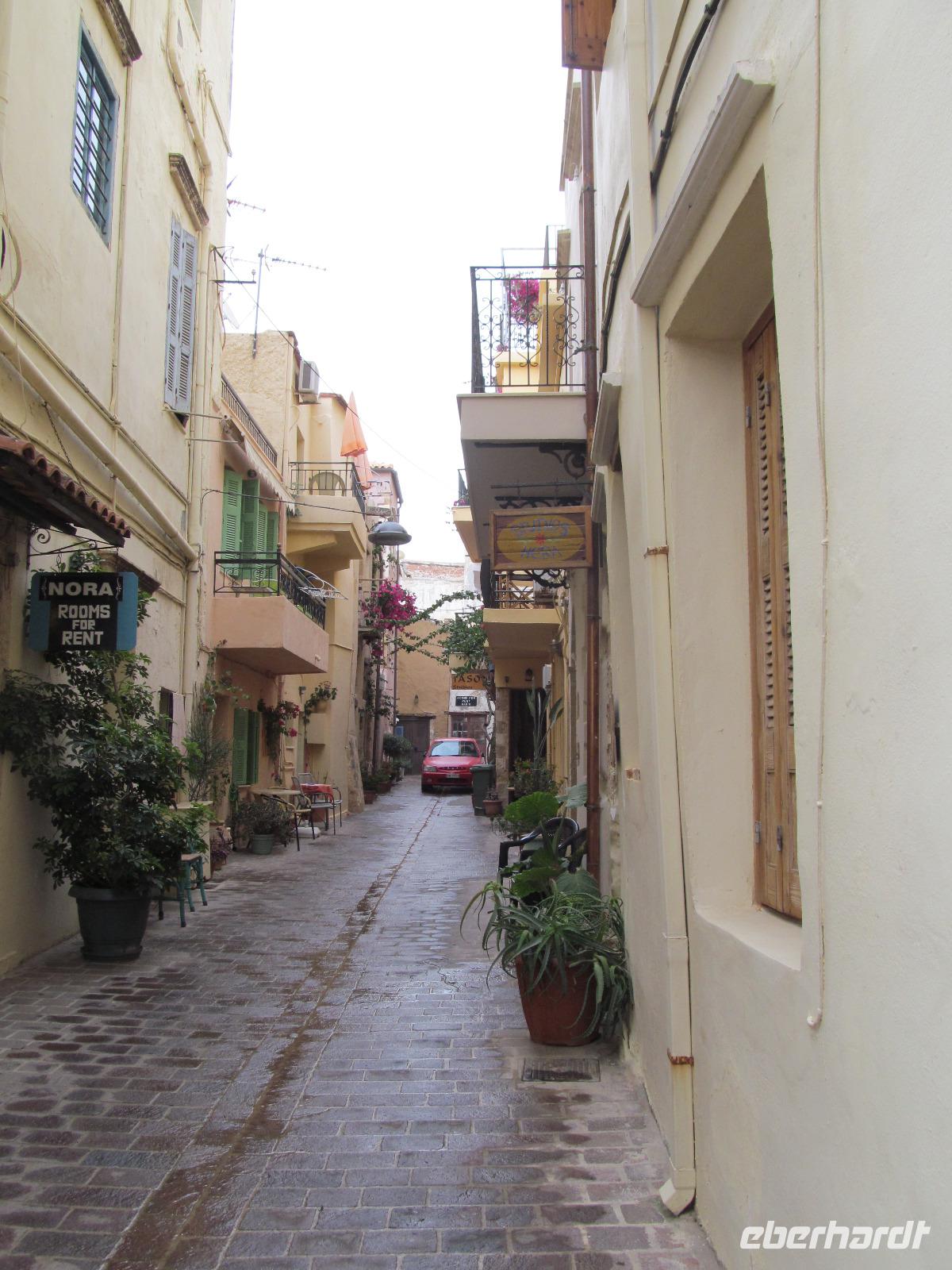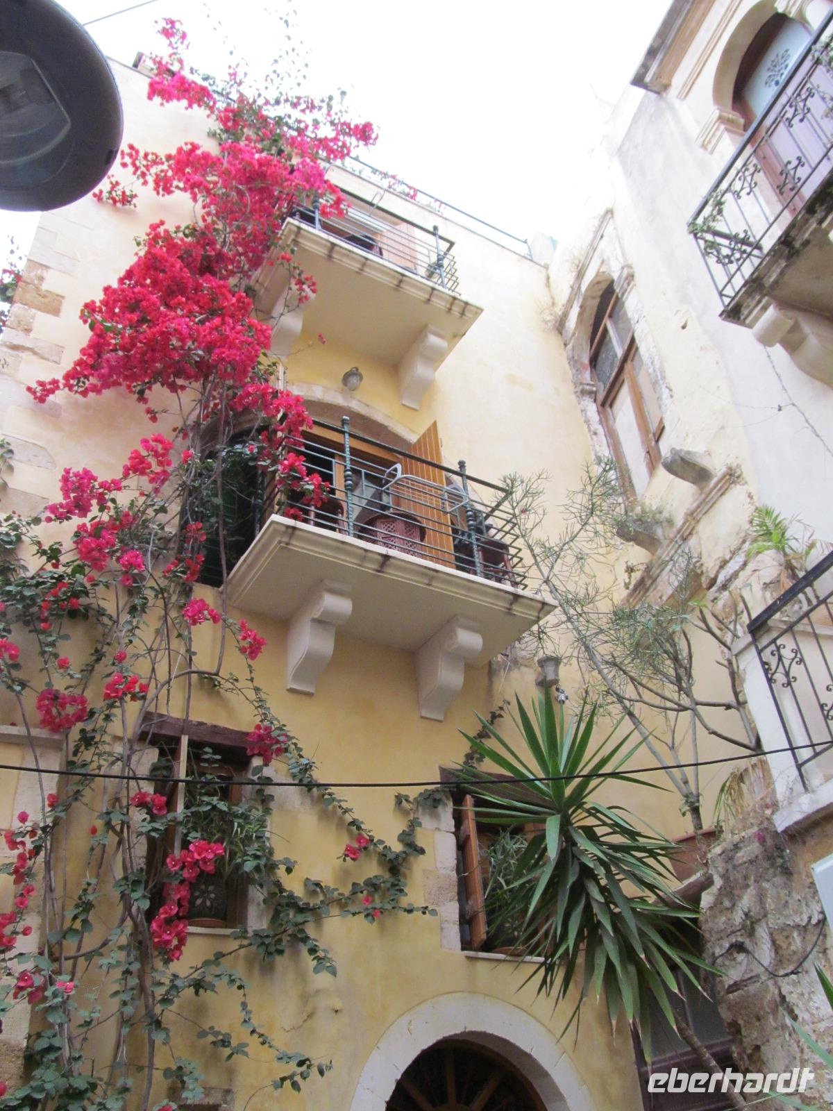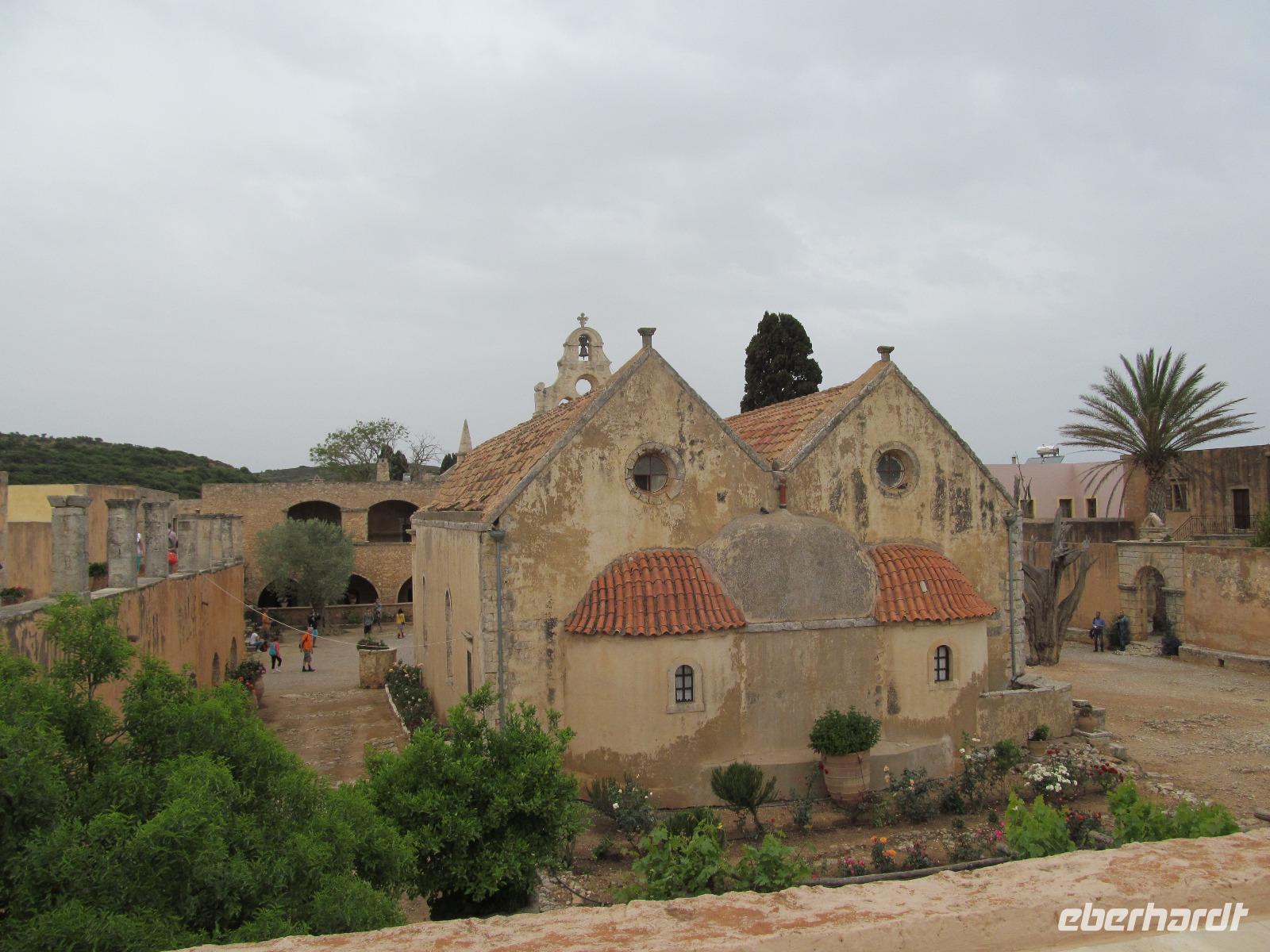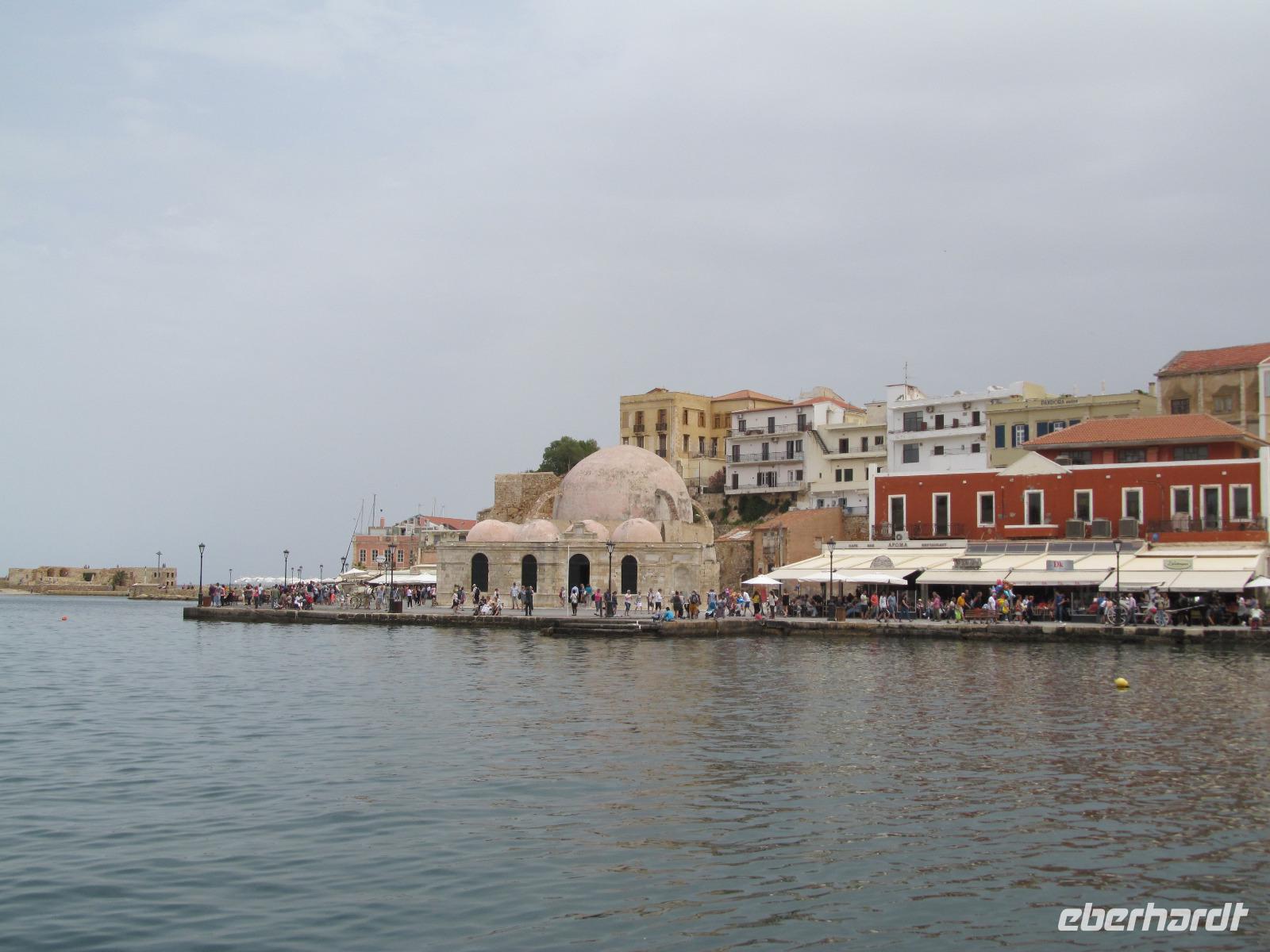 Auch heute begrüßte uns Rena wieder, wie jeden Morgen mit dem fröhlichen Lied „Kalimera, ti kaneis, sagapao polis", was so viel heißt wie „Guten Morgen, wie geht es Dir". In diesem Sinne ging es für uns heute in den Westen der Insel, mit nicht so schönem Wetter wie die tage zu vor, da es sehr stürmisch und regnerisch war. Dennoch ließen wir uns nicht davon beeindrucken und machten unseren ersten Stopp des Tages an dem bedeutendsten Kloster Kretas...Arkadi. Das Kloster ist ein Zeichen für die Freiheit der Kretaner gegenüber der Türkenherrschaft und somit ein Nationalheiligtum der Insel. Noch heute erinnern die Schädel duzender Gefallener im Beinhaus an die vielen Opfer der Schlacht um Arkadi. Die Klostermauern im Stil der Renaissance sind mit zahlreichen Blumen geschmückt und bieten einen idyllischen Ausblick. Nach dem Einblick in die Geschichte des Kloster Arkadi begaben wir uns auf die Weiterreise in die 2. Größte Stadt der Insel, nämlich nach Chania. Dort wurden wir von unserem Busfahrer vor die zentrale Markthalle der Stadt gebracht, von wo aus wir unseren Spaziergang bis zu dem venezianischen Hafen unternommen. Danach konnte jeder auf eigene Faust, je nach Vorlieben, die Stadt erkunden. Die Meisten suchten sich ein nettes Restaurant an der Hafenpromenade oder gingen durch die vielen romanischen Gassen um Souvenir oder ähnliches zu erwerben. Nach unserem Aufenthalt in der Altstadt ging unsere Fahrt weiter nach Rethymno. Dort führte uns Rena durch die kleinen schmalen Einkaufsgassen, entlang an vielen Schuck- und Schuhgeschäften zu einer kleinen offenen Baklava-Bäckerei, wo uns der Werdegang des Teiges bis hin zu Fertigstellung der süßen Teigware demonstriert wurde. Durch das plötzliche Eintreten von einem Regenschauer verkürzte sich unser Aufenthalt in dem Ferienort Rethymno und wir fuhren nach einem langen Tag wieder zurück in das Hotel.