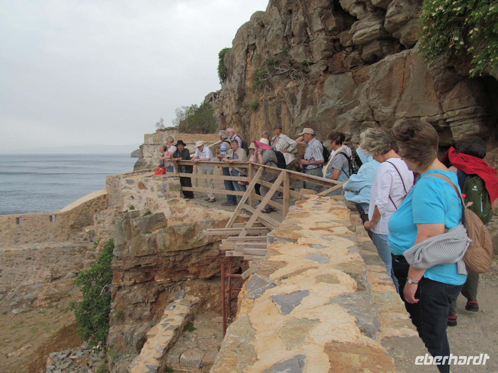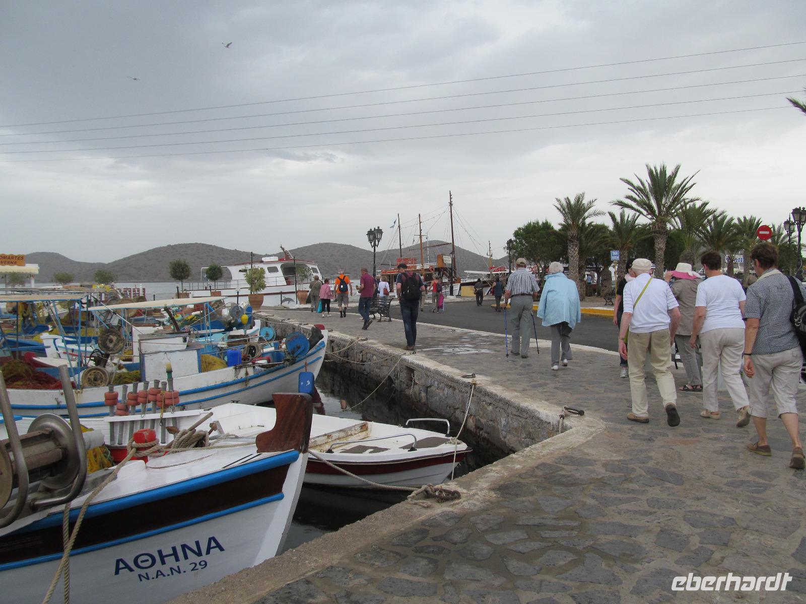 Am letzten Tag vor unsere Abreise begrüßte uns Rena wieder mit unserem alt bekannten Lied und stimmte uns so auf den anstehenden Tag ein. Auf Weg nach Elounda hielten wir spontan am Kloster Georgios Selinari an um am Sonntagmorgen an einem typisch orthodoxen Gottesdienst teil zu nehmen. Viele kretische Bürger suchen diesen Ort auf der Durchreise auf, um sich zu bekreuzigen und um eine gute Weiterfahrt zu beten. Dabei werden Kerzen angezündet und die Ikonen geküsst. Am Hafen von Elounda angekommen, stiegen wir direkt auf unser Schiff und schipperten in Richtung der Leprainsel Spinalonga. Rene informierte uns bereits im Bus über die Geschichte der Insel. Sie führte uns über die Insel, welche 1903 durch die kretischen Regierung beschlossen, 1000 Leprakranke aufnehmen sollte und einen neuen, isolierten Wohnort darstellte. Ab 1949 konnten die Menschen das erste Mal von Elektrizität Gebrauch machen, bis 4 Jahre später ein Heilmittel gegen die Krankheit präsent wurde. Erst 1957 wurde auch der letzte Bewohner in die Freiheit entlassen. Nach einer Rundfahrt mit dem Schiff um die komplette Insel, ging es wieder zurück zu dem Hafen von Elounda. Nach einer Mittagspause in einer Taverne am Hafen fuhren wir über Agios Nikolaos zurück zum Hotel. Dort konnte man individuell zu dem Voulismeni-See laufen, der Süßwassersee am Hafen oder durch die Gassen entlang des Hafens flanieren und einen Kaffee oder frisch gepressten Orangensaft trinken. Am Abend fanden wir uns alle noch einmal in der Lobby zusammen und genossen den letzten Abend noch bei einem Glas Sekt oder Orangensaft.