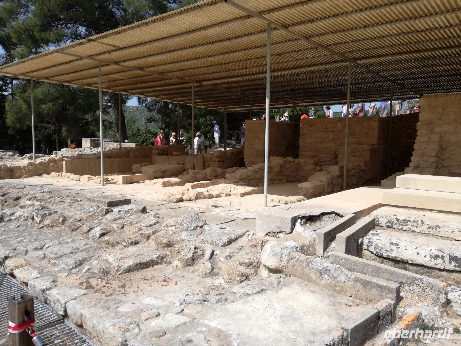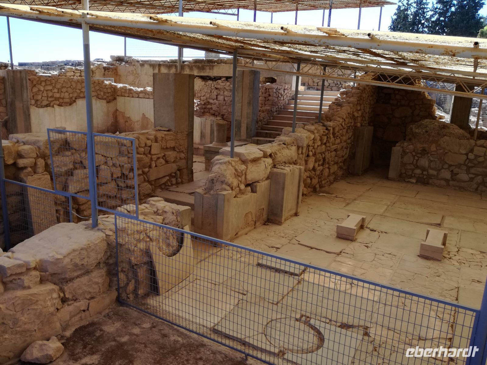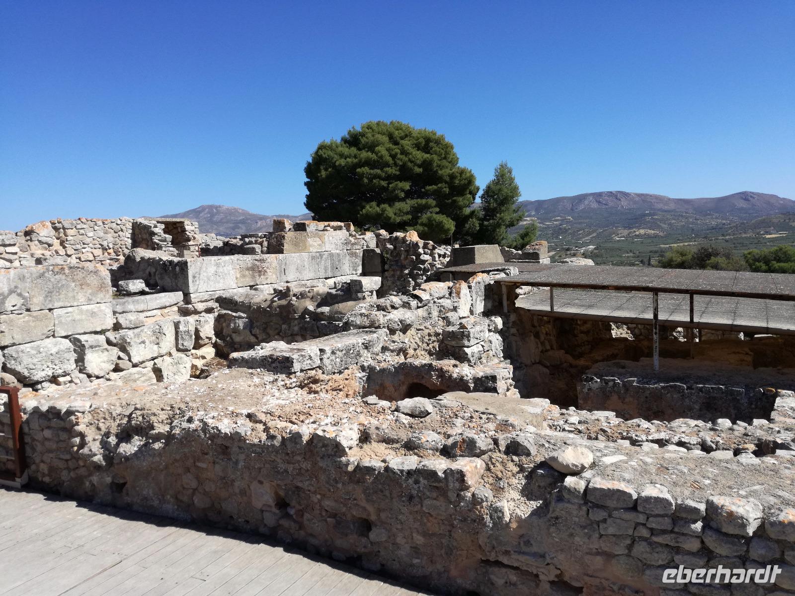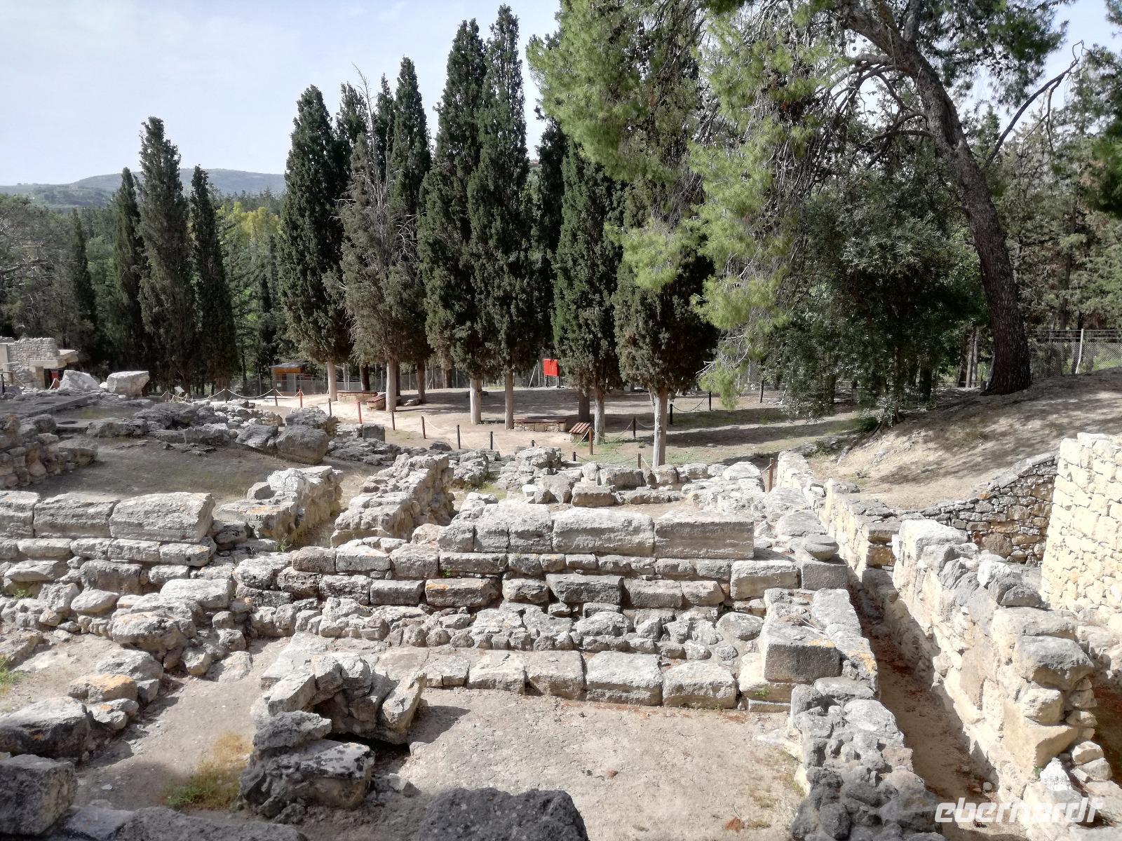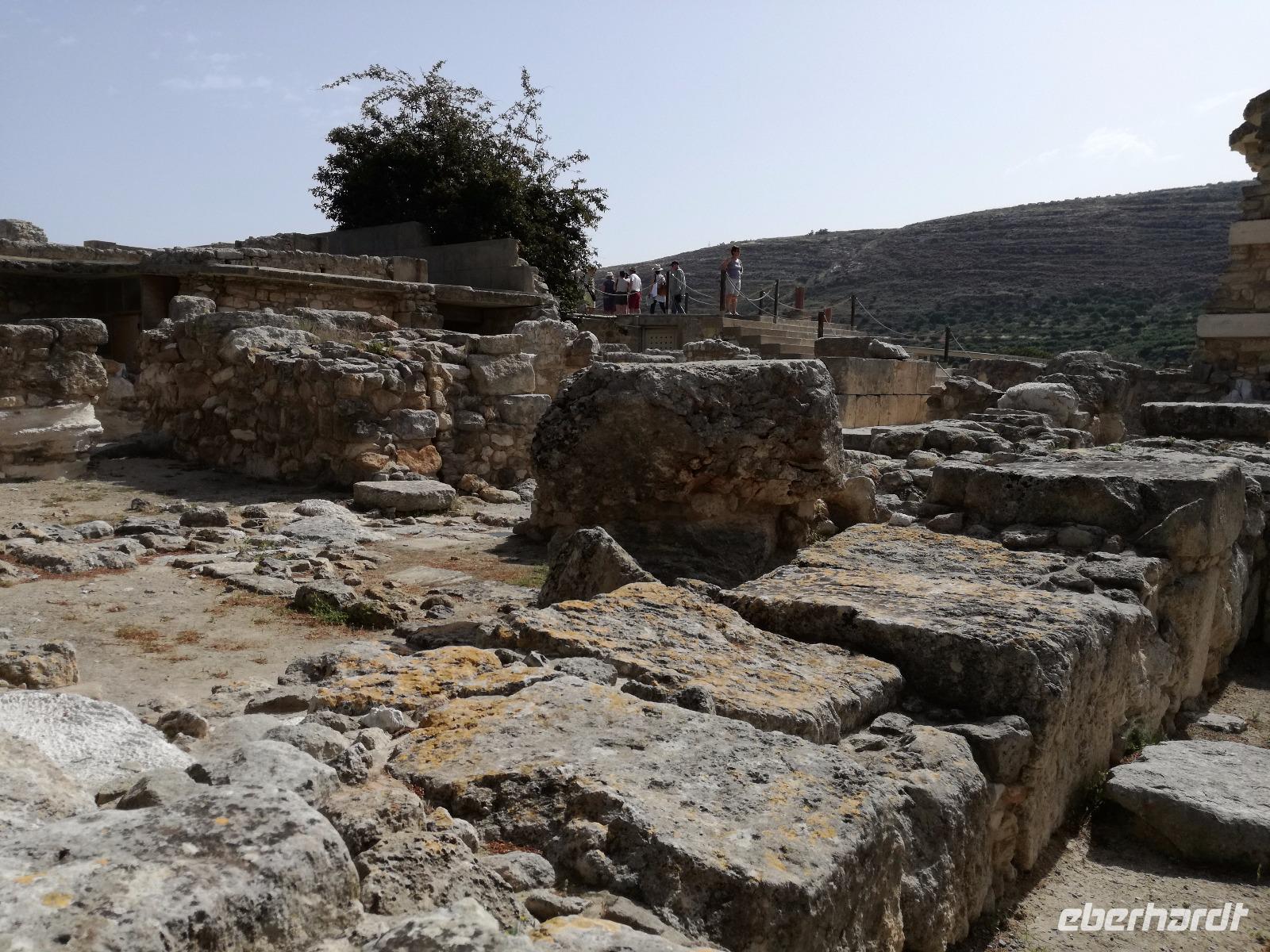 Die Erkundung der Insel ist noch lange nicht zu Ende. Wir fahren Richtung Heraklion, aber anstatt weiter Richtung Westen zu fahren, sondern in den Süden. Wir durchqueren Agia Varvara um nach Gortys zu gelangen. In der Mythologie ist dies der Ort an dem Zeus mit der entführten Europa seine Söhne zeugte. Aber auch geschichtlich hat dieser Ort einiges zu bieten. Aber zunächst kommt man an der Titus Basilika vorbei, die aus dem 6. Jhd. v. Chr. stammt. Ihren Namen hat sie von einem der Begleiter des Apostels Paulus. Titus ist heute noch Schutzheiliger der Insel. Wir gehen weiter durch die ehemalige Stadt und kommen zu den gut erhaltenen Treppen aus Marmor, die auf das Theater hindeuten, das hier einmal stand. In unmittelbarer Nähe können wir die berühmten Gesetze von Gortys stammen aus dem 500 Jhd. v. Chr. Diesee bildeten in der Vergangenheit die Grundlage für zivil-und strafrechtliche Entscheidungen wie auch Entscheidungen über Erb- und Scheidungsverfahren. Rena führt uns noch zu der Terasse der Stadt, wo eine uralte Plantane steht. Nachdem alle Bilder geschossen wurden, fahren wir weiter zum Hippie Dorf Matala. Natürlich ist dieser Ort auch Teil der griechischen Mythologie, hier soll Zeus mit der Europa aus dem Wasser gestiegen sein. Interessant sind auch die Hippiehöhle, die aber nicht in den 60er Jahren entstanden, sondern schon in der Steinzeit zum Schutz der Menschen. 1960 wurden diese dann von den Aussteigern des Lebens genutzt um zum einfachen Leben zurückzufinden. Angeblich auch von Bob Dylan und Cat Stevans. Ein wunderbarer Ort um durch die Straßen zu schlendern und am Strand zu entspannen. Nach der Mittagspause fahren wir nach Festos, auch Phaistos genannt, die zweitgrößte minoische Ausgrabungsstätte. Wegen der Ähnlichkeit im Aufbau zu Knossos wird vermutet, dass es sich hierbei auch um einen Palast handelt. Die ersten Ausgrabungen fanden im Jahre 1990 statt und heute kann man durch frühere Vorratskammern, das Theater und die Überreste der Königsgemächer schlendern. Außerdem haben wir einen atemberaubenden Blick auf die Messara Ebene. Nach diesem langen Ausflugstag freuen wir uns auf das reichhaltige Buffett in unserem Hotel.
