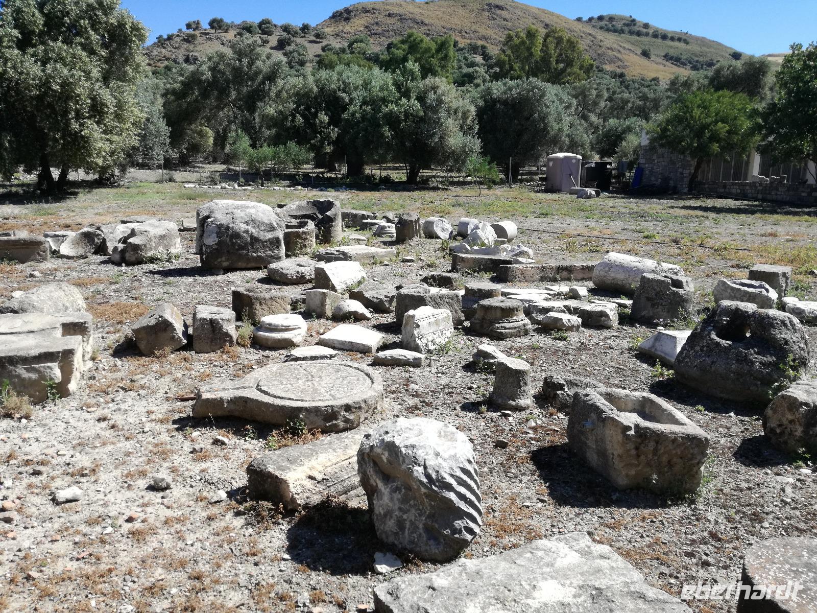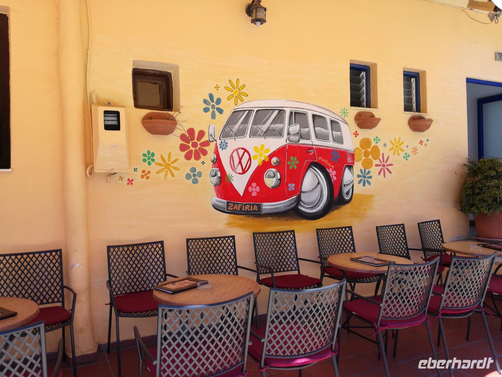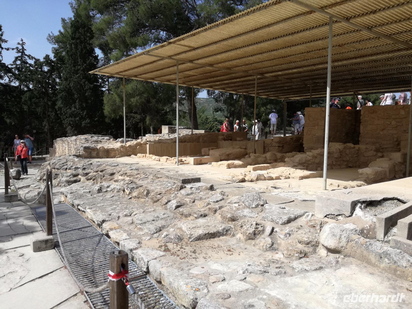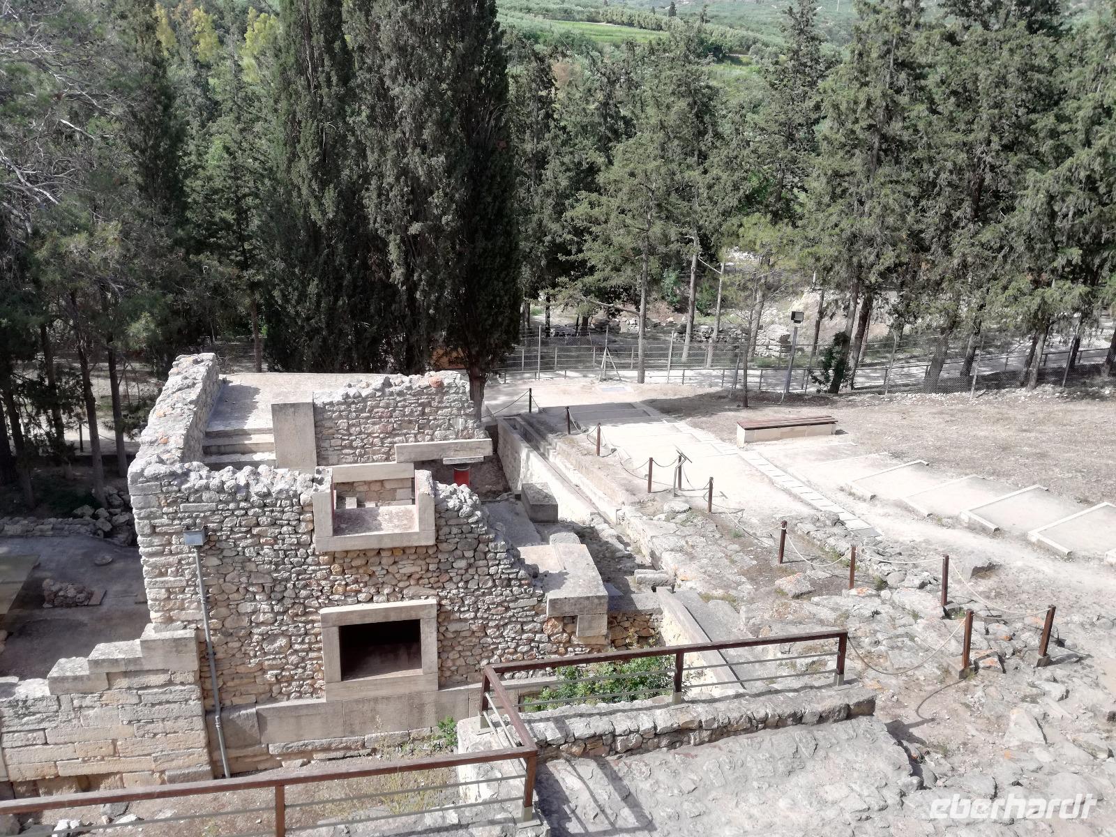 Die Erkundung der Insel ist noch lange nicht zu Ende. Wir fahren Richtung Heraklion, aber anstatt weiter Richtung Westen zu fahren, sondern in den Süden. Wir durchqueren Agia Varvara um nach Gortys zu gelangen. In der Mythologie ist dies der Ort an dem Zeus mit der entführten Europa seine Söhne zeugte. Aber auch geschichtlich hat dieser Ort einiges zu bieten. Aber zunächst kommt man an der Titus Basilika vorbei, die aus dem 6. Jhd. v. Chr. stammt. Ihren Namen hat sie von einem der Begleiter des Apostels Paulus. Titus ist heute noch Schutzheiliger der Insel. Wir gehen weiter durch die ehemalige Stadt und kommen zu den gut erhaltenen Treppen aus Marmor, die auf das Theater hindeuten, das hier einmal stand. In unmittelbarer Nähe können wir die berühmten Gesetze von Gortys stammen aus dem 500 Jhd. v. Chr. Diesee bildeten in der Vergangenheit die Grundlage für zivil-und strafrechtliche Entscheidungen wie auch Entscheidungen über Erb- und Scheidungsverfahren. Rena führt uns noch zu der Terasse der Stadt, wo eine uralte Plantane steht. Nachdem alle Bilder geschossen wurden, fahren wir weiter zum Hippie Dorf Matala. Natürlich ist dieser Ort auch Teil der griechischen Mythologie, hier soll Zeus mit der Europa aus dem Wasser gestiegen sein. Interessant sind auch die Hippiehöhle, die aber nicht in den 60er Jahren entstanden, sondern schon in der Steinzeit zum Schutz der Menschen. 1960 wurden diese dann von den Aussteigern des Lebens genutzt um zum einfachen Leben zurückzufinden. Angeblich auch von Bob Dylan und Cat Stevans. Ein wunderbarer Ort um durch die Straßen zu schlendern und am Strand zu entspannen. Nach der Mittagspause fahren wir nach Festos, auch Phaistos genannt, die zweitgrößte minoische Ausgrabungsstätte. Wegen der Ähnlichkeit im Aufbau zu Knossos wird vermutet, dass es sich hierbei auch um einen Palast handelt. Die ersten Ausgrabungen fanden im Jahre 1990 statt und heute kann man durch frühere Vorratskammern, das Theater und die Überreste der Königsgemächer schlendern. Außerdem haben wir einen atemberaubenden Blick auf die Messara Ebene. Nach diesem langen Ausflugstag freuen wir uns auf das reichhaltige Buffett in unserem Hotel.
