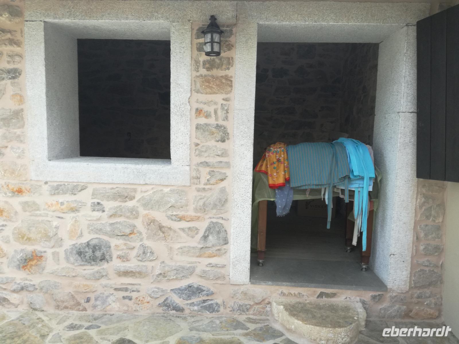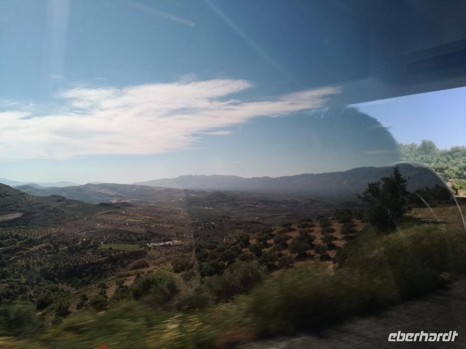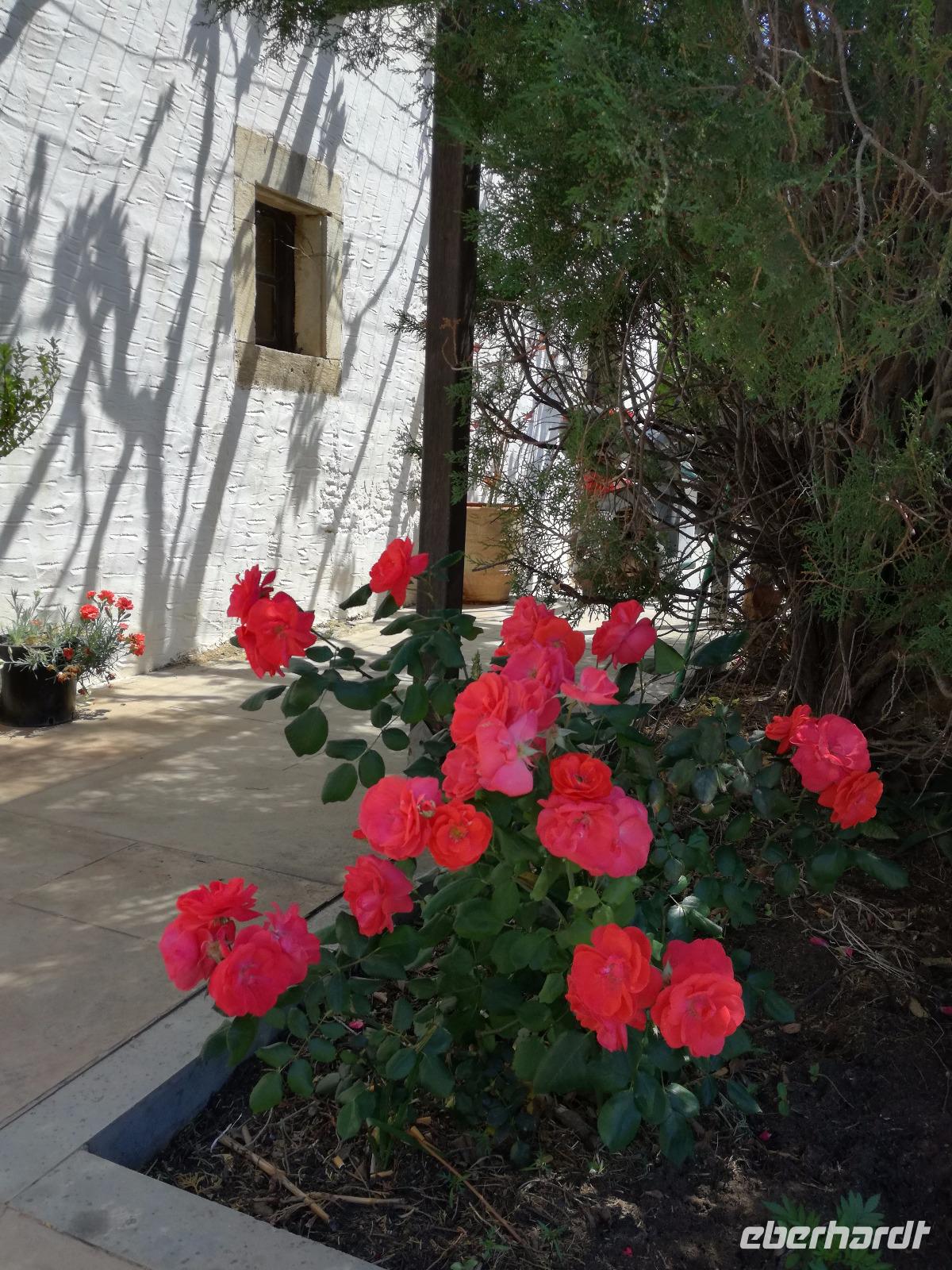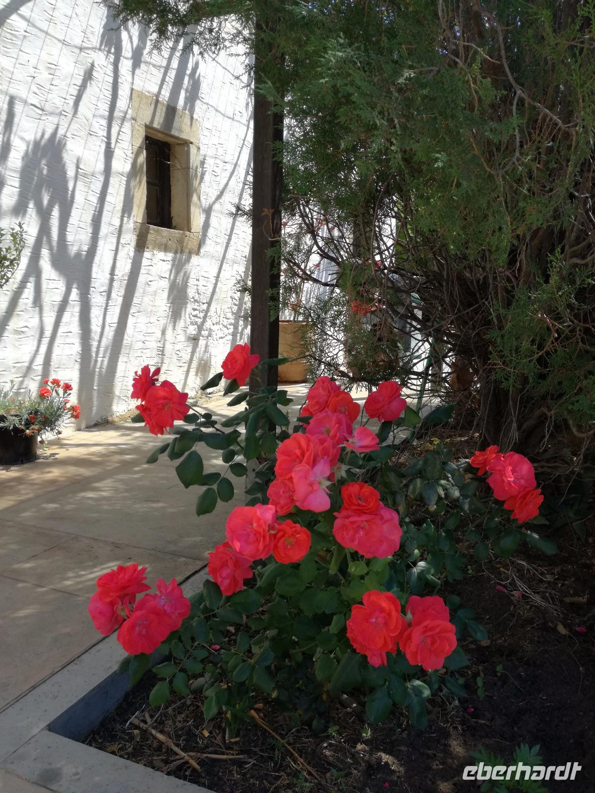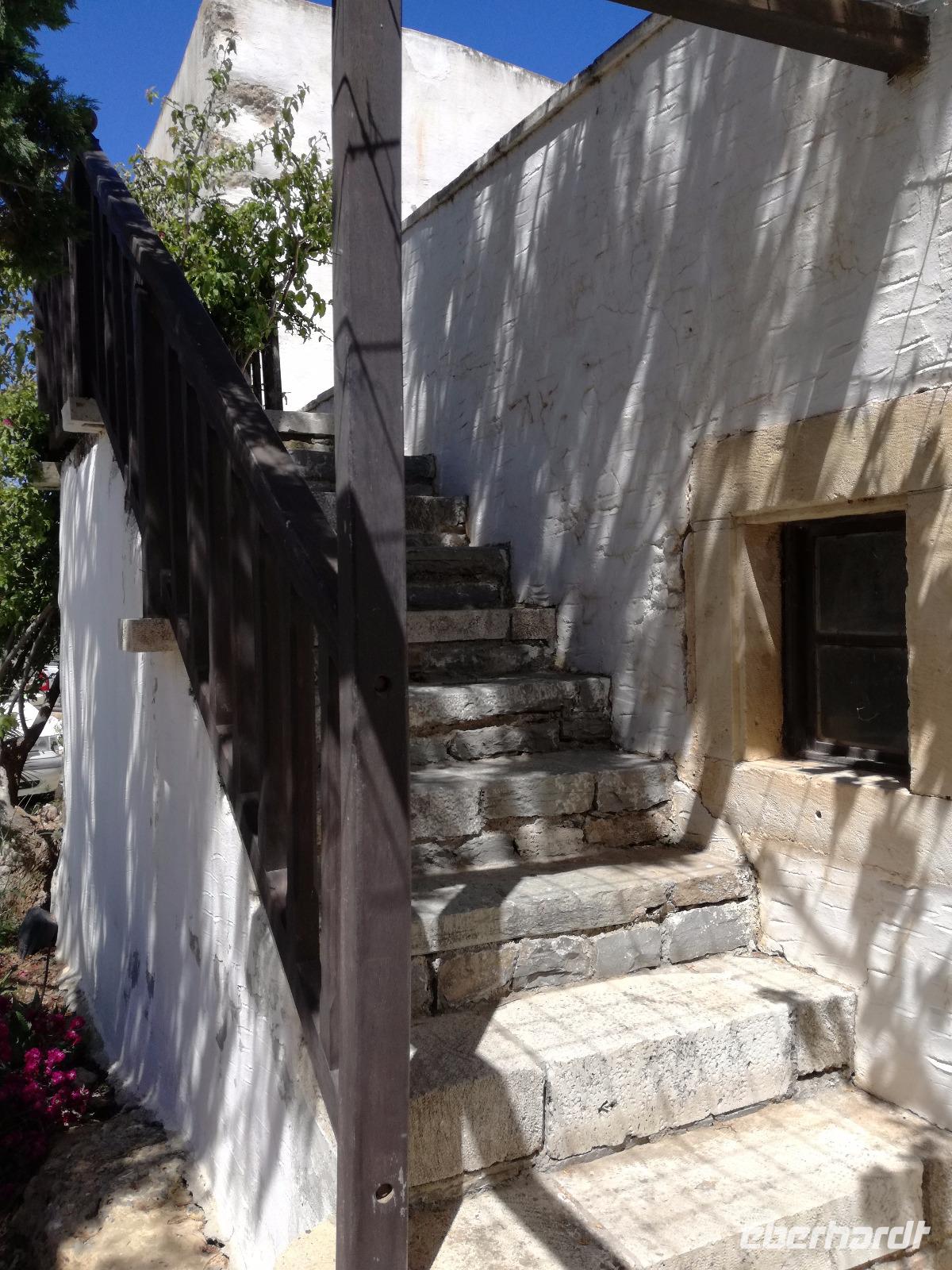 „Kalimera" tönt es bereits vom Ende der Treppe der Hotels als wir hinunter gehen. Das ist griechisch und bedeutet so viel wie „Guten Morgen". Wir fahren entlang der Küste in Richtung Osten. Zahlreiche Olivenbäume säumen den Weg. An der früheren minoischen Stadt Gournia, die an der schmalsten Stelle Ostkretas liegt halten wir um ein paar Bilder zu schießen. Im Gegensatz zu den anderen Ausgrabungsstätten der Insel Knossos und Festos, ist diese vollständig freigelegt. Da aber hier keine Restaurationen stattfanden braucht man viel Fantasie um sich die Stadt vorzustellen, die hier einmal war. Weiter ging unsere kurvenreiche Fahrt zum Kloster Toplou. Von Sitia kommend wirkt das Kloster eher wie eine Festung. Auch das stillgelegte Windrad, das vor dem Kloster steht, passt in das Bild. Wie viele Mönche hier noch wohnen wird nicht verraten. Doch es ist nicht verwunderlich, dass das Kloster wie eine Festung wirkt, da dieses sich in der Vergangenheit gegen Überfälle und Plünderungen wehren musste. Im Inneren kann man ein Kieselsteinmosaik bewundern und auch die Klosterkirche ist einen Besuch wert. Das Prachtstück der Kirche ist ein Bild aus dem Jahr 1770, das viele verschiedene biblische Themen darstellt, die fließend ineinander übergehen. Es bleibt noch Zeit für ein paar Bilder bevor wir uns zum einzigen Palmenstrand Europas aufmachen. Hier kommt Urlaubsstimmung auf, bei strahlend blauem Himmel haben meine Gäste die Möglichkeit den Sprung ins kühle Nass zu wagen oder ein Mittagessen in der Taverne einzunehmen. Gegen späten Nachmittag machen wir uns auch schon wieder auf den Weg zurück zum Hotel. Doch nicht ohne an dem Banenstrand an der Straße zu halten um uns Bananen zu kaufen, die laut Rena „so viel aromatischer als deutsche Bananen" sind. Mit vielen neuen Eindrücken machen wir uns auf den Weg zurück zum Hotel.