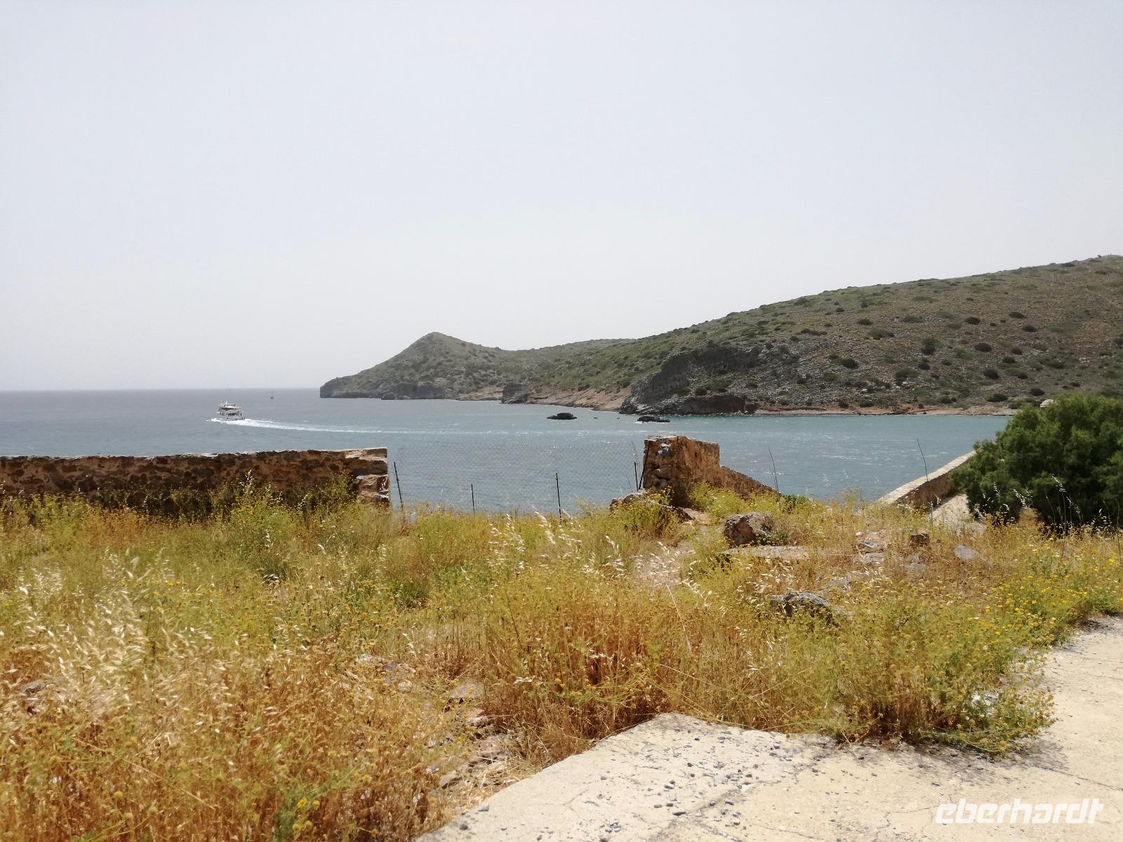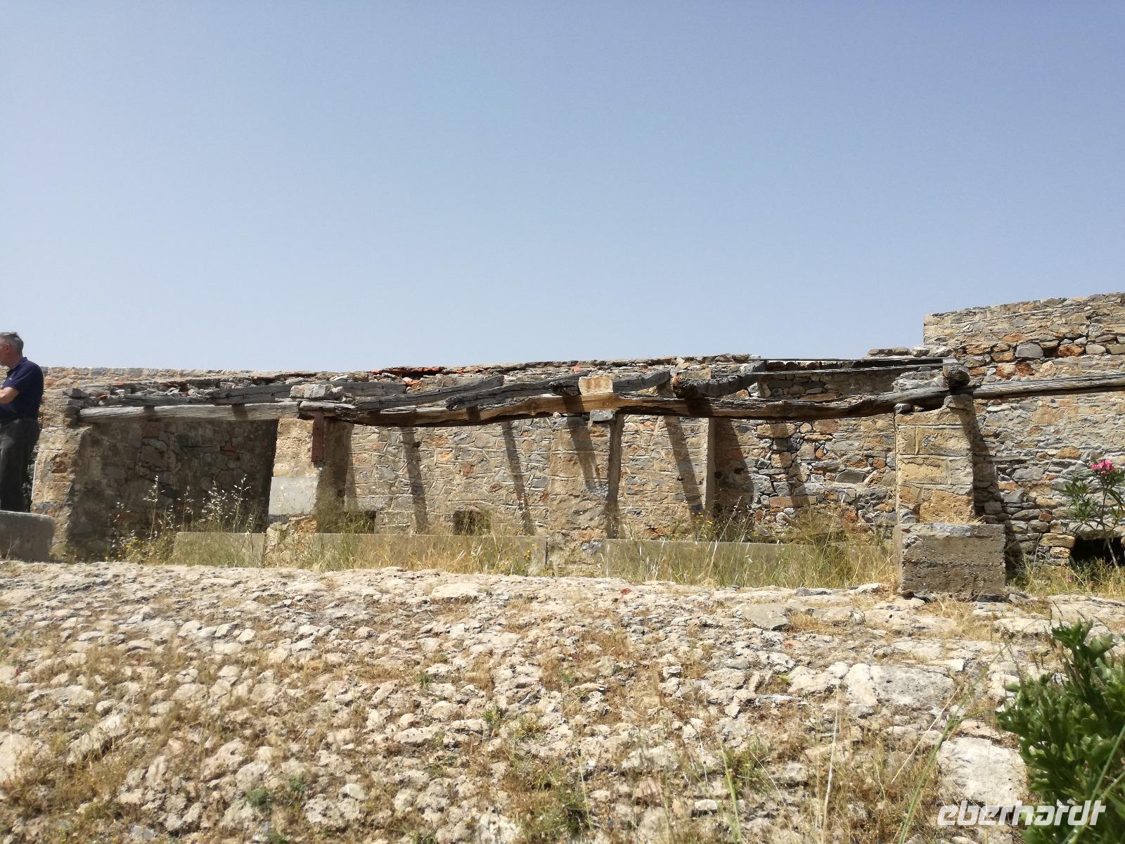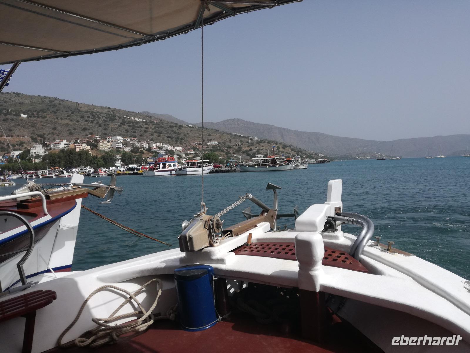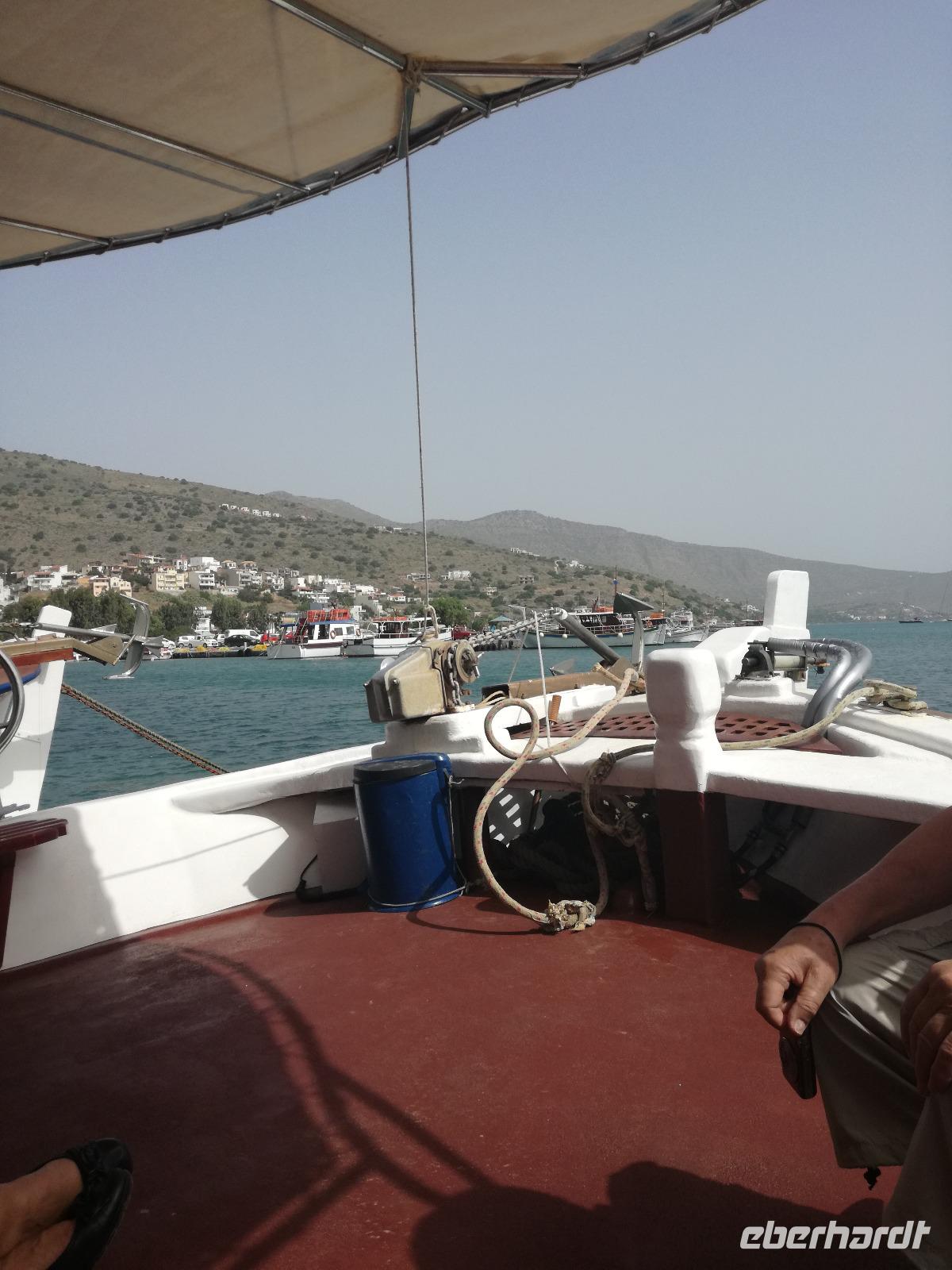 Die Serpentinen hinunter fahren wir nach Elounda. Schon von oben sehen wir die kleine Insel Spinalonga, manchen auch bekannt als Lepra Insel. Die Burg wurde bereits im 15. Jahrhundert von den Venezianern errichtet und im 16. Jahrhundert von den Türken erobert. Sie diente diesen bis ins Jahr 1900 als Wohnraum, bis die Türken Kreta verließen. Danach diente sie als Quarantänestation für die Leprakranken der Insel Kreta. In der gesamten Zeit lebten ca. 2000 Menschen auf der Insel, verbannt wegen Ihrer Krankheit. Mit dem Boot überqueren wir das Wasser um zur Insel zu gelangen. Ein heißer Wind weht dort und unterstützt die Vorstellungskraft, was damals auf der Insel abgelaufen ist. Rena erzählt uns mit anschaulichen Details die Inselgeschichte.Wir machen eine Runde über die 440 Meter lange und 250 Meter breite Insel, bevor wir den Spielort des Romans "Die Insel" wieder verlassen. In Elounda haben wir Zeit um das frische Meer zu genießen, eine Mahlzeit zu uns zu nehmen oder am Hafen entlang zu schlendern. Dann fahren wir gemeinsam nach Agios Nikolaos um dort noch einen Kaffee zu trinken und die letzten Tage Revue passieren zu lassen. Am Hotel angekommen verabschieden wir uns von unserer lieben Rena und begeben uns zum Abendessen. Am letzten Tag darf ein Umtrunk natürlich auch nicht fehlen, weswegen wir uns noch an der Hotelbar einfinden um den Abend ausklingen zu lassen.