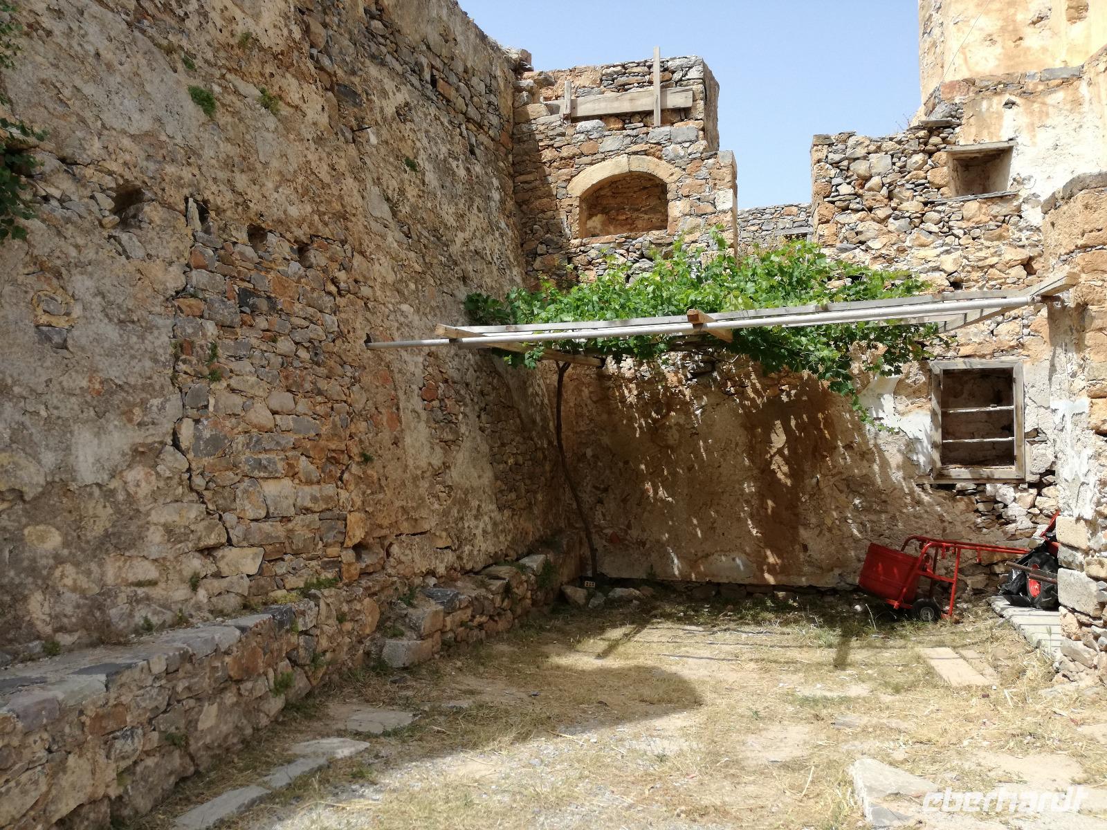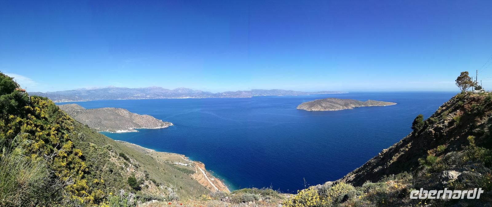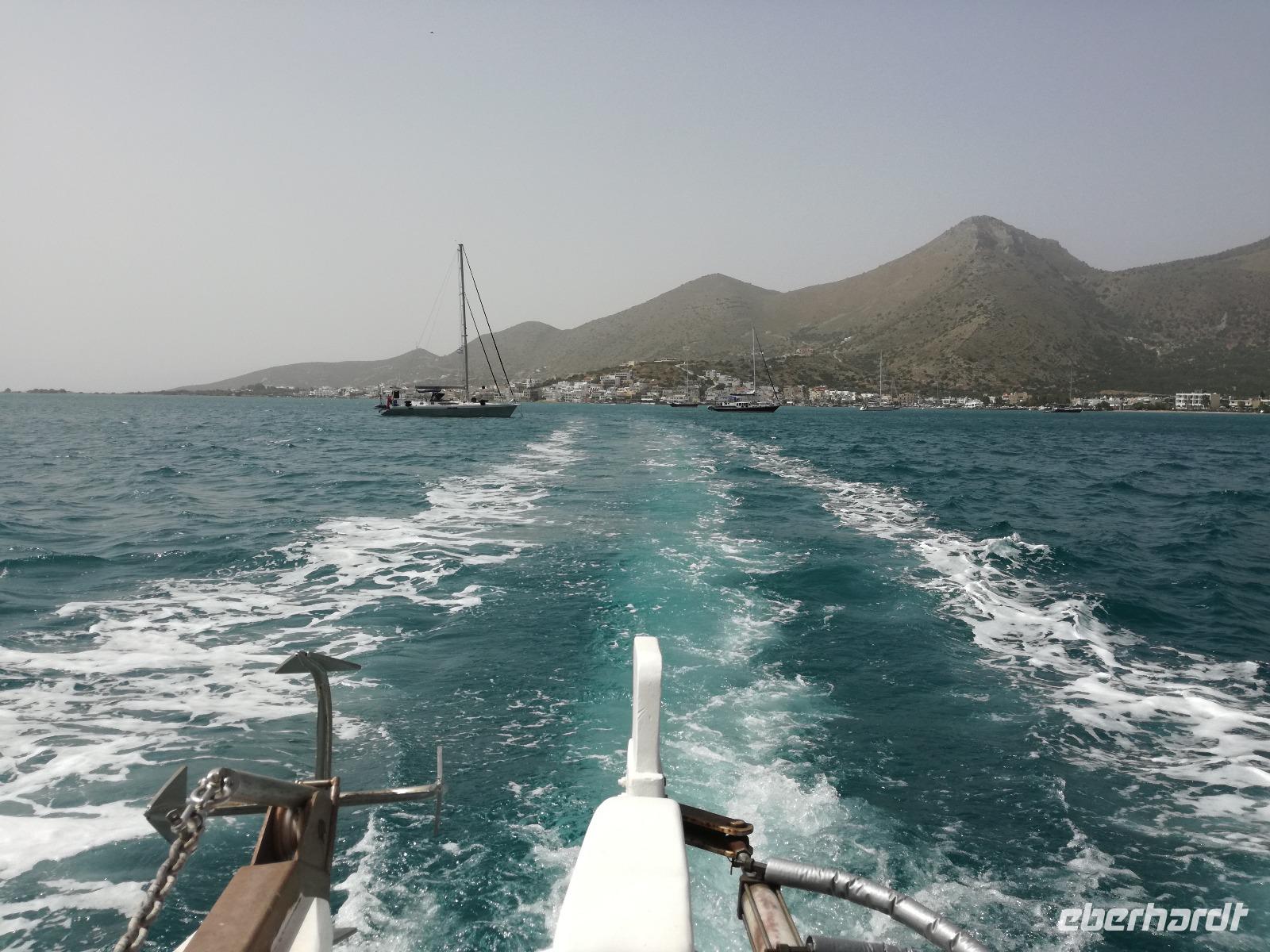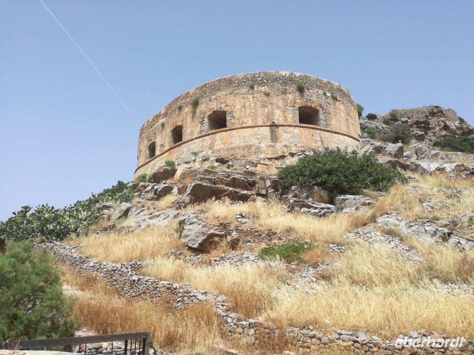 Die Serpentinen hinunter fahren wir nach Elounda. Schon von oben sehen wir die kleine Insel Spinalonga, manchen auch bekannt als Lepra Insel. Die Burg wurde bereits im 15. Jahrhundert von den Venezianern errichtet und im 16. Jahrhundert von den Türken erobert. Sie diente diesen bis ins Jahr 1900 als Wohnraum, bis die Türken Kreta verließen. Danach diente sie als Quarantänestation für die Leprakranken der Insel Kreta. In der gesamten Zeit lebten ca. 2000 Menschen auf der Insel, verbannt wegen Ihrer Krankheit. Mit dem Boot überqueren wir das Wasser um zur Insel zu gelangen. Ein heißer Wind weht dort und unterstützt die Vorstellungskraft, was damals auf der Insel abgelaufen ist. Rena erzählt uns mit anschaulichen Details die Inselgeschichte.Wir machen eine Runde über die 440 Meter lange und 250 Meter breite Insel, bevor wir den Spielort des Romans "Die Insel" wieder verlassen. In Elounda haben wir Zeit um das frische Meer zu genießen, eine Mahlzeit zu uns zu nehmen oder am Hafen entlang zu schlendern. Dann fahren wir gemeinsam nach Agios Nikolaos um dort noch einen Kaffee zu trinken und die letzten Tage Revue passieren zu lassen. Am Hotel angekommen verabschieden wir uns von unserer lieben Rena und begeben uns zum Abendessen. Am letzten Tag darf ein Umtrunk natürlich auch nicht fehlen, weswegen wir uns noch an der Hotelbar einfinden um den Abend ausklingen zu lassen.