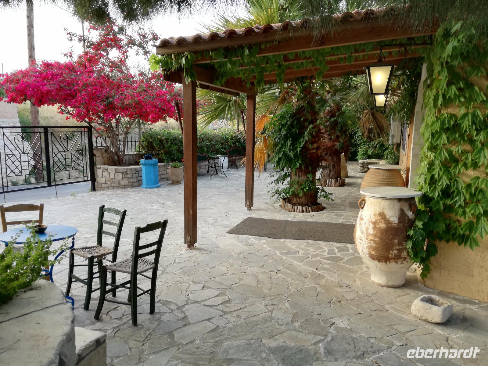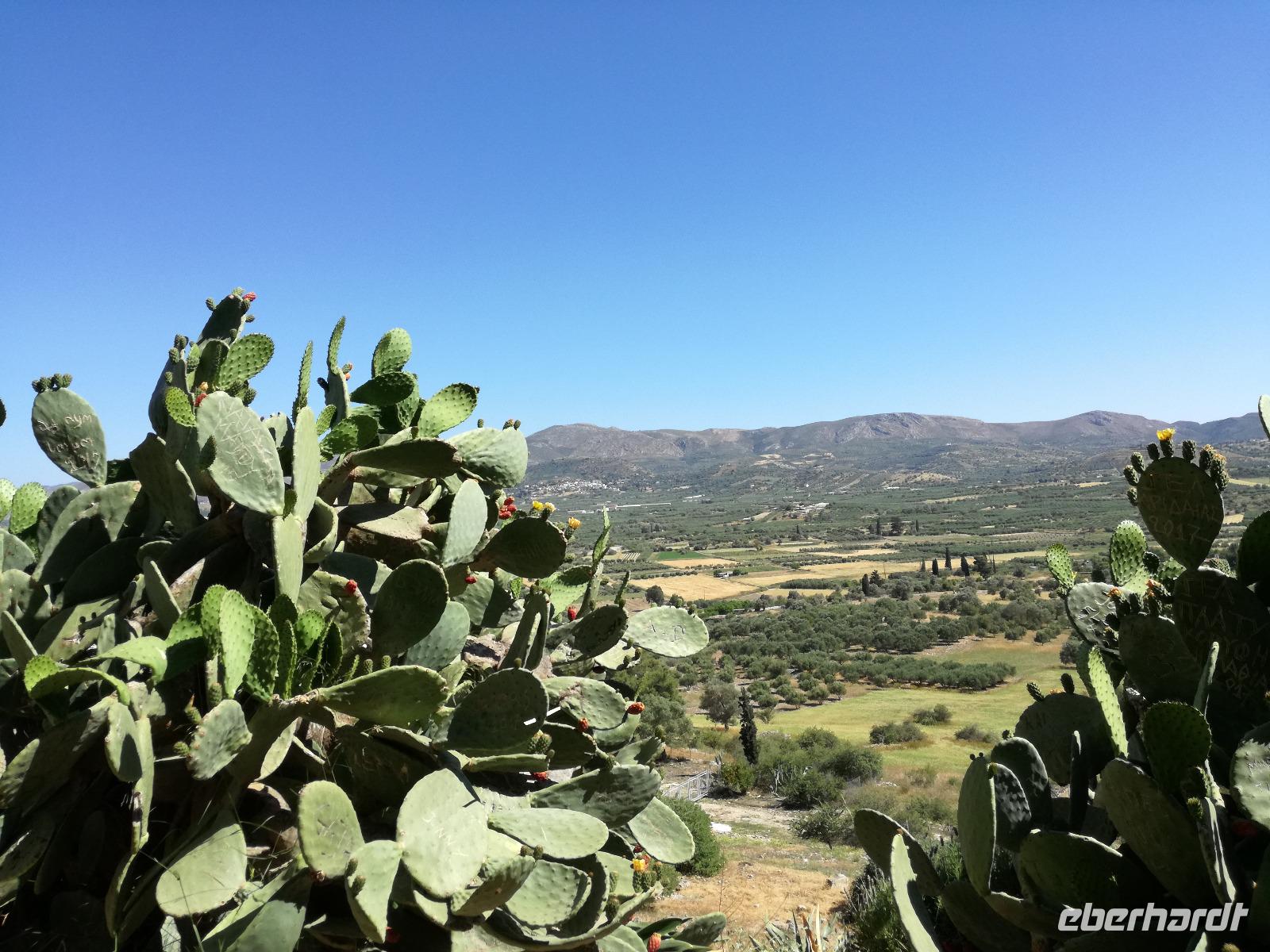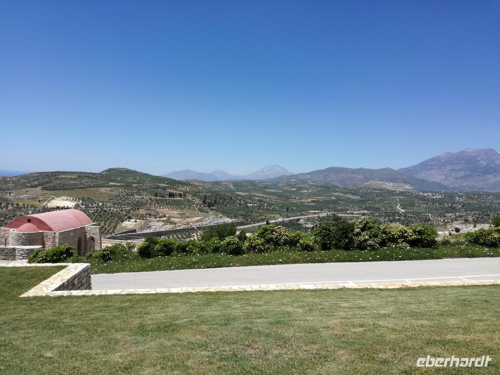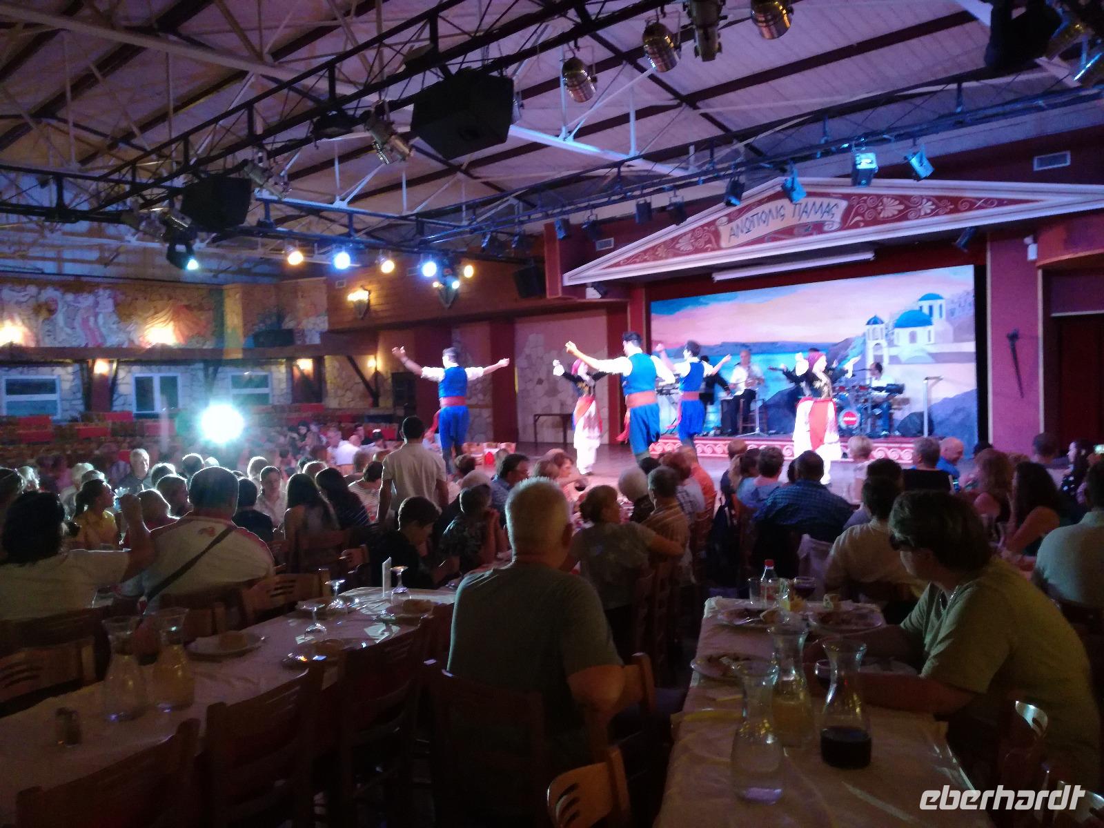 Wir sind gespannt auf den heutigen Ausflug der uns in die Lassithi-Hochebene führt. Das Kloster Panagia i Kardiotissa, das wir als erstes besuchen ist der Ikone der Gottesmutter Kardiotissa gewidmet. Laut Überlieferungen wurde die Ikone dreimal von den Türken gestohlen und wie durch ein Wunder immer wieder zum Kloster zurückgekehrt. Das dritte Mal ketteten sie die Entführer mit Ketten an eine Säule, die die Ikone aber auch mitnahm. Diese Säule können wir heute im Hof des Klosters begutachten. Rena zeigt uns in der kleinen Kapelle des Klosters, an den Wänden können wir farbige Fresken begutachten, die noch sehr gut erhalten sind. Auch die gesamte Klosteranlage ist ein wunderbares Fotomotiv, weshalb wir noch einige Minuten verweilen um dies zu nutzen. Die Weiterfahrt führt uns zu der Höhle des Zeus, auch diktäische Höhle genannt. Darf man den mythischen Geschichten Glauben schenken ist hier der Göttervater Zeus geboren. Dieser sollte von seinem Vater Kronos getötet werden, da dieser befürchtete von seinem unsterblichen Sohn vom Thron gestoßen zu werden, was dann letztendlich auch geschah. Wir begeben uns auf Spurensuche und steigen hinauf, auf 1200m Höhe. Oben angekommen geht es auch schon wieder bergab in die Untiefen der Höhle, diese ist mit Scheinwerfer ausgeleuchtet und somit können wir die spektakulären Stalaktiten und bewundern. Damit haben wir uns auch einen kühlen Orangensaft verdient, den wir uns genehmigen bevor wir wieder hinunter zum Parkplatz wandern, wo die restlichen Gäste auf uns warten. Die Mittagspause verbringen wir in einem kleinen Dorf auf der Hochebene, bevor wir weiter fahren um die älteste Plantane mit 20m Umfang zu besichtigen, diese ist ungefähr 2000 Jahre alt. Den Nachmittag können wir frei gestalten und uns bereit machen für einen Abend mit griechischer Musik und lokalem Essen. Dieser beginnt natürlich gemäß griechischer Tradition mit einem Schnaps, den typischen Raki. Wir trinken auf die Dame, die heute Geburtstag hat und wünschen ihr alles Gute. Die Abendshow überrascht uns mit jungen Tänzern in traditionellen Trachten und einer Showeinlage dieser, die die griechischen Götterfiguren verkörpern. Wir werden zum Tanz aufgefordert und spüren das kretische Lebensgefühl in uns. Wir tanzen und trinken bis in die Nacht hinein, bis die Veranstaltung endet.