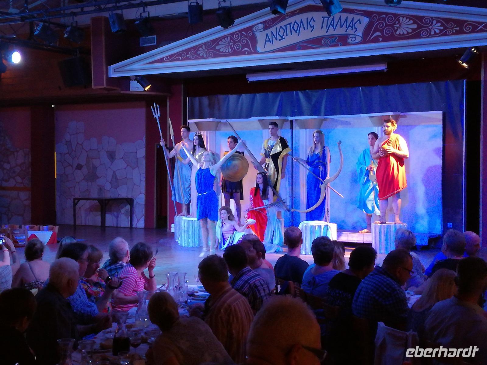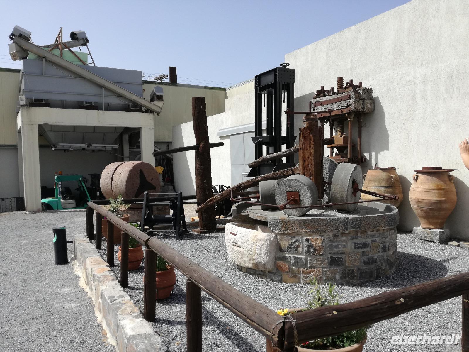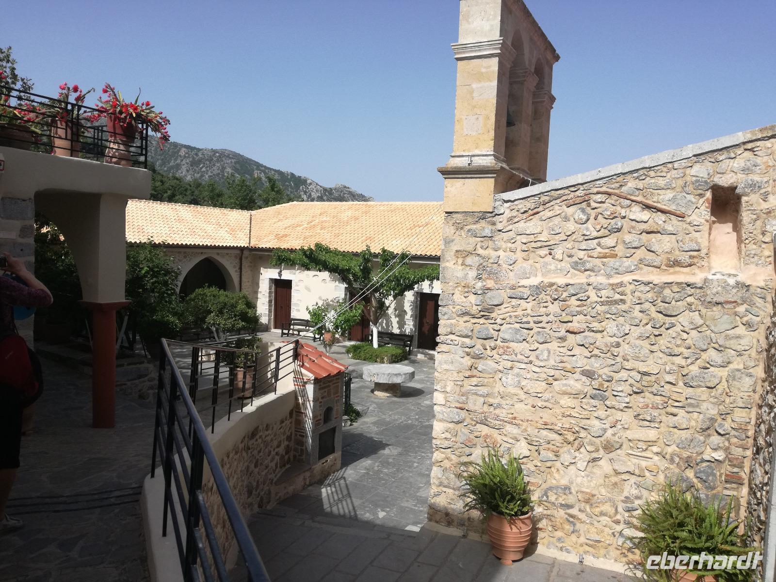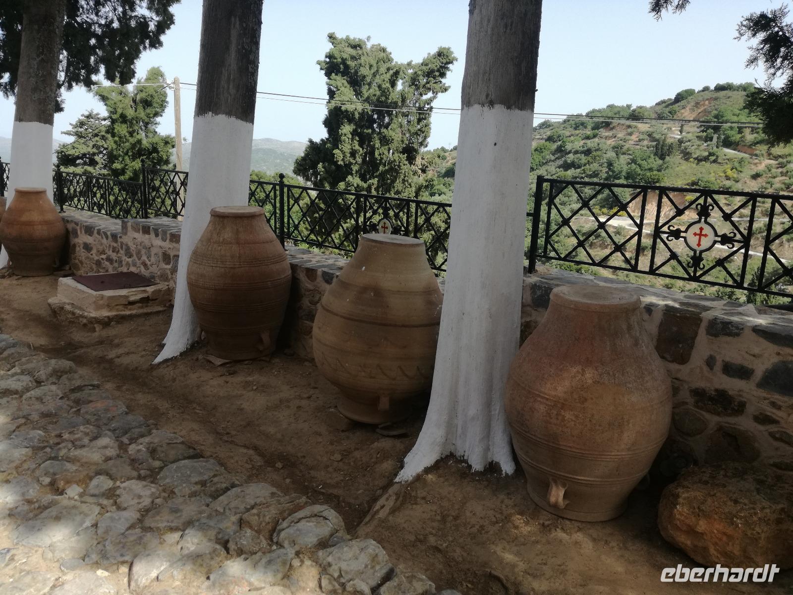 Wir sind gespannt auf den heutigen Ausflug der uns in die Lassithi-Hochebene führt. Das Kloster Panagia i Kardiotissa, das wir als erstes besuchen ist der Ikone der Gottesmutter Kardiotissa gewidmet. Laut Überlieferungen wurde die Ikone dreimal von den Türken gestohlen und wie durch ein Wunder immer wieder zum Kloster zurückgekehrt. Das dritte Mal ketteten sie die Entführer mit Ketten an eine Säule, die die Ikone aber auch mitnahm. Diese Säule können wir heute im Hof des Klosters begutachten. Rena zeigt uns in der kleinen Kapelle des Klosters, an den Wänden können wir farbige Fresken begutachten, die noch sehr gut erhalten sind. Auch die gesamte Klosteranlage ist ein wunderbares Fotomotiv, weshalb wir noch einige Minuten verweilen um dies zu nutzen. Die Weiterfahrt führt uns zu der Höhle des Zeus, auch diktäische Höhle genannt. Darf man den mythischen Geschichten Glauben schenken ist hier der Göttervater Zeus geboren. Dieser sollte von seinem Vater Kronos getötet werden, da dieser befürchtete von seinem unsterblichen Sohn vom Thron gestoßen zu werden, was dann letztendlich auch geschah. Wir begeben uns auf Spurensuche und steigen hinauf, auf 1200m Höhe. Oben angekommen geht es auch schon wieder bergab in die Untiefen der Höhle, diese ist mit Scheinwerfer ausgeleuchtet und somit können wir die spektakulären Stalaktiten und bewundern. Damit haben wir uns auch einen kühlen Orangensaft verdient, den wir uns genehmigen bevor wir wieder hinunter zum Parkplatz wandern, wo die restlichen Gäste auf uns warten. Die Mittagspause verbringen wir in einem kleinen Dorf auf der Hochebene, bevor wir weiter fahren um die älteste Plantane mit 20m Umfang zu besichtigen, diese ist ungefähr 2000 Jahre alt. Den Nachmittag können wir frei gestalten und uns bereit machen für einen Abend mit griechischer Musik und lokalem Essen. Dieser beginnt natürlich gemäß griechischer Tradition mit einem Schnaps, den typischen Raki. Wir trinken auf die Dame, die heute Geburtstag hat und wünschen ihr alles Gute. Die Abendshow überrascht uns mit jungen Tänzern in traditionellen Trachten und einer Showeinlage dieser, die die griechischen Götterfiguren verkörpern. Wir werden zum Tanz aufgefordert und spüren das kretische Lebensgefühl in uns. Wir tanzen und trinken bis in die Nacht hinein, bis die Veranstaltung endet.
