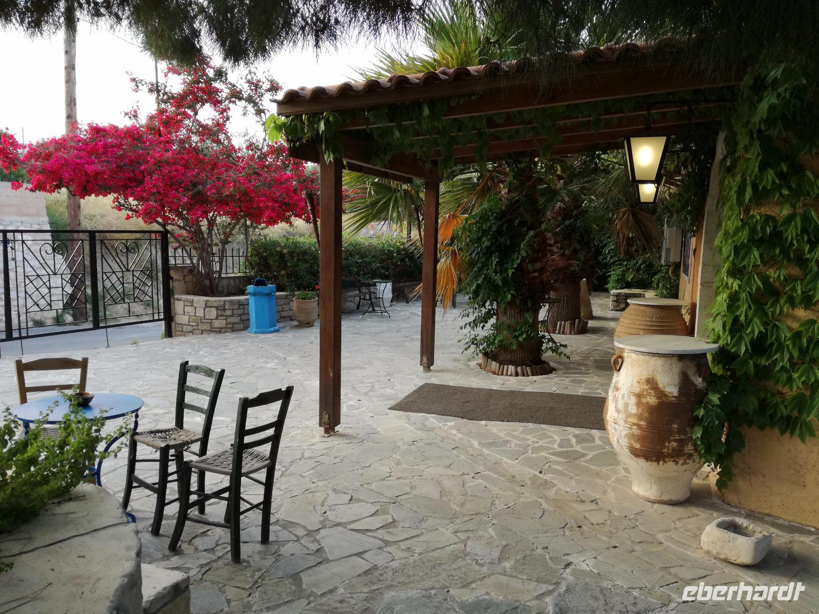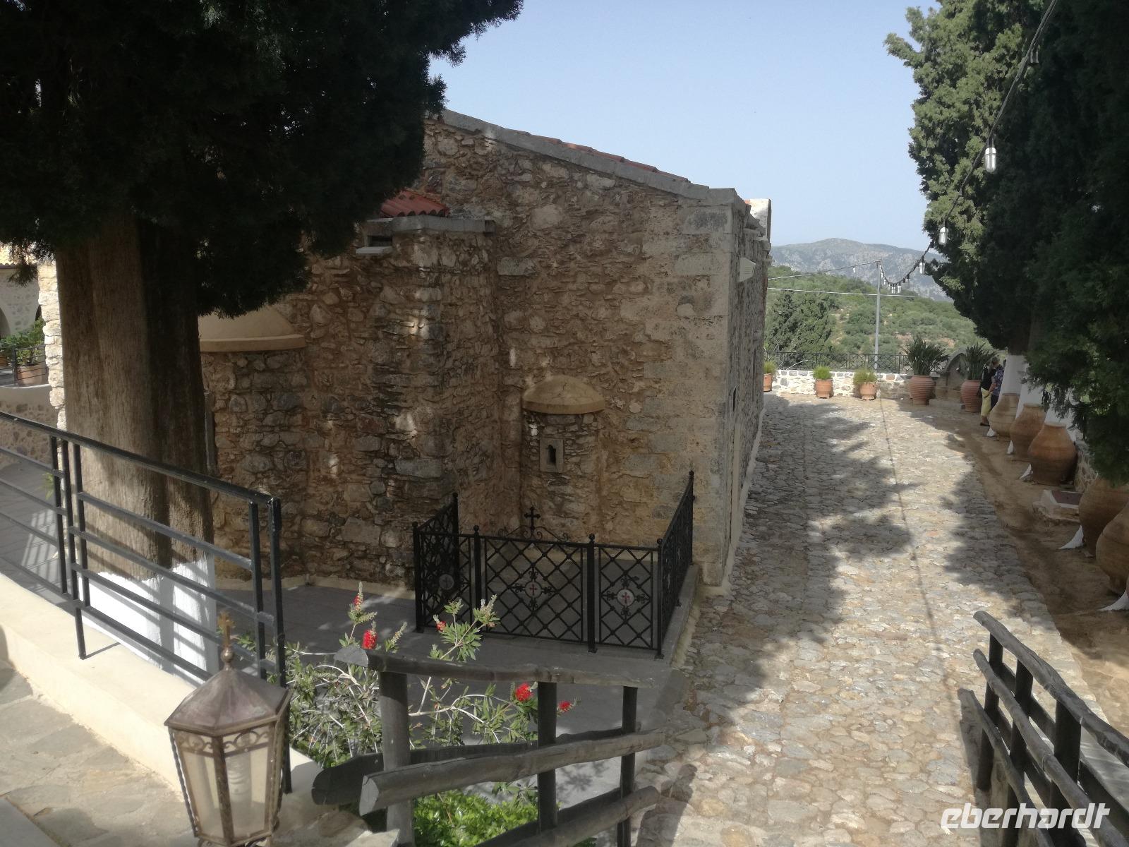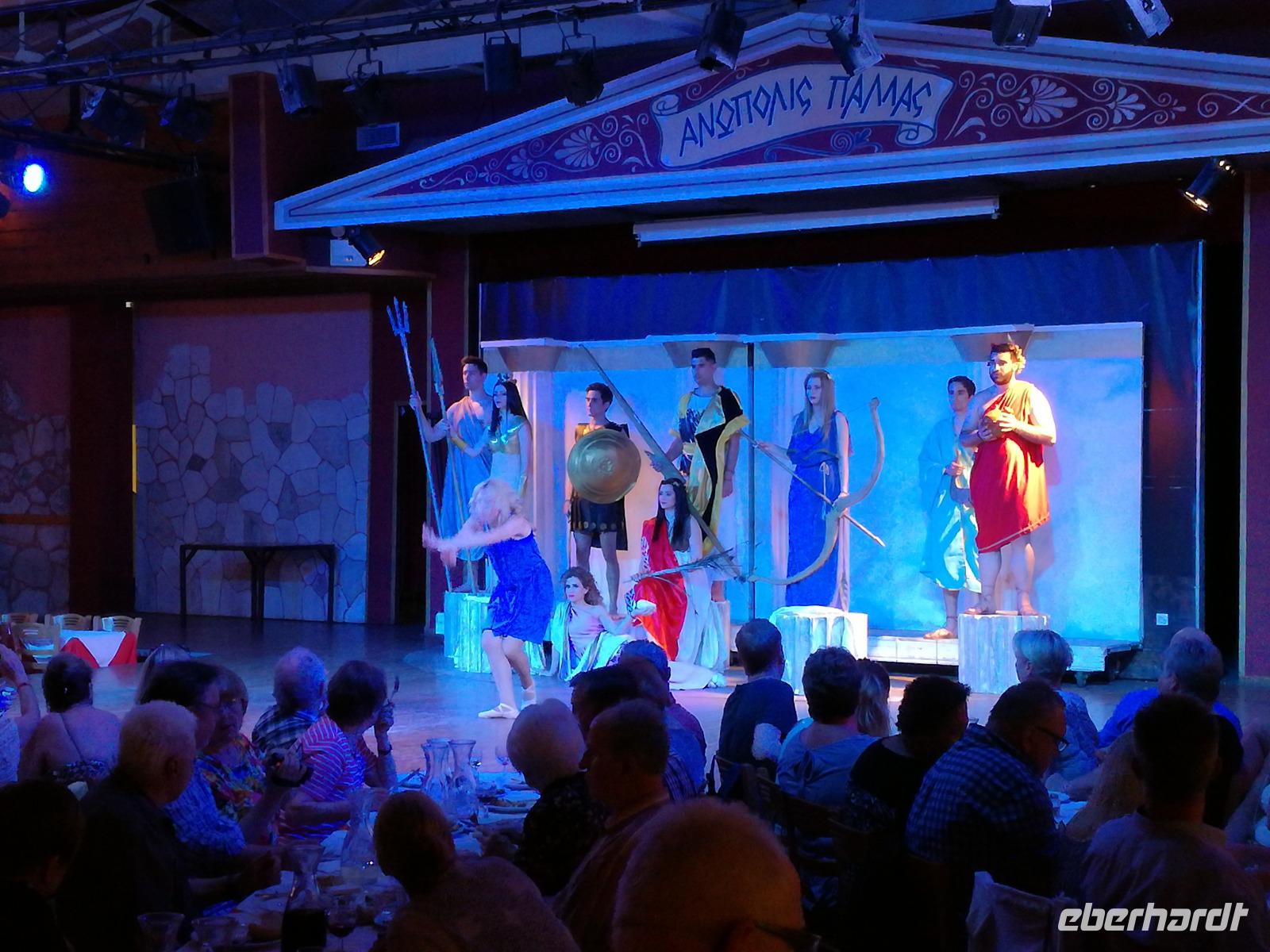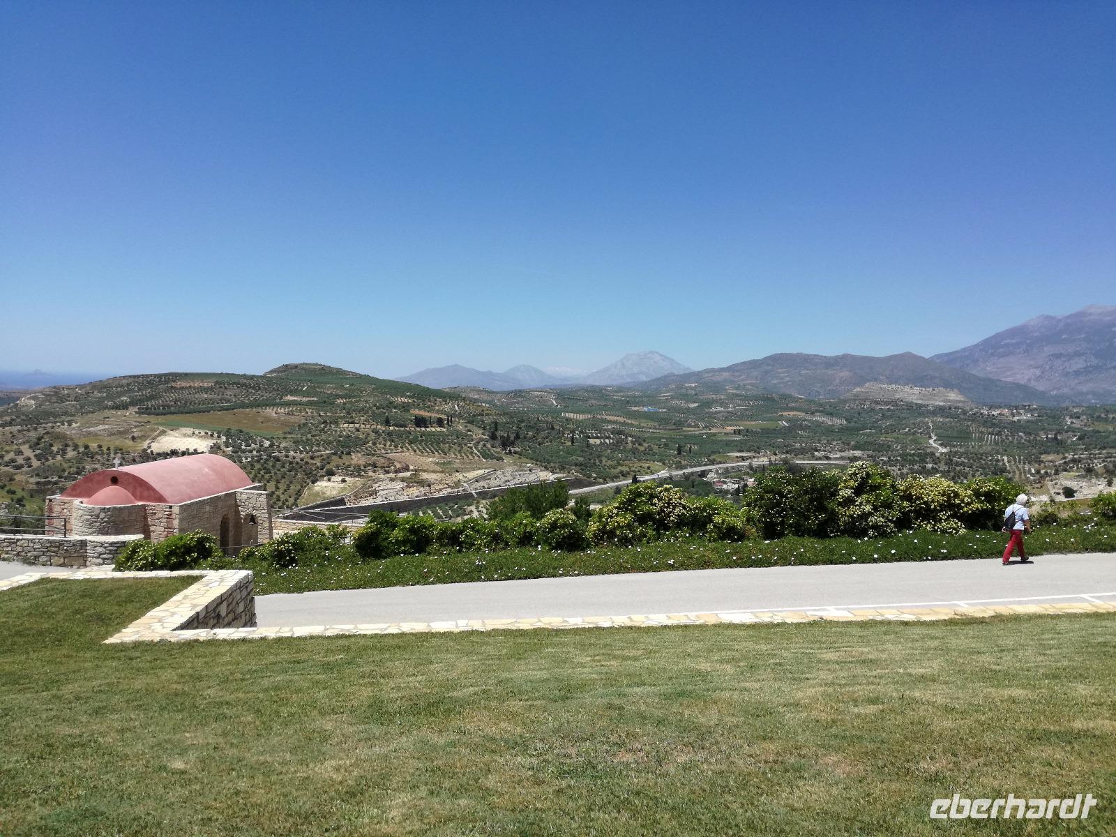 Wir sind gespannt auf den heutigen Ausflug der uns in die Lassithi-Hochebene führt. Das Kloster Panagia i Kardiotissa, das wir als erstes besuchen ist der Ikone der Gottesmutter Kardiotissa gewidmet. Laut Überlieferungen wurde die Ikone dreimal von den Türken gestohlen und wie durch ein Wunder immer wieder zum Kloster zurückgekehrt. Das dritte Mal ketteten sie die Entführer mit Ketten an eine Säule, die die Ikone aber auch mitnahm. Diese Säule können wir heute im Hof des Klosters begutachten. Rena zeigt uns in der kleinen Kapelle des Klosters, an den Wänden können wir farbige Fresken begutachten, die noch sehr gut erhalten sind. Auch die gesamte Klosteranlage ist ein wunderbares Fotomotiv, weshalb wir noch einige Minuten verweilen um dies zu nutzen. Die Weiterfahrt führt uns zu der Höhle des Zeus, auch diktäische Höhle genannt. Darf man den mythischen Geschichten Glauben schenken ist hier der Göttervater Zeus geboren. Dieser sollte von seinem Vater Kronos getötet werden, da dieser befürchtete von seinem unsterblichen Sohn vom Thron gestoßen zu werden, was dann letztendlich auch geschah. Wir begeben uns auf Spurensuche und steigen hinauf, auf 1200m Höhe. Oben angekommen geht es auch schon wieder bergab in die Untiefen der Höhle, diese ist mit Scheinwerfer ausgeleuchtet und somit können wir die spektakulären Stalaktiten und bewundern. Damit haben wir uns auch einen kühlen Orangensaft verdient, den wir uns genehmigen bevor wir wieder hinunter zum Parkplatz wandern, wo die restlichen Gäste auf uns warten. Die Mittagspause verbringen wir in einem kleinen Dorf auf der Hochebene, bevor wir weiter fahren um die älteste Plantane mit 20m Umfang zu besichtigen, diese ist ungefähr 2000 Jahre alt. Den Nachmittag können wir frei gestalten und uns bereit machen für einen Abend mit griechischer Musik und lokalem Essen. Dieser beginnt natürlich gemäß griechischer Tradition mit einem Schnaps, den typischen Raki. Wir trinken auf die Dame, die heute Geburtstag hat und wünschen ihr alles Gute. Die Abendshow überrascht uns mit jungen Tänzern in traditionellen Trachten und einer Showeinlage dieser, die die griechischen Götterfiguren verkörpern. Wir werden zum Tanz aufgefordert und spüren das kretische Lebensgefühl in uns. Wir tanzen und trinken bis in die Nacht hinein, bis die Veranstaltung endet.