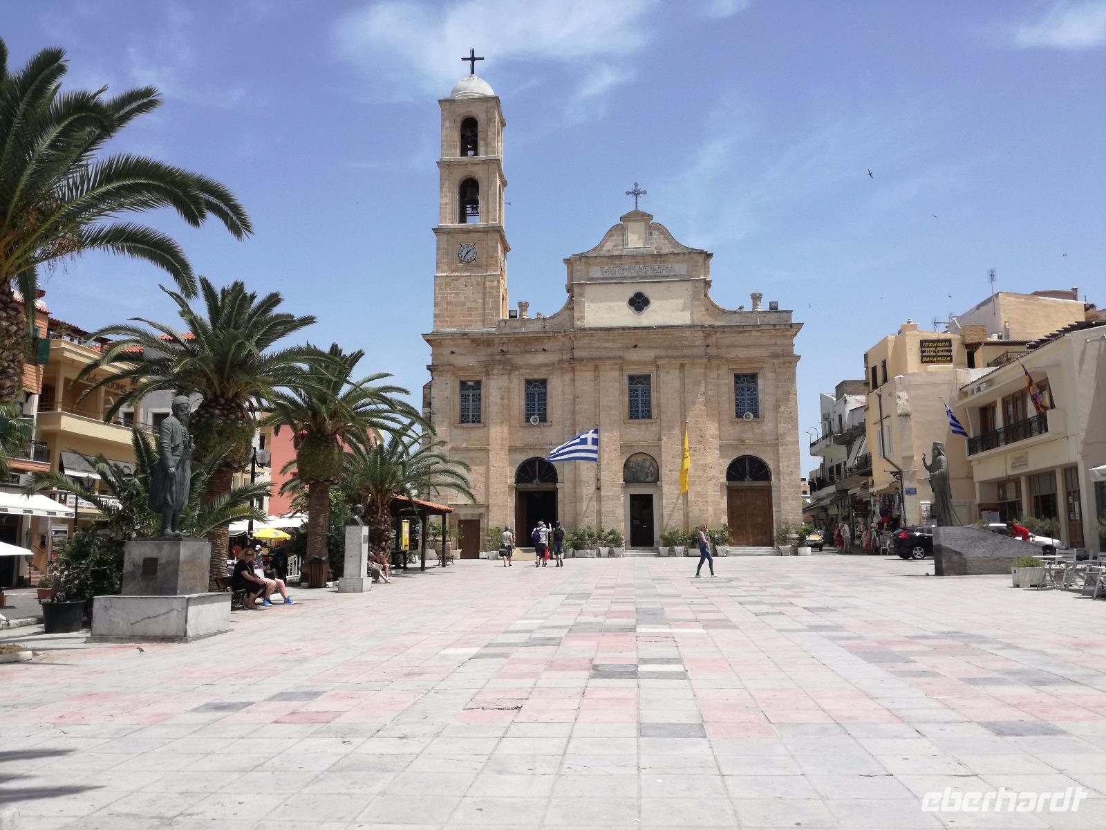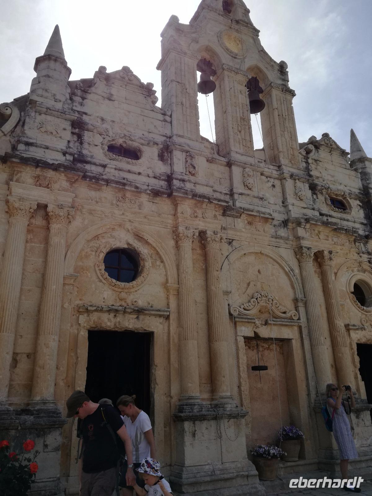 Bei strahlendem Sonnenschein begeben wir uns in den westlichen Teil von Kreta, zu dem Kloster Arkadi. Doch nicht nur bei uns ist heute Ausflugstag, sondern auch bei den Schulen von Kreta. Dementsprechend ist es ziemlich belebt, aber Rena lässt sich davon nicht beirren. Und dieses Kloster ist auch weltbekannt, da die dort lebenden Kreter hier im November 1866 einen Massenselbstmord begannen um nicht in die Gefangenschaft der Türken zu geraten. Dabei rissen sie viele der Besatzer mit sich in den Tod. Das Gebäude selbst wurde vier Jahre nach der Explosion restauriert. Ein kleines Klostermuseum dient zur Veranschaulichung der Geschichte. Rena gibt uns eine Führung durch die prachtvolle Kirche des Klosters, bevor wir weiter nach Chania fahren. In Chania haben viele das Gefühl in Italien zu sein und nicht mehr in Griechenland. Wir durchqueren die lebhafte Markthalle, die Ledergasse und gelangen zum Hafen der Stadt mit seinem kleinen Leuchtturm. Der perfekte Ort um seine Mittagspause zu verbringen, einige gehen in der Ledergasse einkaufen, andere genießen die Atmosphäre an der Promenade. Die letzte Besichtigung des Tages führt uns nach Rethymnon, die drittgrößte Stadt der Insel. Ca. 30000 Einwohner sind hier beherbergt, auch hier sieht man die venezianischen und türkischen Einflüsse welche von den Besetzer der Stadt stammen. Auch haben die Türken damals alle Kirchen zu Moscheen umgebaut, ein gutes Beispiel dafür ist die "Neratzes"-Moschee. Viele kleine Läden und Botiquen laden zum Einkaufen ein, aber wir betreten ein altes Haus in dem uns ein altes Ehepaar die Kunst der Baklava - Herstellung näher bringt. Wir sind beeindruckt von so viel Fingerfertigkeit. Wir halten uns nur noch kurz in der Stadt auf, da es sehr heiß ist und fahren zurück zum Hotel, wo der Swimmingpool etwas Abkühlung verspricht.