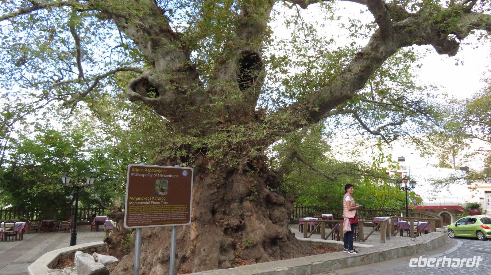 Im Dorf Krasi bestaunen wir die älteste Platane der Insel. Sie soll an die 2000 Jahre alt sein.