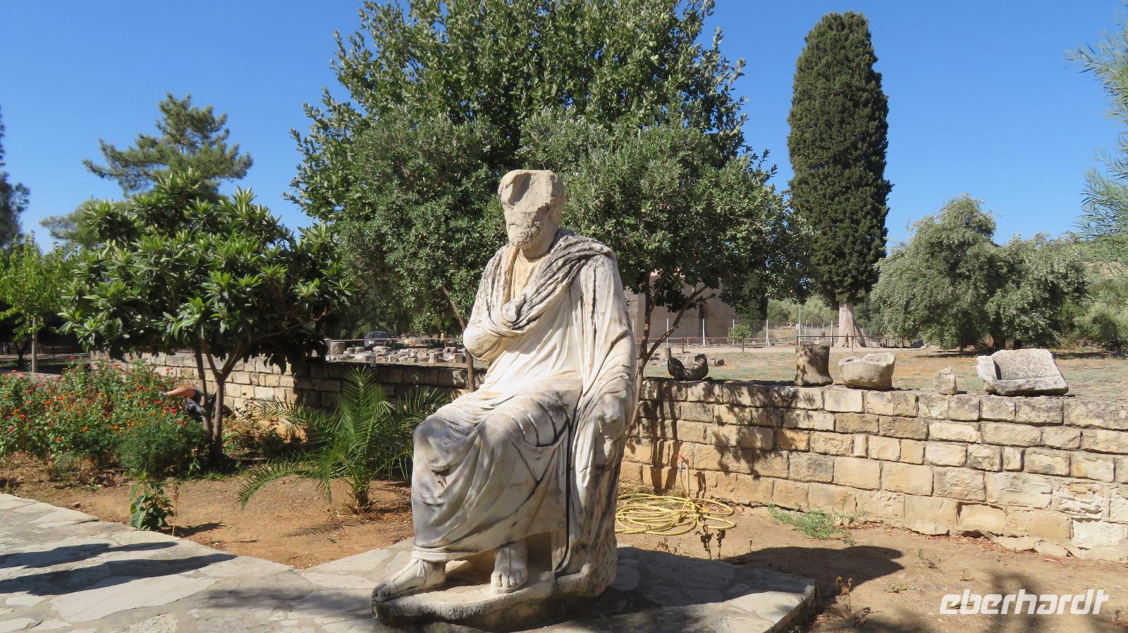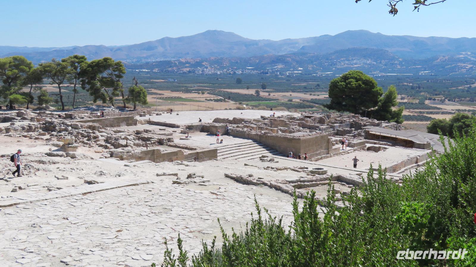 Auch die Ausgrabung der minoischen Palastanlage von Festos liegt an unserem Weg. Wir haben ja im Museum in Heraklion schon den berühmten "Diskos von Festos" bewundert, heute erklärt uns Maria die gesamte Anlage von einem schattigen Fleck aus. Da es so heiß ist, möchten die Gäste dann doch nicht noch in der Anlage umher wandeln.