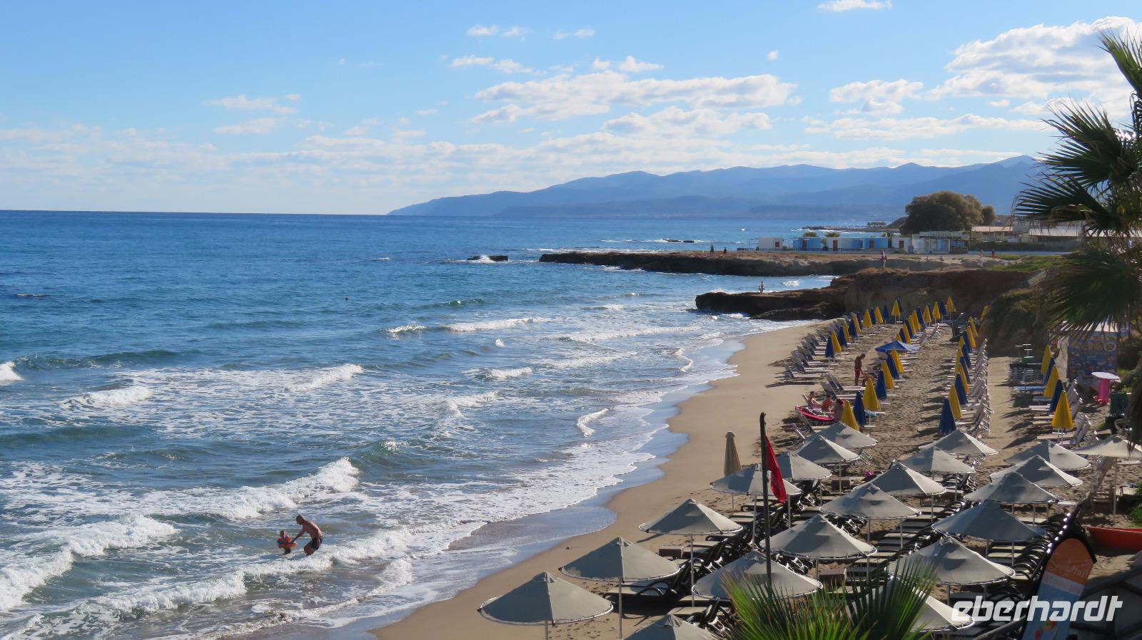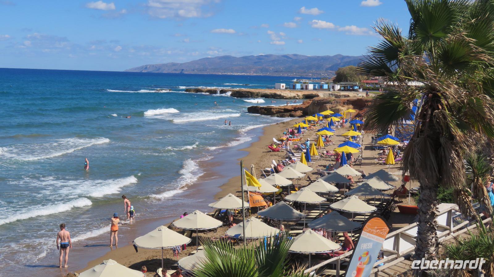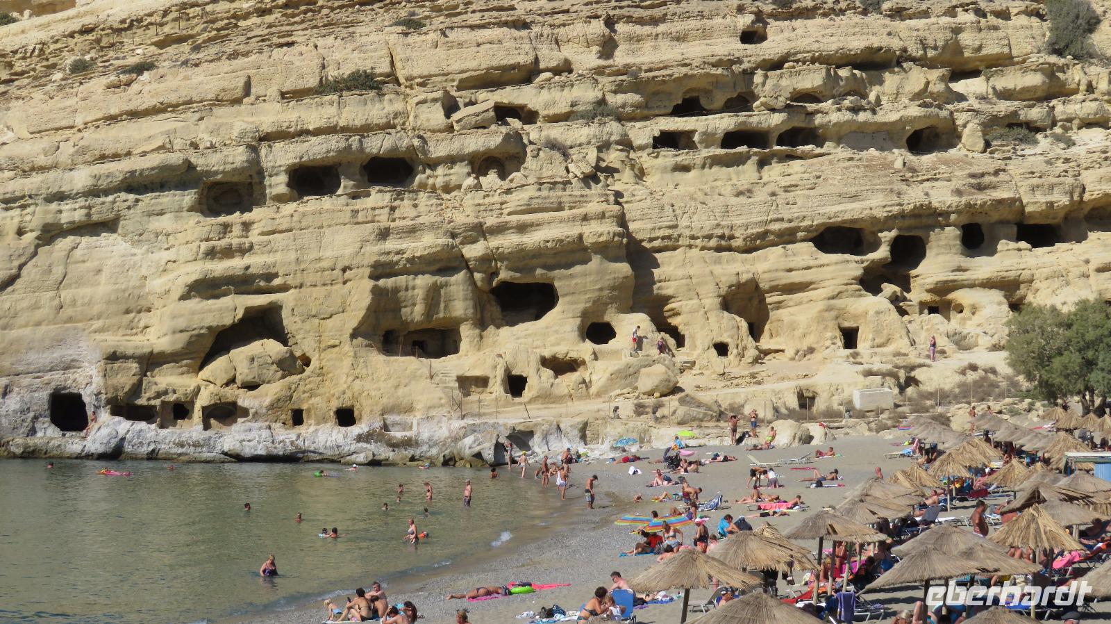 Es lockt ein anderes "Nass"! Anschließend gibt es Badegelegenheit im kleinen Ort Matala, an der Südküste von Kreta, am Lybischen Meer. Der Ort ist bekannt für die Höhlen direkt am Strand. Nach den früheren Höhlenbewohnern haben sich hier in den 60er und 70er Jahren die Hippies niedergelassen.