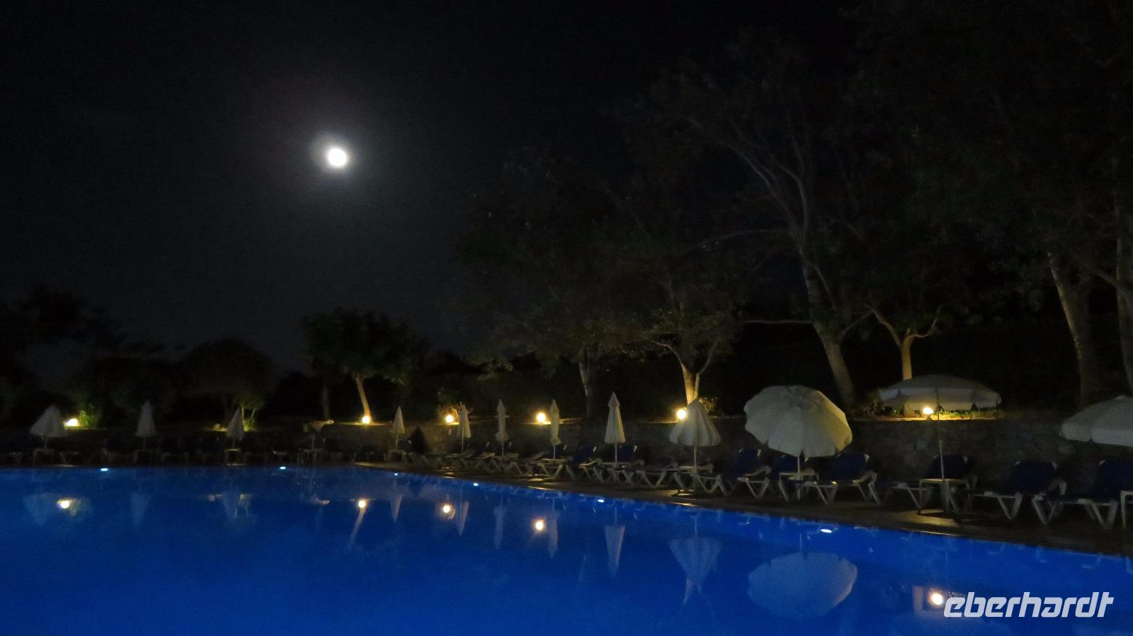 Der Bus bringt uns zurück zum Hotel und nach dem vorzüglichen Abendessen treffen sich noch einige Gäste an der Poolbar, um griechischen Tanzvorführungen zuzuschauen oder sogar selbst das Tanzbein zu schwingen.