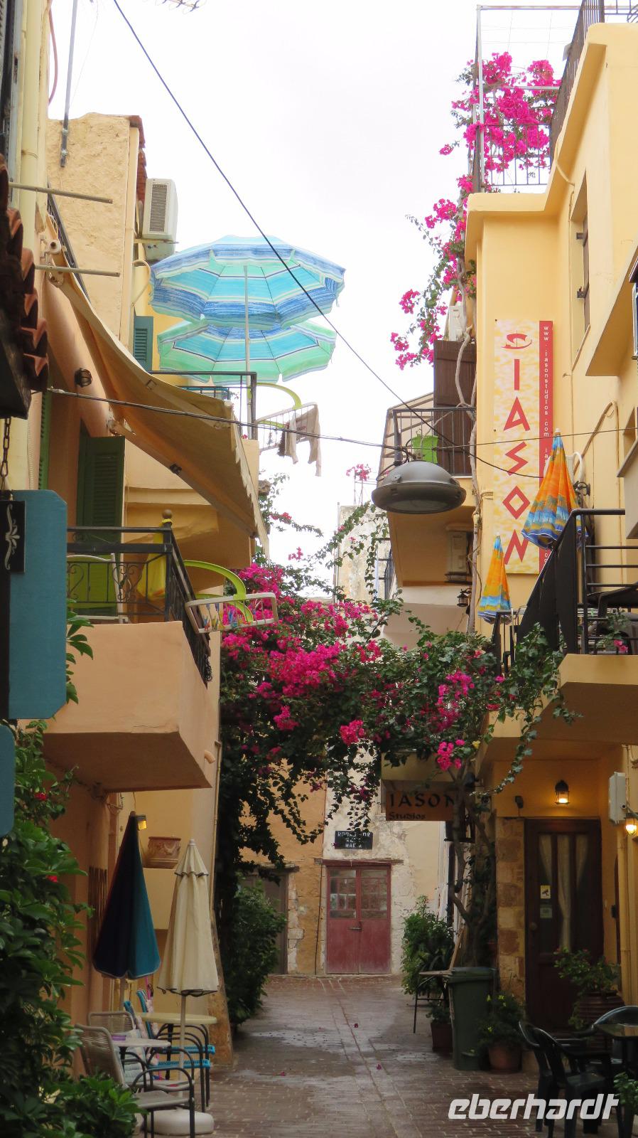 Etwas ruhiger geht es dann in Rethymnon zu! Wir bummeln mit Maria noch ein Stündchen durch die Gassen. Ein Restaurantbesitzer lädt uns ein, sein herrlich restauriertes Lokal zu besichtigen, ehe es wieder zurück nach Chersonnisos geht.