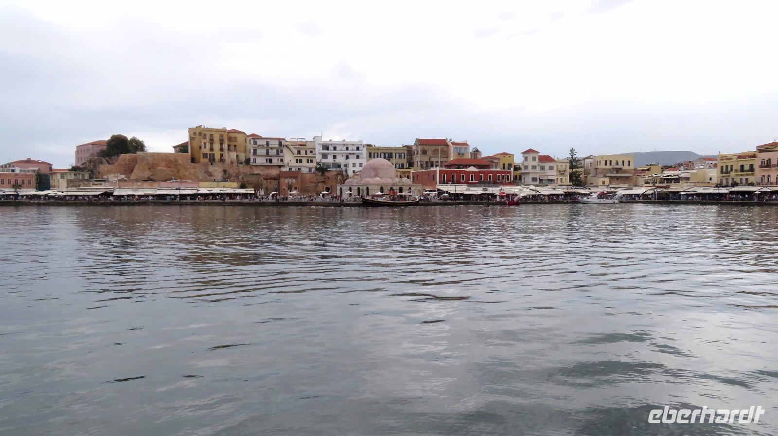Gegen Mittag erreichen wir Chania, die zweitgrößte Stadt der Insel. Maria zeigt uns in der Markthalle noch einige landestypische Köstlichkeiten. Dann haben wir wieder Gelegenheit, die Mittagspause nach unseren Wünschen zu verbringen. Hier sind heute unheimlich viele Kreuzfahrer unterwegs, und drängen durch die Gassen. Nix mit Gemütlichkeit!