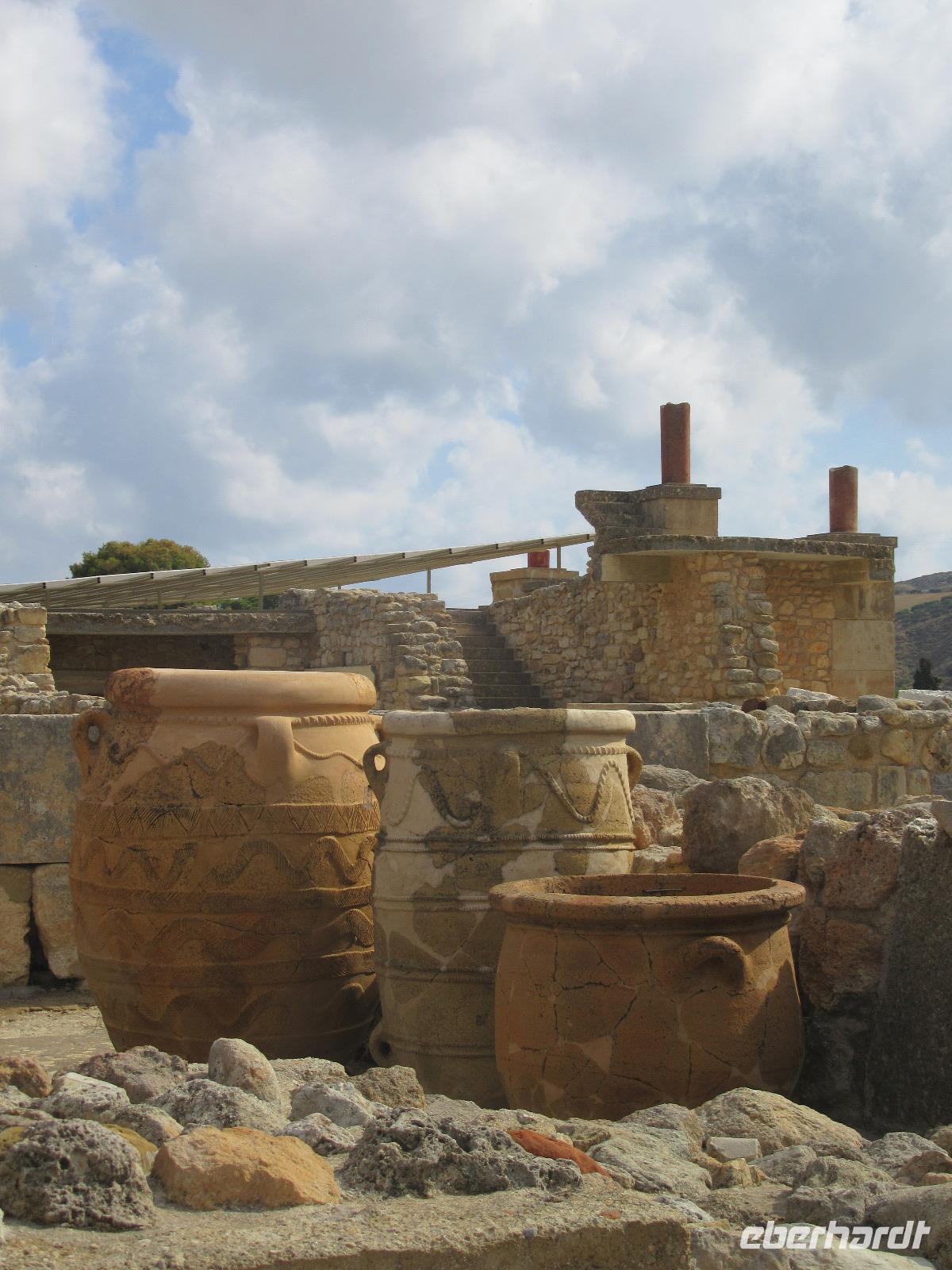 Bei Sonnenschein genossen wir das reichhaltige Frühstücks-Buffet im Hotel und starteten den zweiten Tag unserer Weltreise. Palastruinen - mit dem Besuch der Ausgrabungsstätte von Knossos, besichtigten wir die wichtigste archäologische Stätte der Insel. Bereits auf dem Weg erklärte uns Rena wissenswertes zu der Minoischen Kultur. Während unserer Führung bekamen wir einen bildlichen Eindruck zum Leben in dem über 3.000 Jahre alten Palast des Königs Minos, dem Sohn des Zeus. Beeindruckend sind die Zeugnisse der Zeit...auch wenn uns ein kleiner Schauer überrascht hat, gönnen wir der Insel das so notwendige Wasser. Anschließend fuhren wir in Richtung Ida-Gebirge! In Tharpsano besichtigten wir eine kleine Töpferei und staunten über die Fingerfertigkeit des Töpfers. Zum Andenken noch ein kleines Souvenir gekauft und einen Raki probiert und schon ging es weiter nach Heraklion. Auf dem Weg zum Archäologischen Museum sahen wir den venezianischen Hafen und auch die Stadtmauer. Im Museum weihte uns Rena noch weiter in die Minoische Kultur ein und wir bestaunten die Überlieferungen aus jener Zeit. Anschließend bummelten wir bis zum Löwenbrunnen und zur Titos Kirche und nun hieß es endlich Erholung und Pause. Die freie Zeit genossen wir bei Kaffee oder Eis oder beim Bummeln durch die Gassen ... Herrlich das Leben und Treiben hier in der Stadt. Den Abend ließen wir bei einem gemütlichen Abendessen ausklingen und wie wird es wohl mit unserer Weltreise weitergehen...???