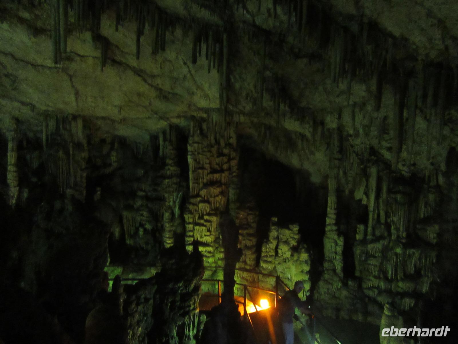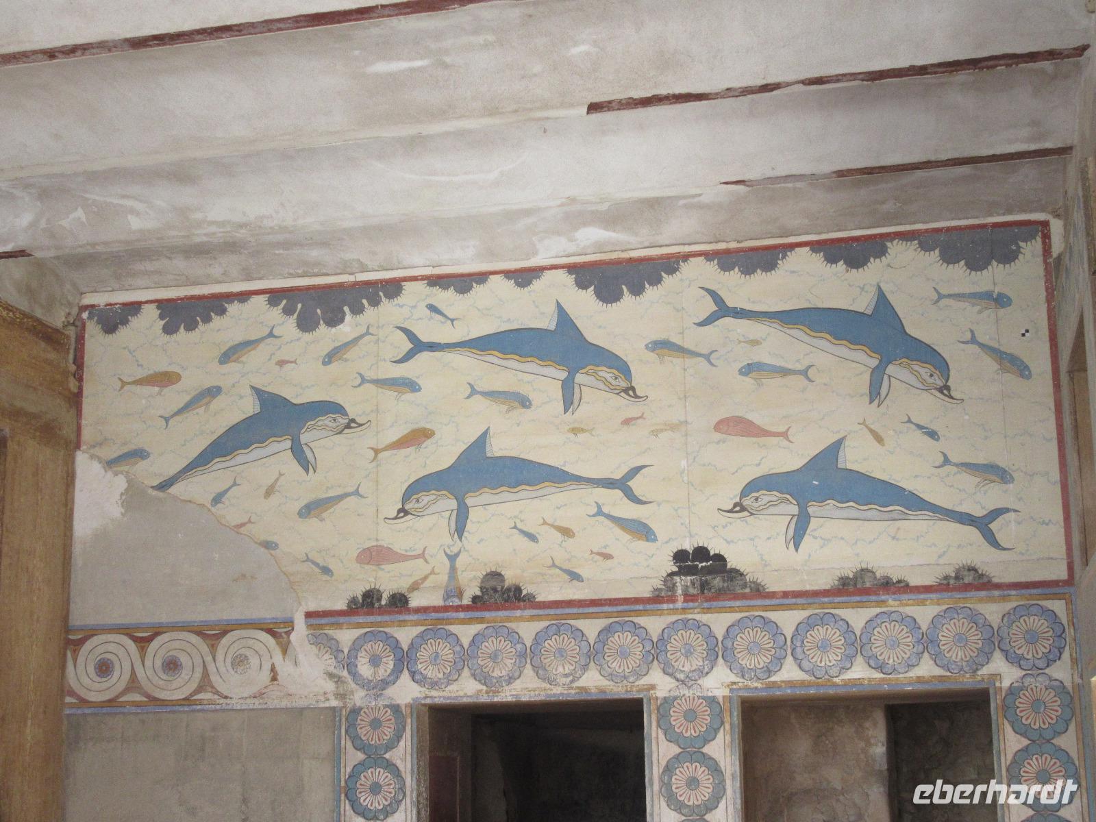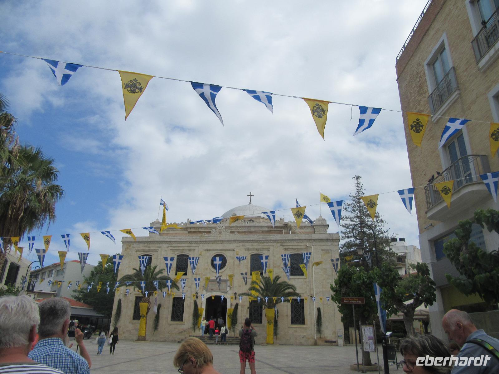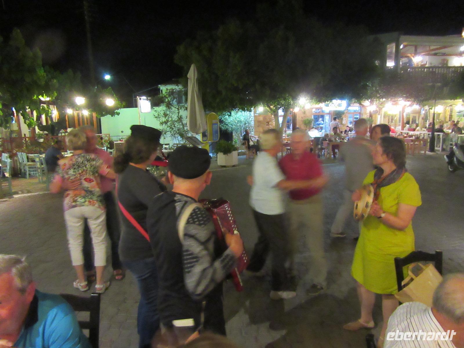 Heute erkundeten wir das unbekannte Kreta und unser erster Halt sah die Besichtigung des Marienklosters Panagidi Kardiotissa in Kera vor. Besonders sehenswert sind die bemerkenswerten Fresken aus dem 14. Jh. in der Klosterkirche. Einige Nonnen waren zum Gottesdienst gekommen und wir mussten ein wenig warten, bis dieser abgeschlossen war. Nach einem kurzen Aufenthalt fuhren wir weiter durch die Lassithi Hochebene, eine Karsthöhe auf 830 Metern Höhe und welche bekannt für seine Windmühlen ist. Einige, auch noch bespannte Windmühlen, haben wir während unserer Rundfahrt gesehen. Hier wird seit der Antike intensiv Landwirtschaft betrieben und wir konnten Bauern auf den Feldern beobachten. Kurze Zeit später erreichten wir Phsychro und somit eine weitere Kultstätte der Minoer. Bereits auf der Fahrt erzählte uns Rena die Geschichte um die Geburt von Zeus und nun wollten wir Sie sehen, die Geburtsstätte. Zu Fuß erklommen wir bei strahlendem Sonnenschein und 30°C den Eingang der Diktäische Höhle. Beeindruckend wirkten die Stalaktiden und Stalakmiten auf uns und ebenfalls der kleine See, wo Zeus getauft worden sein soll. Mit unserem Bus fuhren weiter in eine kleine Ortschaft Tzermiado , wo wir eine Mittagspause machten um uns mit typisch kretischer Küche zu stärken. Hier bot sich der Besuch des kleinen Friedhofes an. Das Bestattungswesen auf Kreta ist speziell aber auch sehr interessant auch den Blick in die kleine Kapelle mit der heiligen Maria blieb uns nicht verwehrt. Gestärkt ging es weiter zu unserem letzten Halt des heutigen Tages - das Dorf Krasi. Ein Bergdorf auf 600 Metern Höhe mit einer ca. 1800 - 2000 Jahre alten Platane. Ihr Stammumfang beträgt ca. 20 Meter und sie ist die älteste Platane Kretas. Zum frühen Nachmittag erreichten wir unser Hotel und es blieb Zeit für eigene Erkundungen oder auch für ein Bad im kühlen Nass. Doch der Tag ist noch nicht zu Ende. 19.30 Uhr trafen wir uns für ein typisch griechisches Abendessen in einer Taverne. Wir probierten die griechische Küche und Weine, genossen das Flair, tanzten und ließen den Tag typisch griechisch ausklingen.
