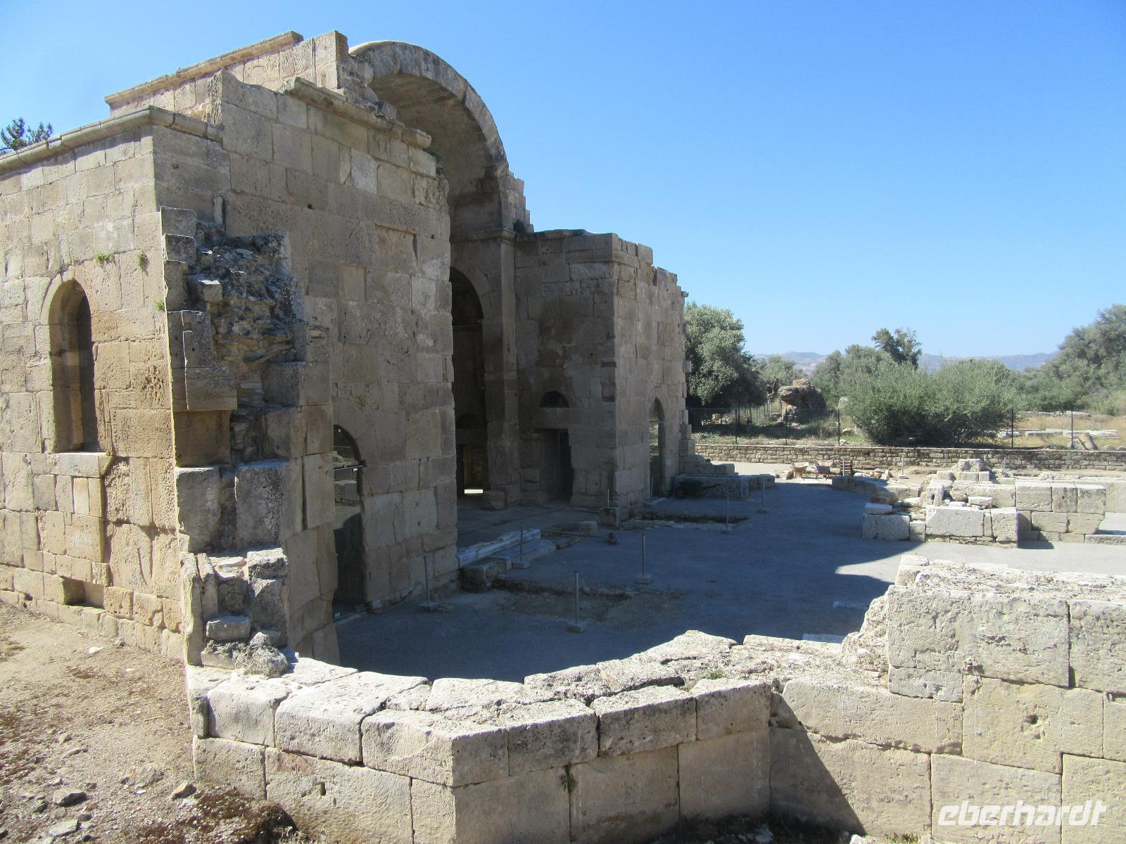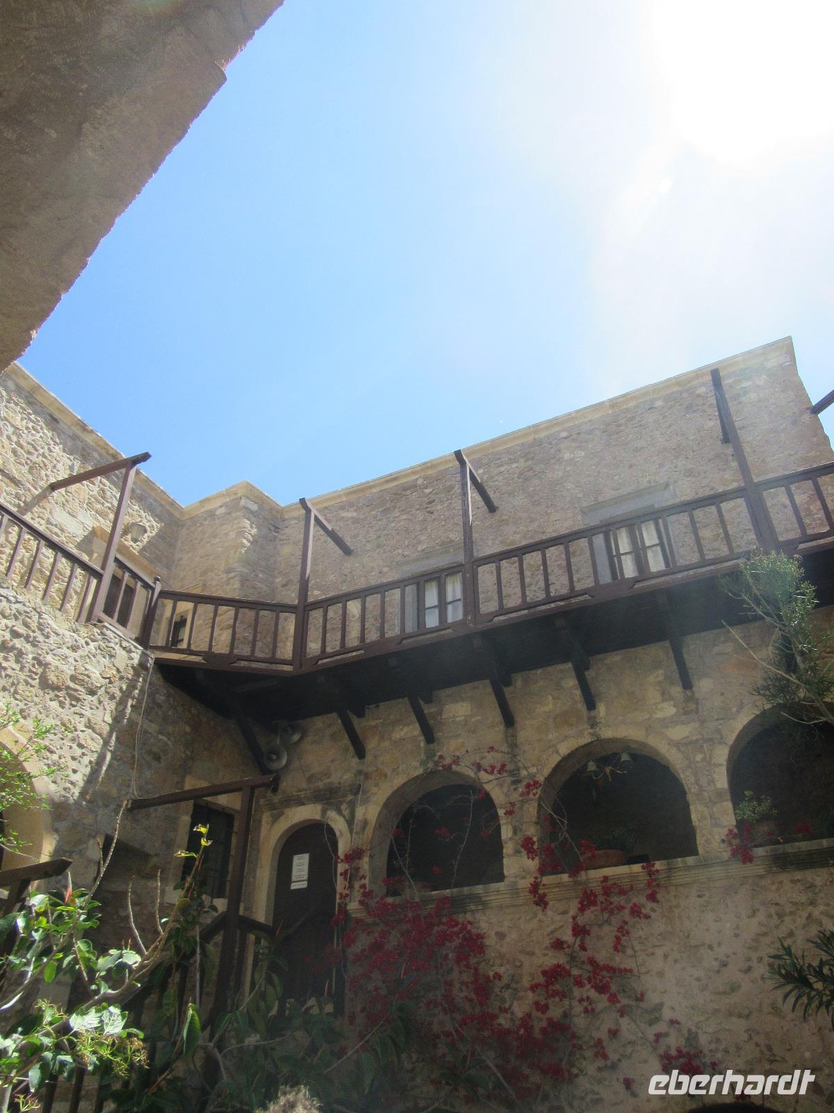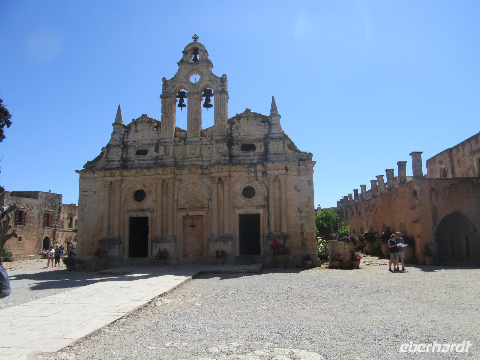Auf in den Osten! Bereits 8.30 Uhr holte uns Rena und unser Buschauffeur am Hotel ab und wir fuhren durch Malia. Ein junger Ort, der gerade bei Engländern sehr beliebt ist. Wir verließen den Bezirk Heraklion und fuhren in den Bezirk Lassithi. Auf unserer Fahrt stoppten wir an der Ausgrabungsstätte von Gournia. In der minoischen Zeit existierte hier eine große Siedlung. Wir passierten auf unserem Weg zum Kloster Toplou die schmalste Stelle Kretas und warfen einen Blick auf die unendliche Küstenlandschaft Kretas. Nach einer Fahrzeit von knapp zwei Stunden erreichten wir das Kloster, welches berühmt für seine wertvollen Ikonen ist. Kunstwerke der orthodox griechischen Kirche konnten wir im Inneren bestaunen. Unser heutiges Ziel, der Palmenstrand von Vai lag unmittelbar vor uns und wir waren beeindruckt...es war, wie ein Abstecher nach Afrika oder die Karibik. Die Dattelpalmen von Vai sind einzigartig und es gibt nur noch wenige Strände und Buchten auf Kreta, wo diese Palmenart zu finden ist. Die Sonne schien und das Mittelmeer schimmert Türkis...ideales Badewetter??? Ja, wir nutzten die Gelegenheit und gingen kurzerhand im Mittelmeer baden...eine herrliche Erfrischung. Wir genossen die Ruhe des heutigen Tages und den wunderbaren Flair des Palmenstrandes bei einem Kaffee bevor es Abschied nehmen hieß. Für die Rückfahrt statteten wir uns mit Bananen aus! Lecker, diese köstliche Frucht! Nach knapp zwei Stunden Fahrt durch die kurvenreiche Region erreichten wir unser Hotel und nutzten die Gelegenheit für Spaziergänge oder für ein Bad im Pool. Den Abend ließen wir gemütlich ausklingen...Das war Etappe zwei unserer Weltreise - karibisches Flair und fabelhafte Natur!