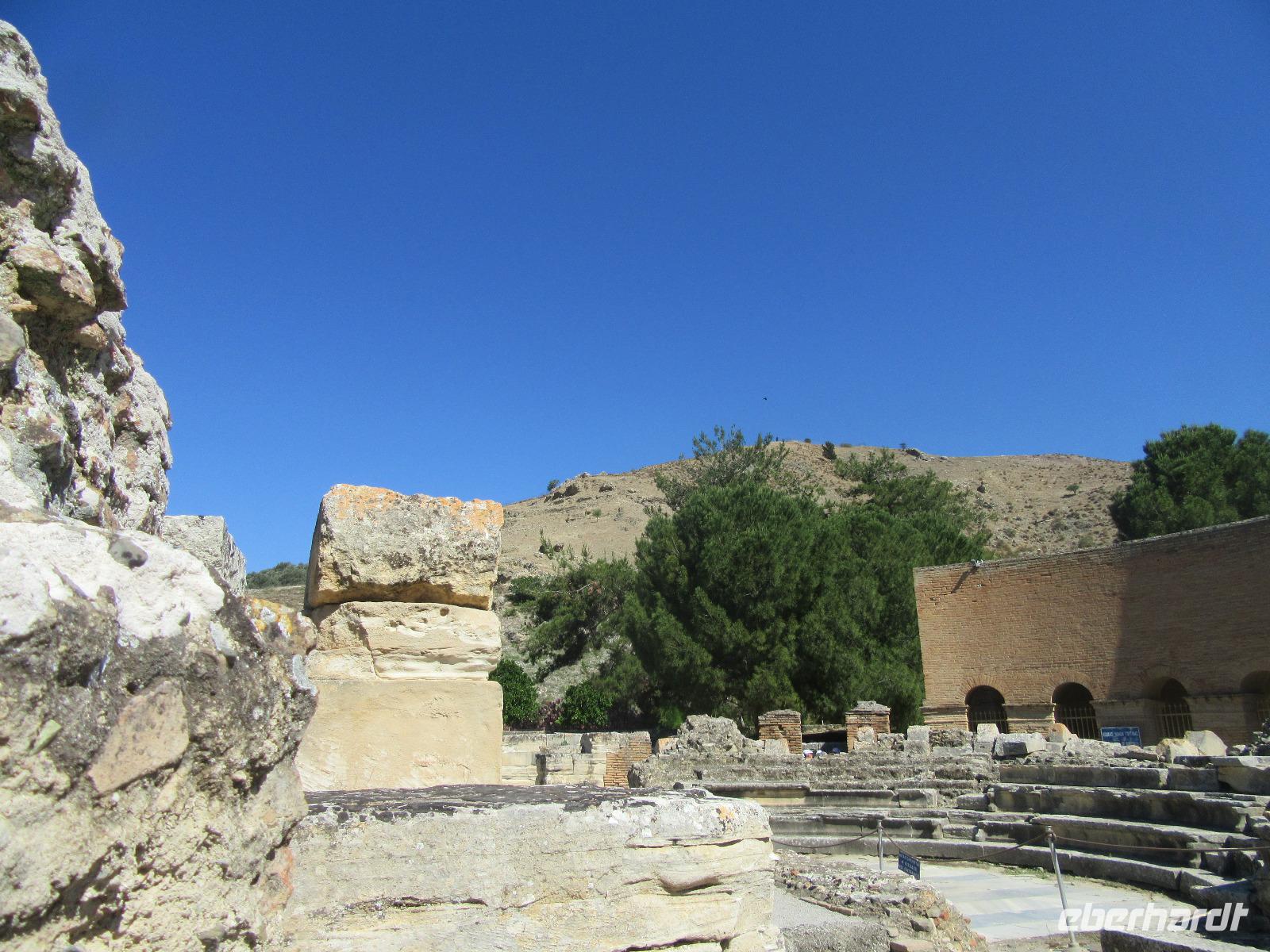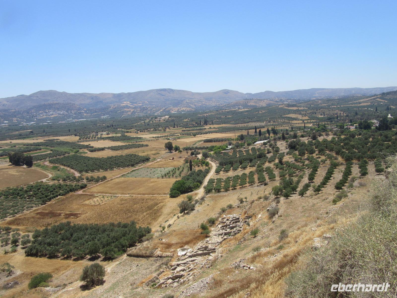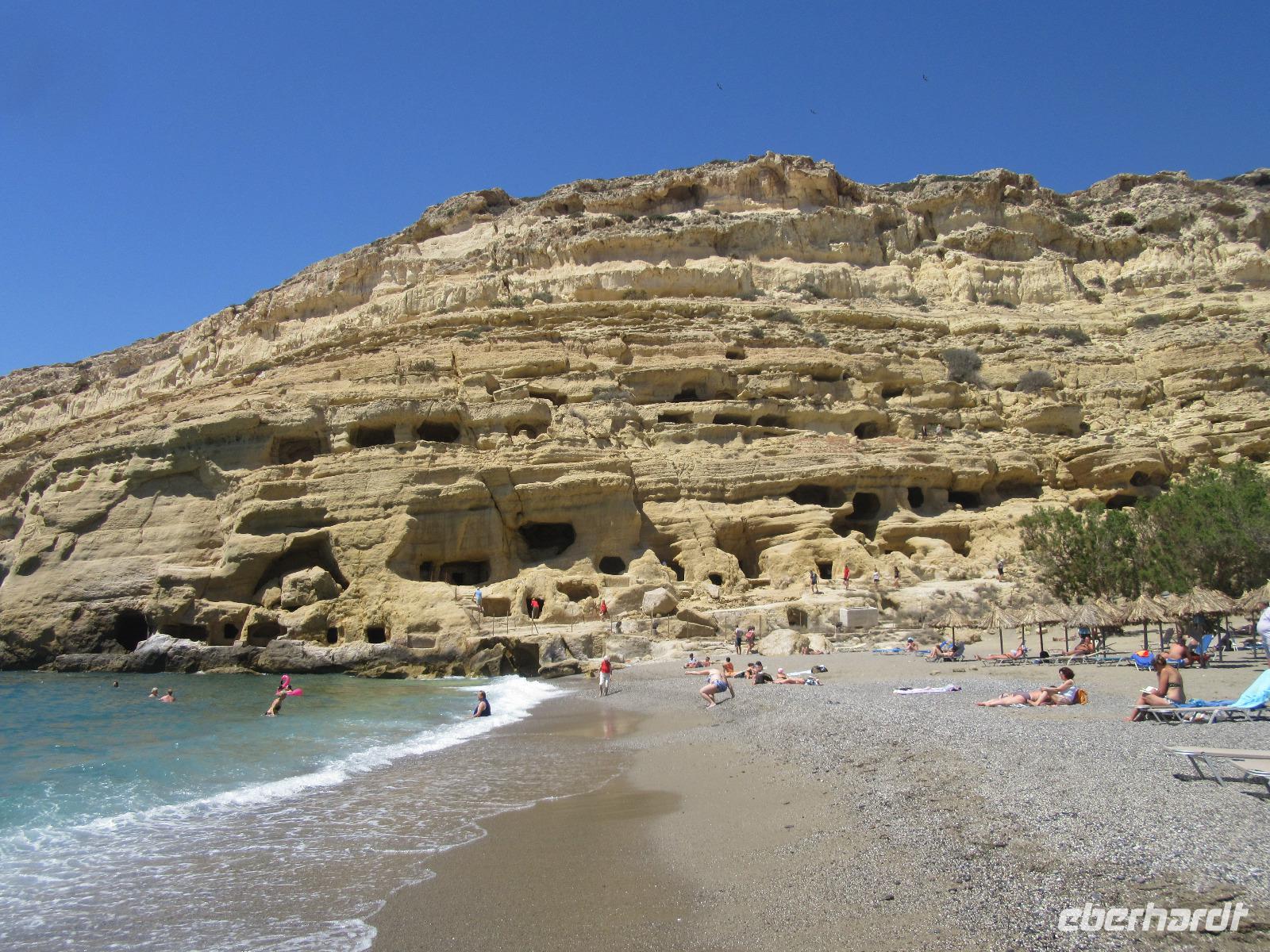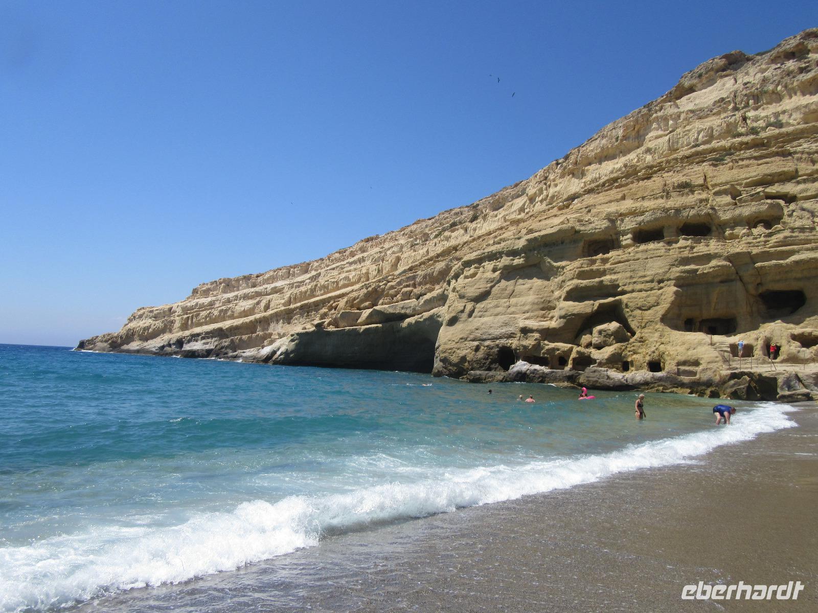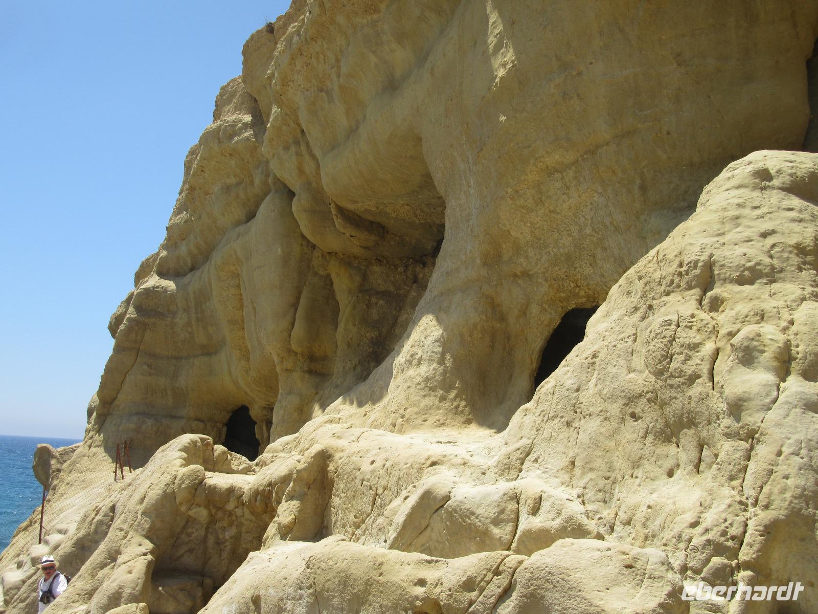 Heute werden nicht wir von Rena abgeholt, nein! Wir holen Rena ab. Auf Teil 4 unserer kleinen Weltreise passierten wir den schlafenden Zeus und die Messara-Ebene, welche 40 Kilometer lang und zwischen 8-12 Kilometer breit ist. Wir erreichten die Ausgrabungsstätte Gortys. Gortys war die größte Stadt der Antike. Rena erläutert uns die Geschichte um Gortys und den ältesten Gesetzescodex wieder sehr anschaulich und führt uns zum Odeion. Wir bestaunen den aus ca. 17.000 Zeichen langen Codex, in dem es u.a. um Erbrecht, Familienrecht und Strafrecht geht...diese Inschriften stammen ca. aus dem 5. Jh. v. Chr. Im Anschluss erfahren wir im familiengeführten Weingut Zacharioudaki viel über die Weinherstellung und deren Lagerung...bei so vielen Informationen darf die Kostprobe nicht fehlen. Wir genießen bei kleinen Snacks und Käse drei Weine des Gutes und starten freudig unsere Weiterreise zur minoischen Palastanlage von Festos. Rena führt uns voller Begeisterung über die Ruinen, welche wundervoll auf einem Höhenrücken mit Blick auf die Messara-Ebene liegen. Mit fabelhaften Eindrücken fuhren wir weiter in die Stadt der Hippies - Matala. Hier soll Zeus mit der entführten phönizischen Prinzessin Europa an Land gegangen sein...Wir besichtigten auf eigene Faust die Hippie-Höhlen und diesen malerischen, verrückten aber unheimlich liebevollen Ort und genossen Flowerpower pur auf Kreta. Und schon wieder neigt sich ein Tag dem Ende...