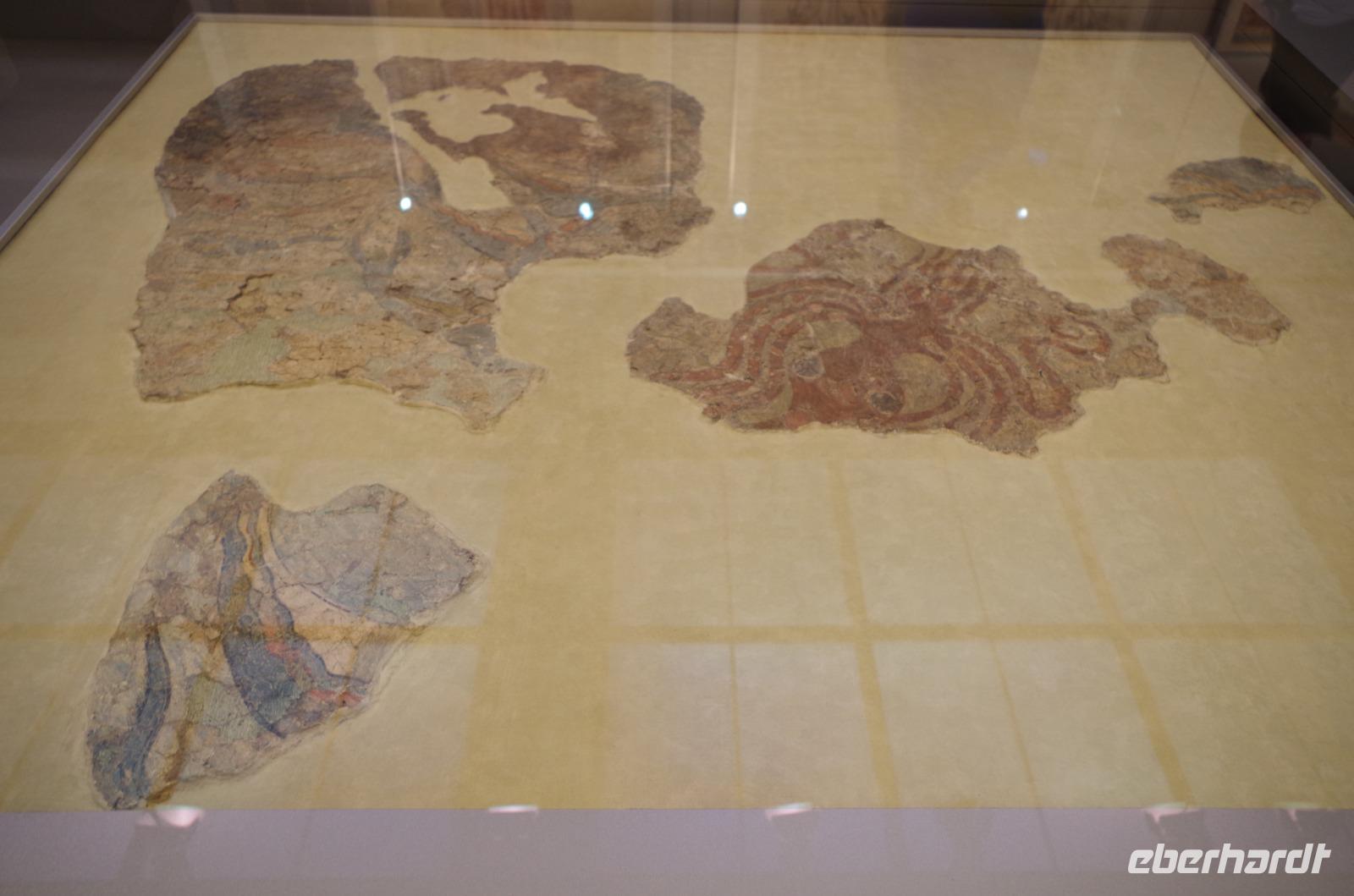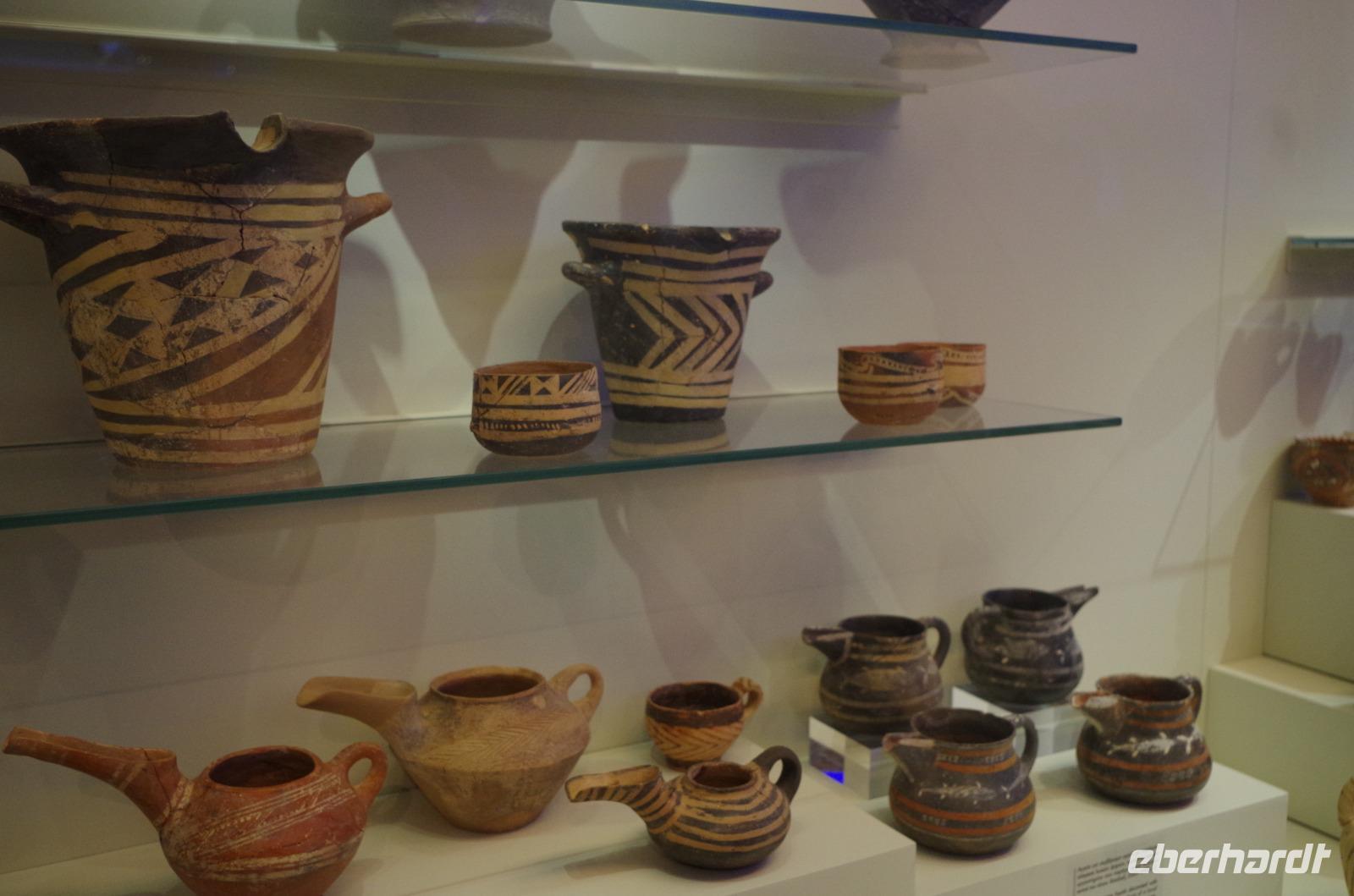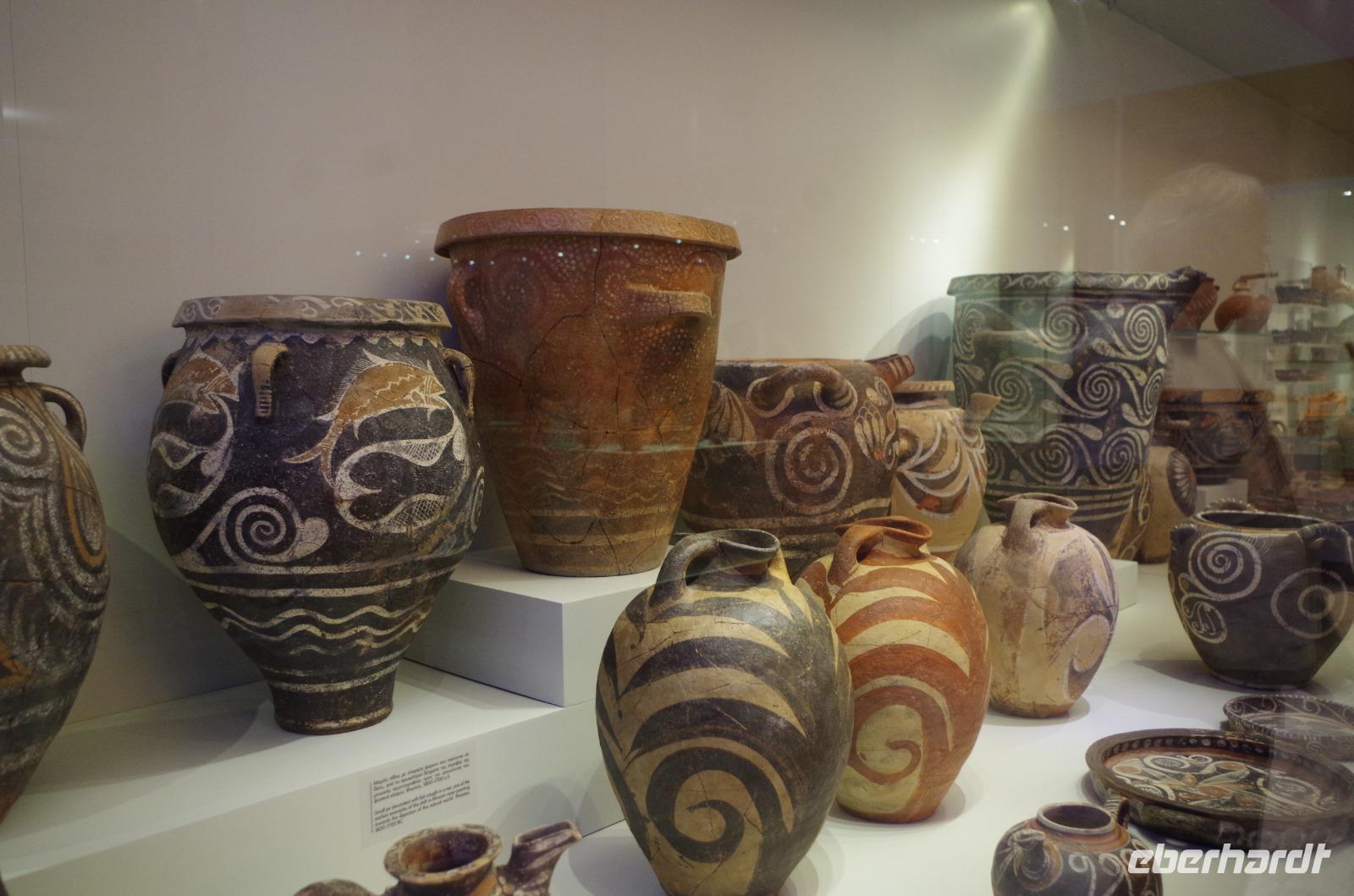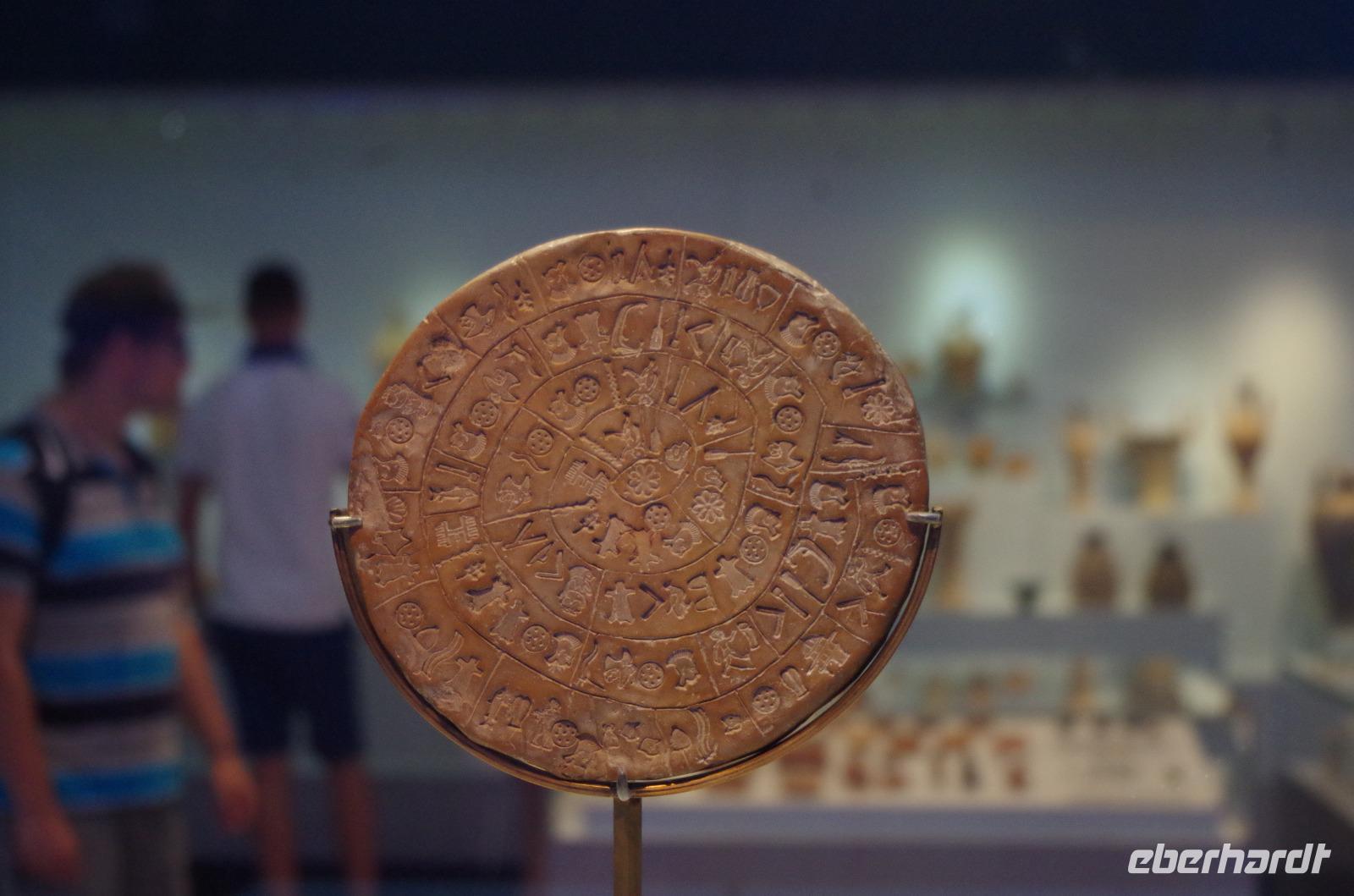 Weiter ging es dann in die größte Stadt Kretas, Heraklion. Am Hafen bestaunten wir zunächst das wunderbar blau glitzernde Meer, von dort aus gingen wir etwas bergauf in Richtung des Stadtzentrums, wo uns Rena etwas umher führte. Nach etwas Zeit zur eigenständigen Erkundung der Stadt besuchten wir noch das archäologische Museum, dort erhielten wir einen sehr interessanten Rundgang von Rena durch den Teil der minoischen Kultur des Museums. Wir sahen zahlreiche, unglaublich gut erhaltene, jahrtausendalte Ausstellungsstücke. Einige wurden aus unzähligen Kleinteilen wieder zusammen gebaut, darunter beispielsweise die sogenannte „Eierschalen -Keramik", welche aus unglaublich dünnem Ton besteht. Weiterhin sahen wir im Museum auch viele Funde aus dem Palast von Knossos oder auch den berühmten Diskos von Phaistos.