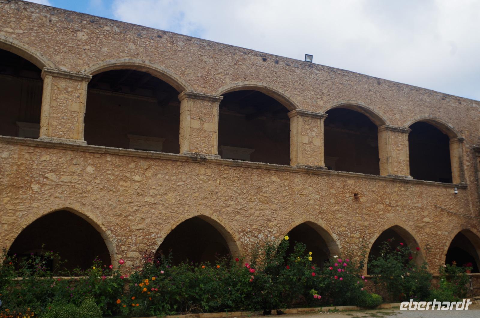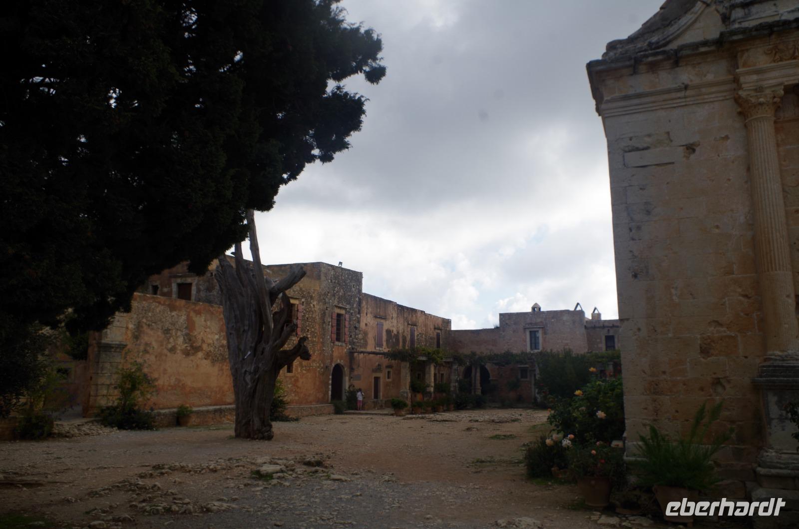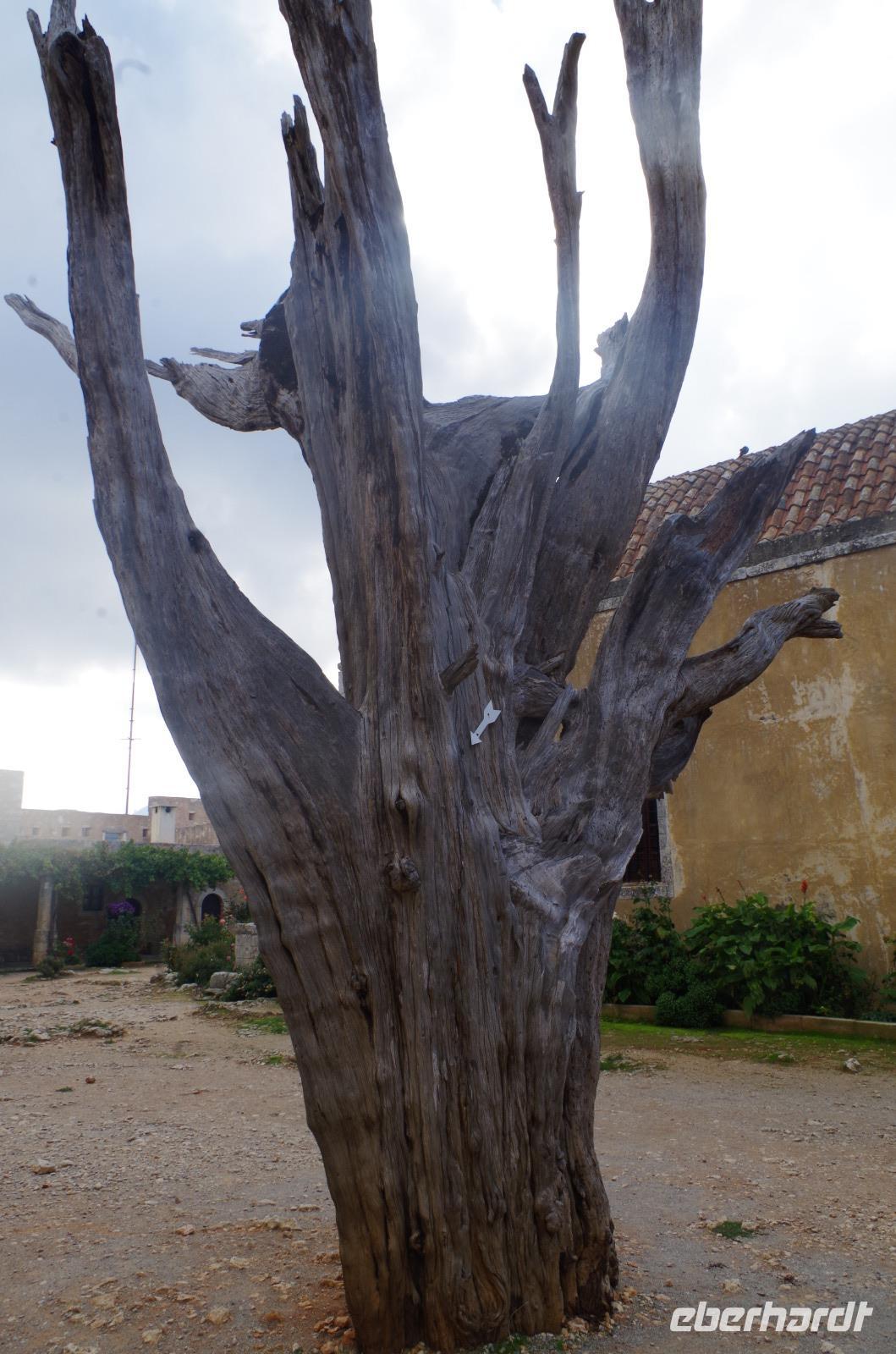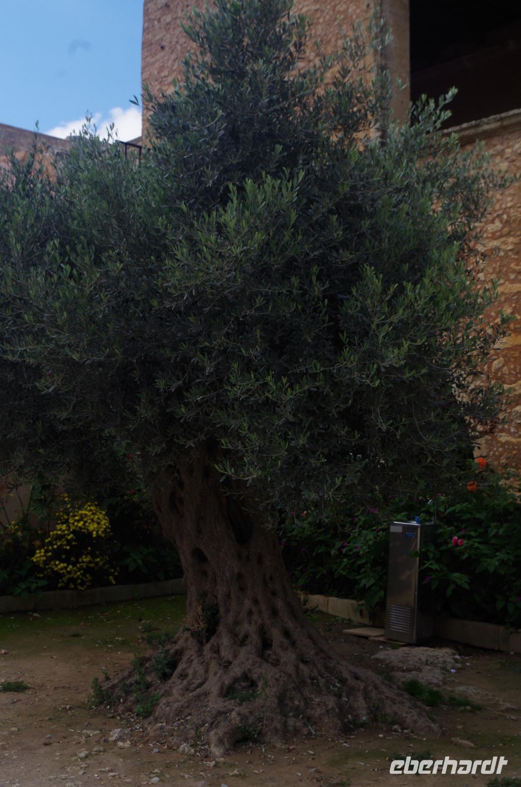 Heute hatten wir noch einmal einen langen Tag vor uns, die Fahrt ging Richtung Westen. Wir fuhren zunächst zum Arkadi Kloster, welches einst ein orthodoxes Kloster war, es spielte eine große Rolle im Kampf der Unabhängigkeit Kretas vom Osmanischen Reich. Auf dem Gelände ist eine alte Zypresse zu sehen, die 1866 bei der großen Schlacht vom Feuer betroffen war, dennoch ist sie erhalten geblieben, auch eine Kugel steckt noch in ihr. Gegründet wurde das Kloster bereits zu Beginn des 13. Jahrhunderts. Es hat außerdem eine wirklich tolle Außenanlage mit einer herrlichen Bepflanzung.