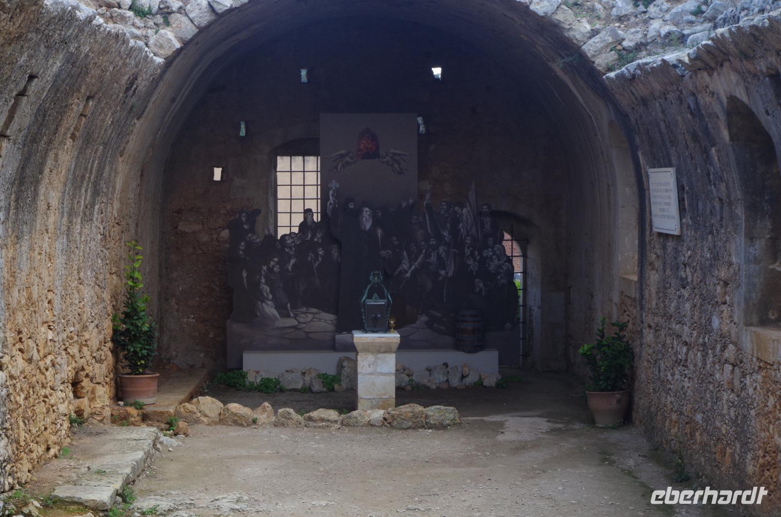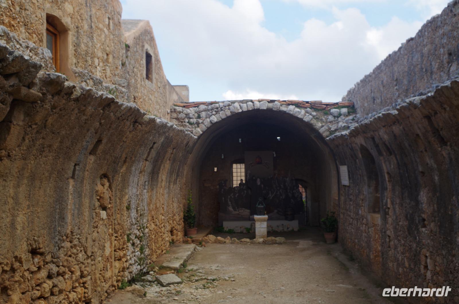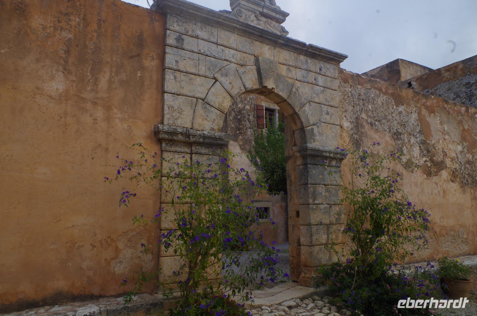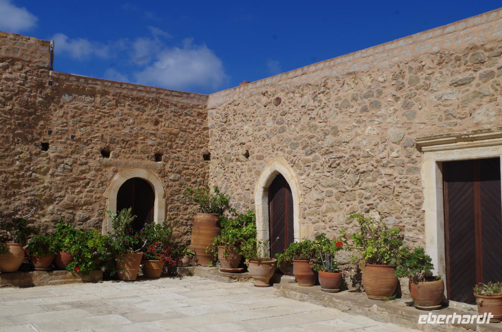 Heute hatten wir noch einmal einen langen Tag vor uns, die Fahrt ging Richtung Westen. Wir fuhren zunächst zum Arkadi Kloster, welches einst ein orthodoxes Kloster war, es spielte eine große Rolle im Kampf der Unabhängigkeit Kretas vom Osmanischen Reich. Auf dem Gelände ist eine alte Zypresse zu sehen, die 1866 bei der großen Schlacht vom Feuer betroffen war, dennoch ist sie erhalten geblieben, auch eine Kugel steckt noch in ihr. Gegründet wurde das Kloster bereits zu Beginn des 13. Jahrhunderts. Es hat außerdem eine wirklich tolle Außenanlage mit einer herrlichen Bepflanzung.