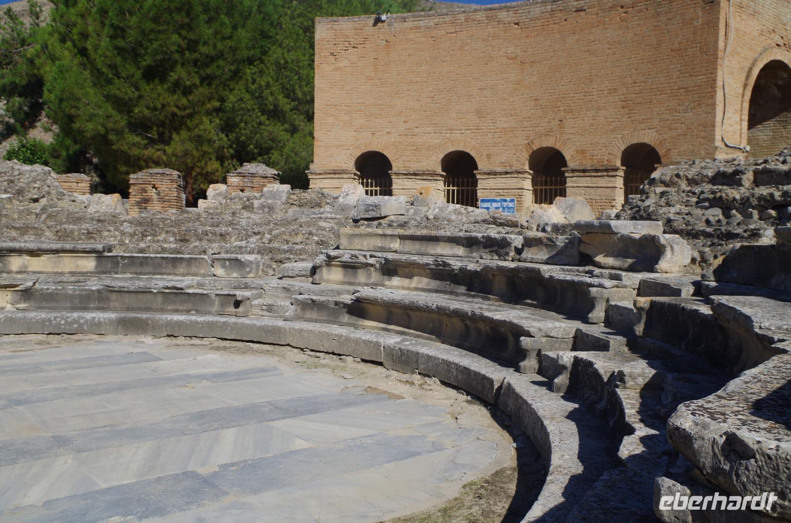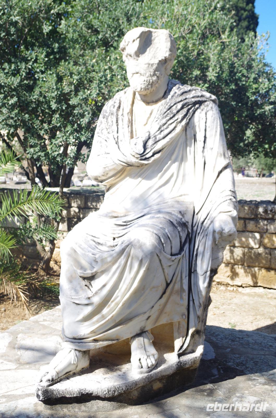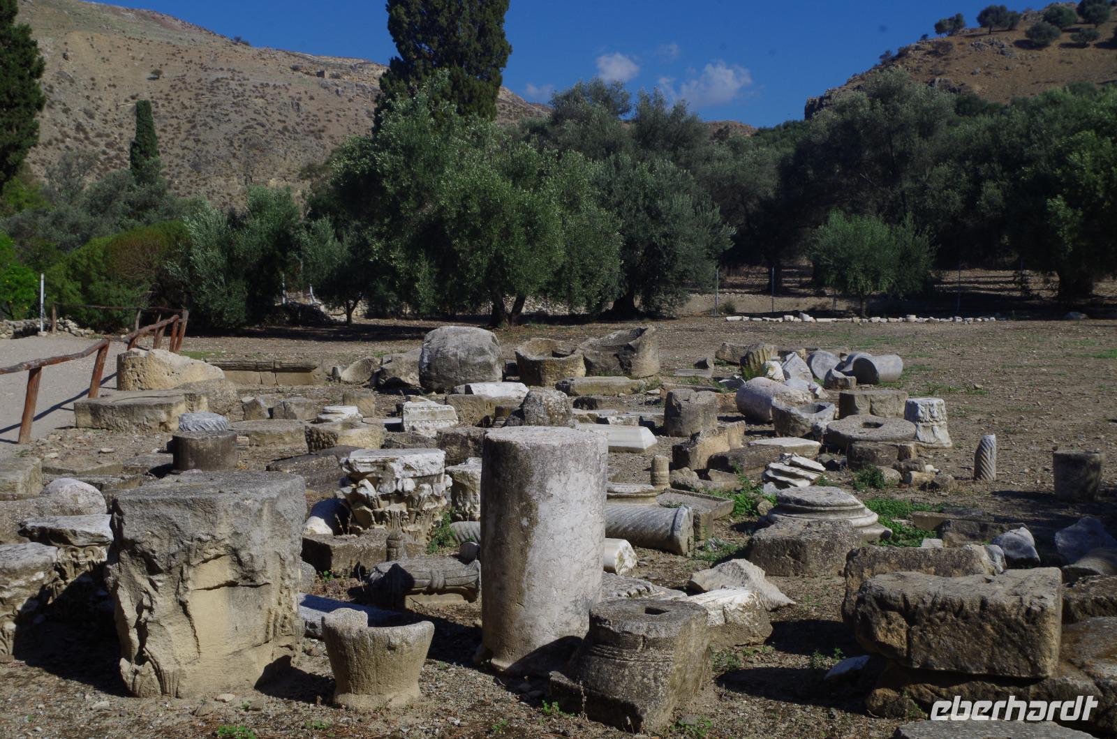 Unsere Reise führte uns heute weiter in den Süden Kretas. Wir fuhren zunächst in die Messara-Ebene, eine wunderschöne Landschaft. Dort besuchten wir Gortys, Rena führte uns durch die Ausgrabungen. Man sah auch die berühmte Titus Basilika, welche noch besonders gut erhalten ist. Dort wird auch heute noch am St. Titus Tag Gottesdienst gehalten. Des Weiteren wurde dort die sogenannte „Große Innenschrift" gefunden, der bislang älteste Gesetzeskodex Europas.