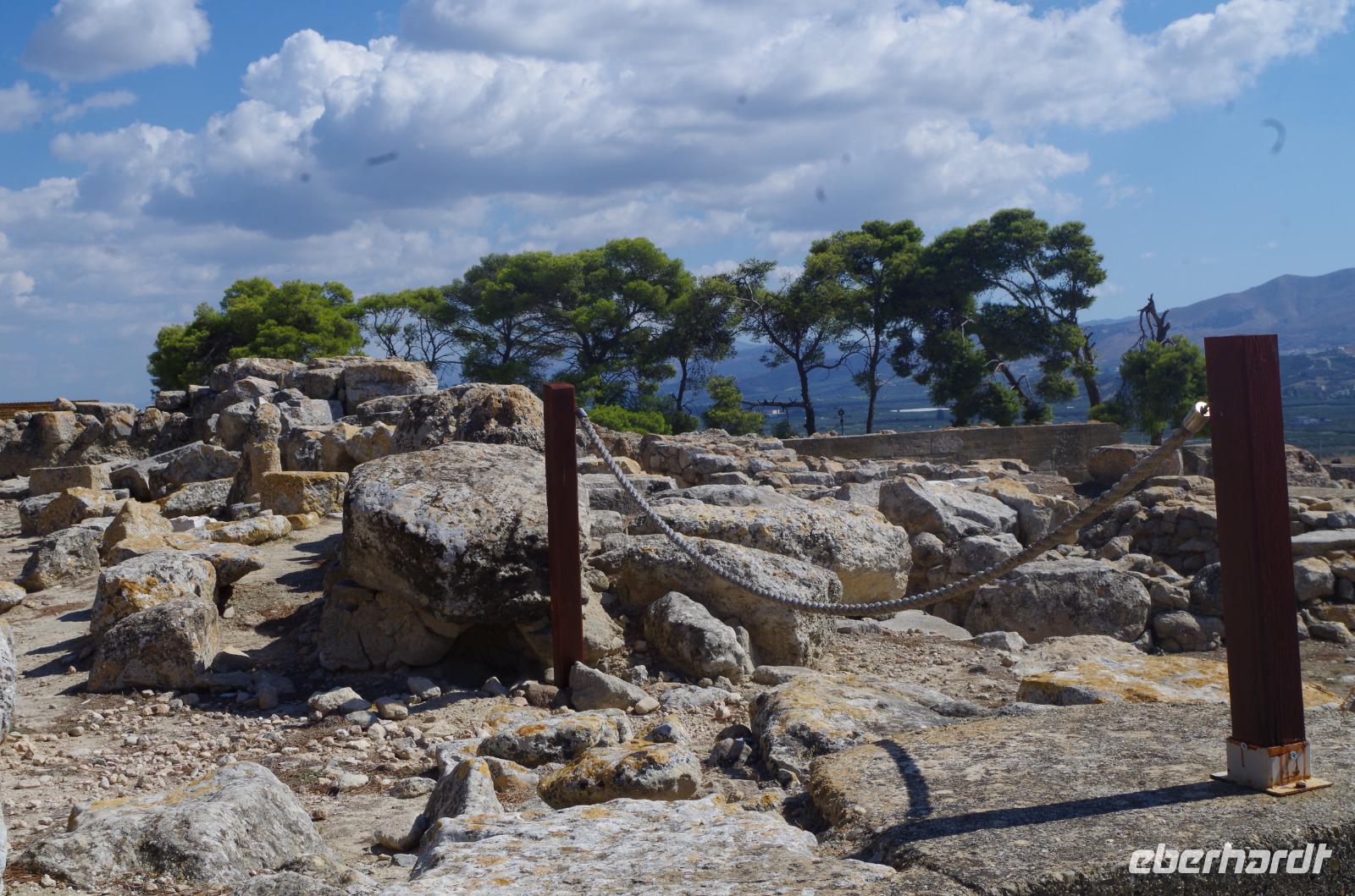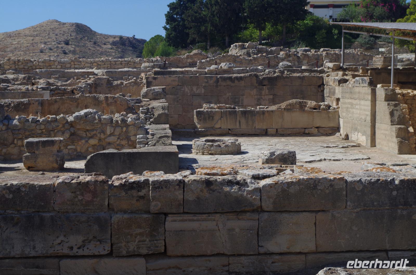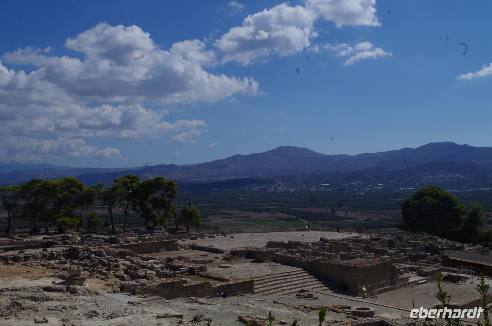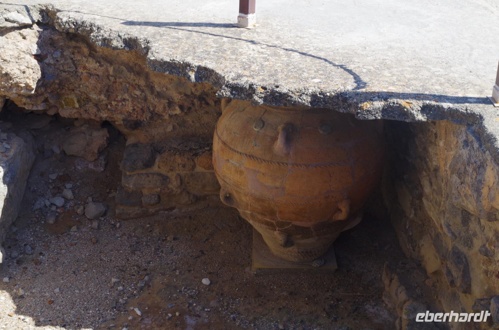 Im Anschluss besichtigen wir eine weitere Ausgrabungsstätte, die zweitbekannteste nach dem Palast von Knosses, wir fuhren nach Festos. Die Anlage ist mit knapp 10.000 m² jedoch etwas kleiner als jene in Knossos, es lebten dort aber ebenfalls die Minoer. Rena führte uns über die Anlage und gab uns zahlreiche interessante Informationen. Beispielsweise wurde der berühmte Diskus, dessen Aufschriften noch heute nicht übersetzt wurden, dort während der Ausgrabungen im Palast von Festos gefunden. Die Anlage hatte Archäologen zur Folge maximal 3 Stockwerke, die Ausgrabungen sind aber noch nicht vollständig abgeschlossen.