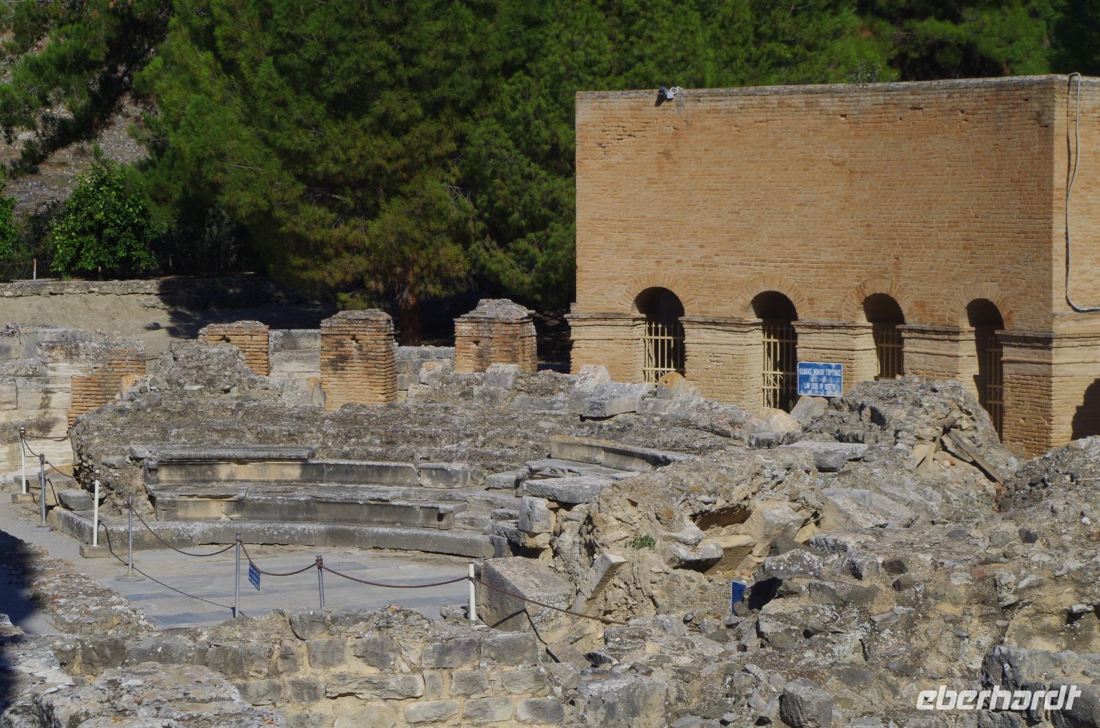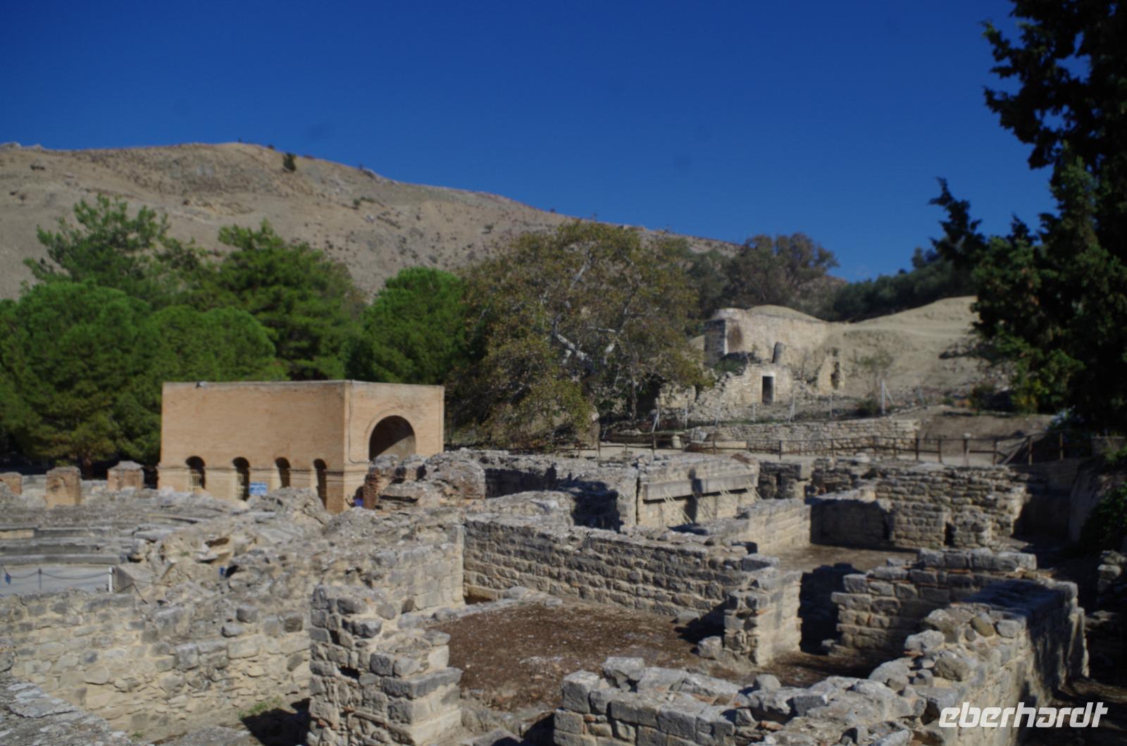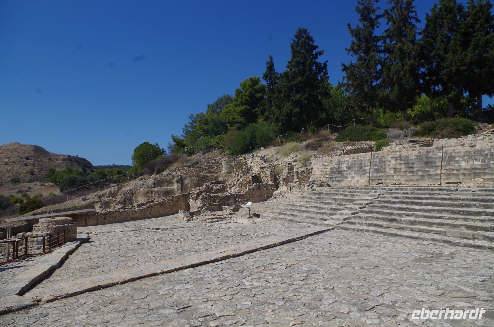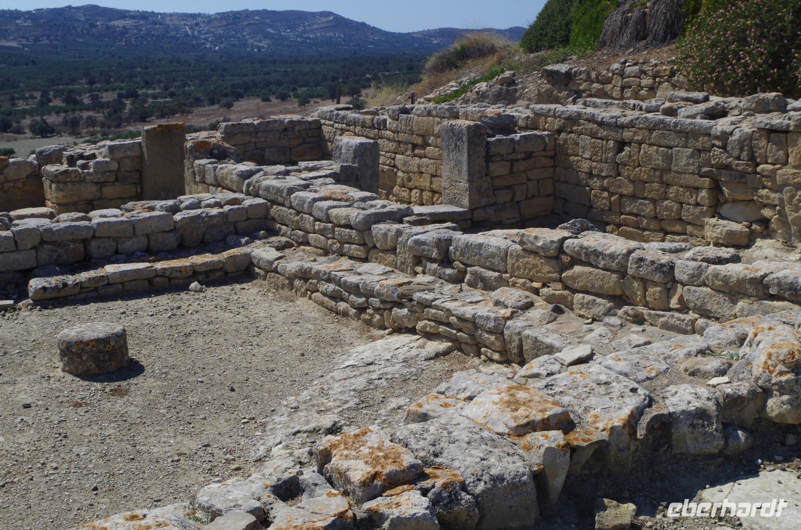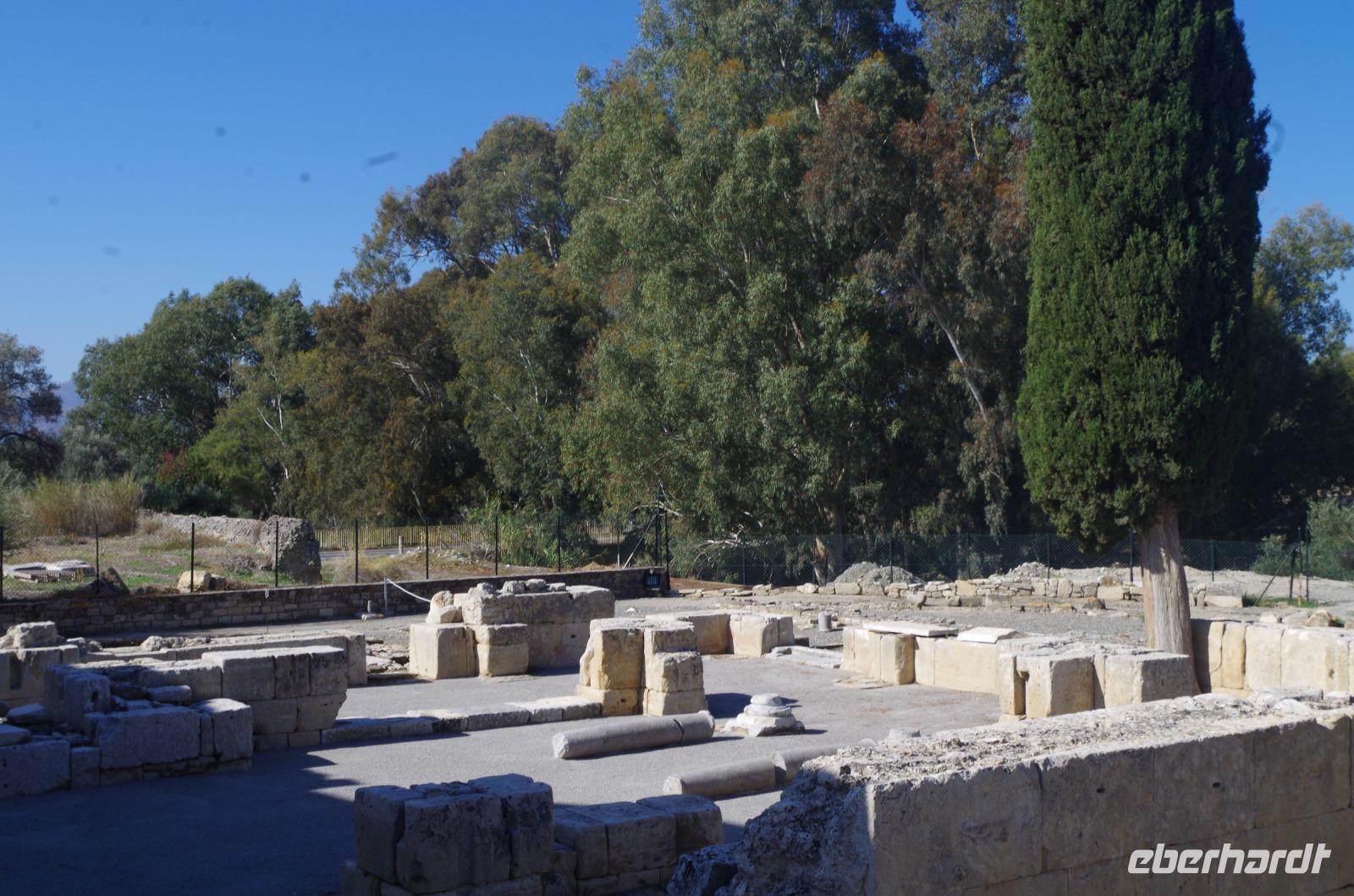 Im Anschluss besichtigen wir eine weitere Ausgrabungsstätte, die zweitbekannteste nach dem Palast von Knosses, wir fuhren nach Festos. Die Anlage ist mit knapp 10.000 m² jedoch etwas kleiner als jene in Knossos, es lebten dort aber ebenfalls die Minoer. Rena führte uns über die Anlage und gab uns zahlreiche interessante Informationen. Beispielsweise wurde der berühmte Diskus, dessen Aufschriften noch heute nicht übersetzt wurden, dort während der Ausgrabungen im Palast von Festos gefunden. Die Anlage hatte Archäologen zur Folge maximal 3 Stockwerke, die Ausgrabungen sind aber noch nicht vollständig abgeschlossen.