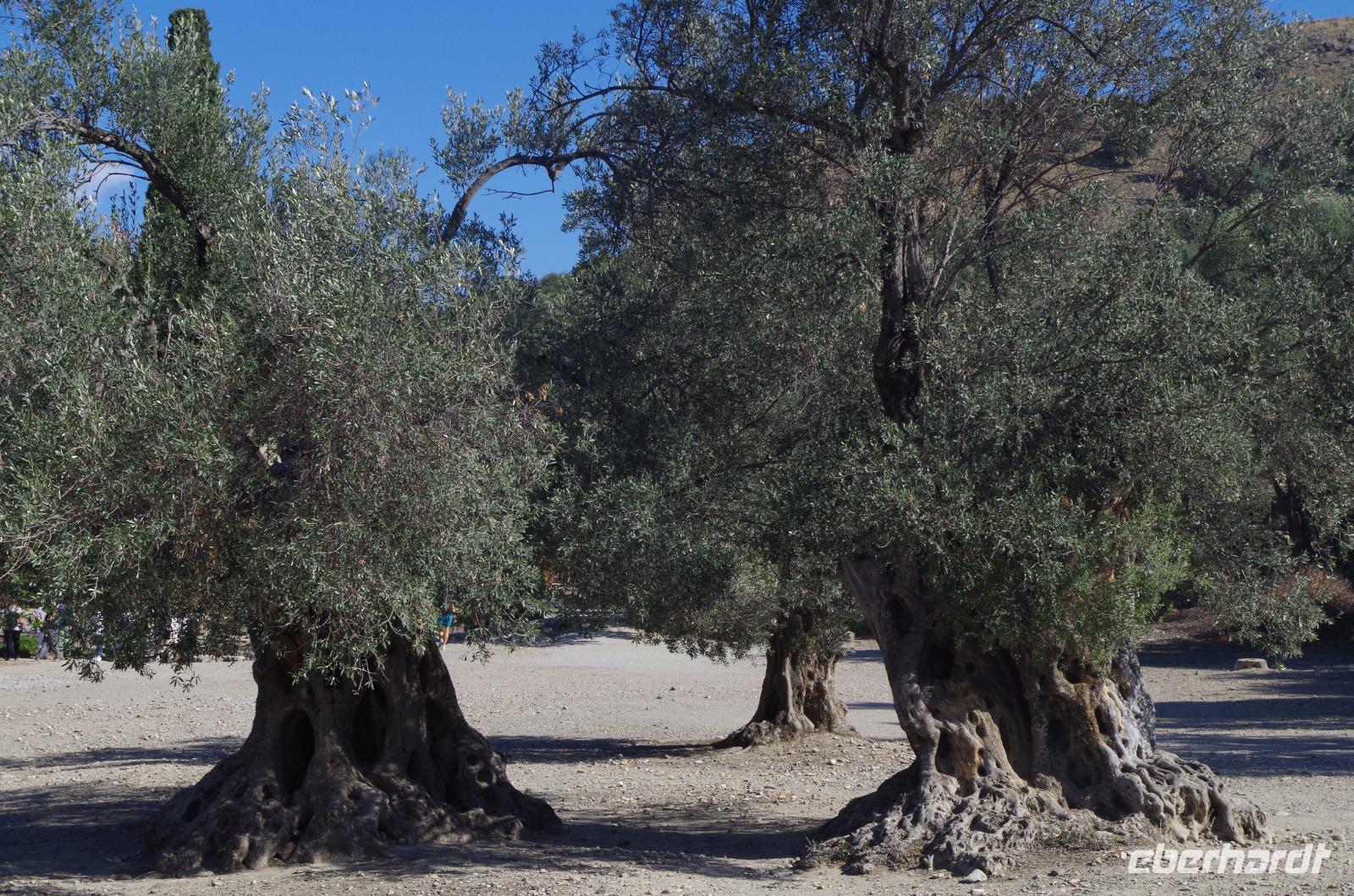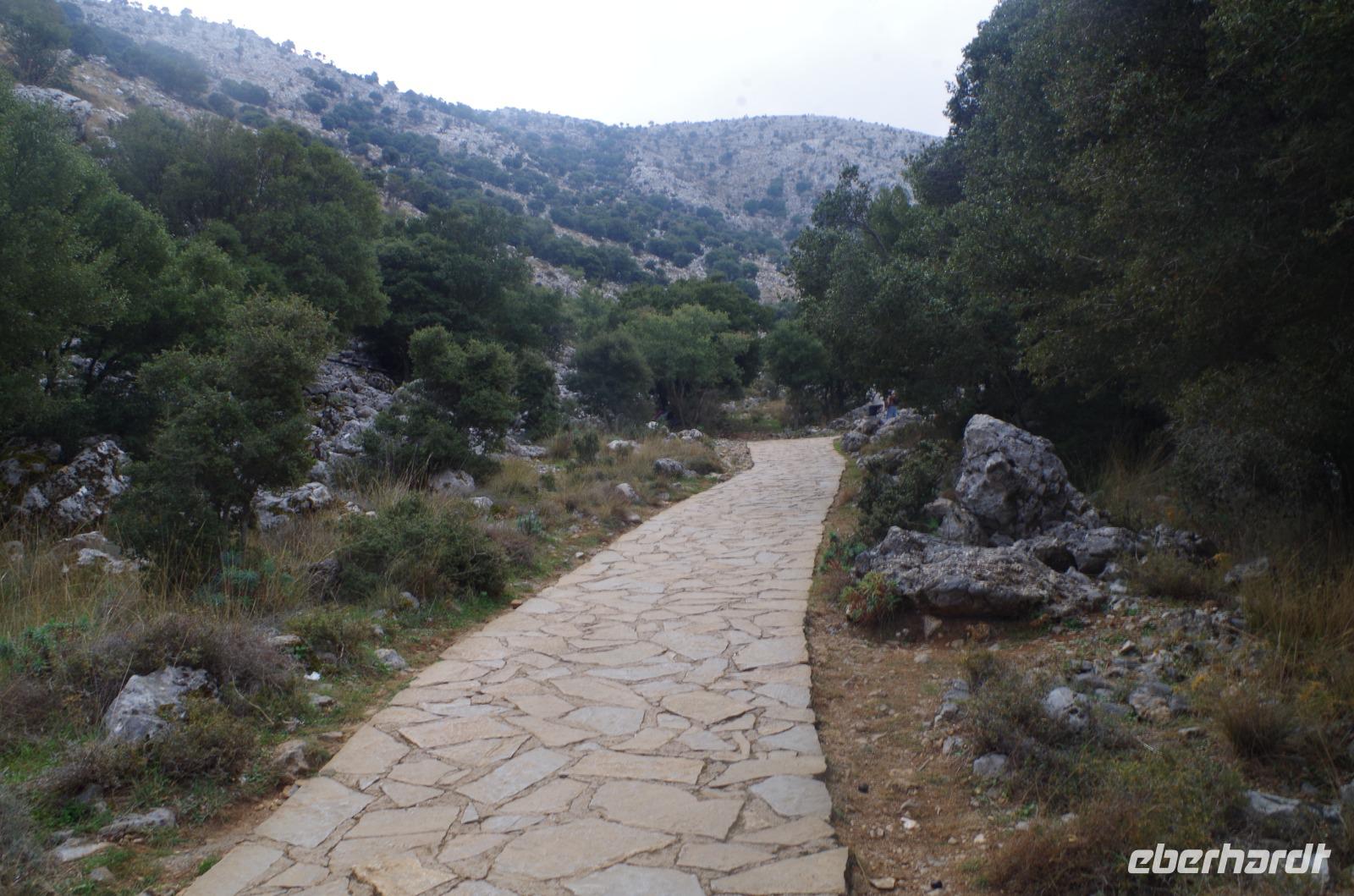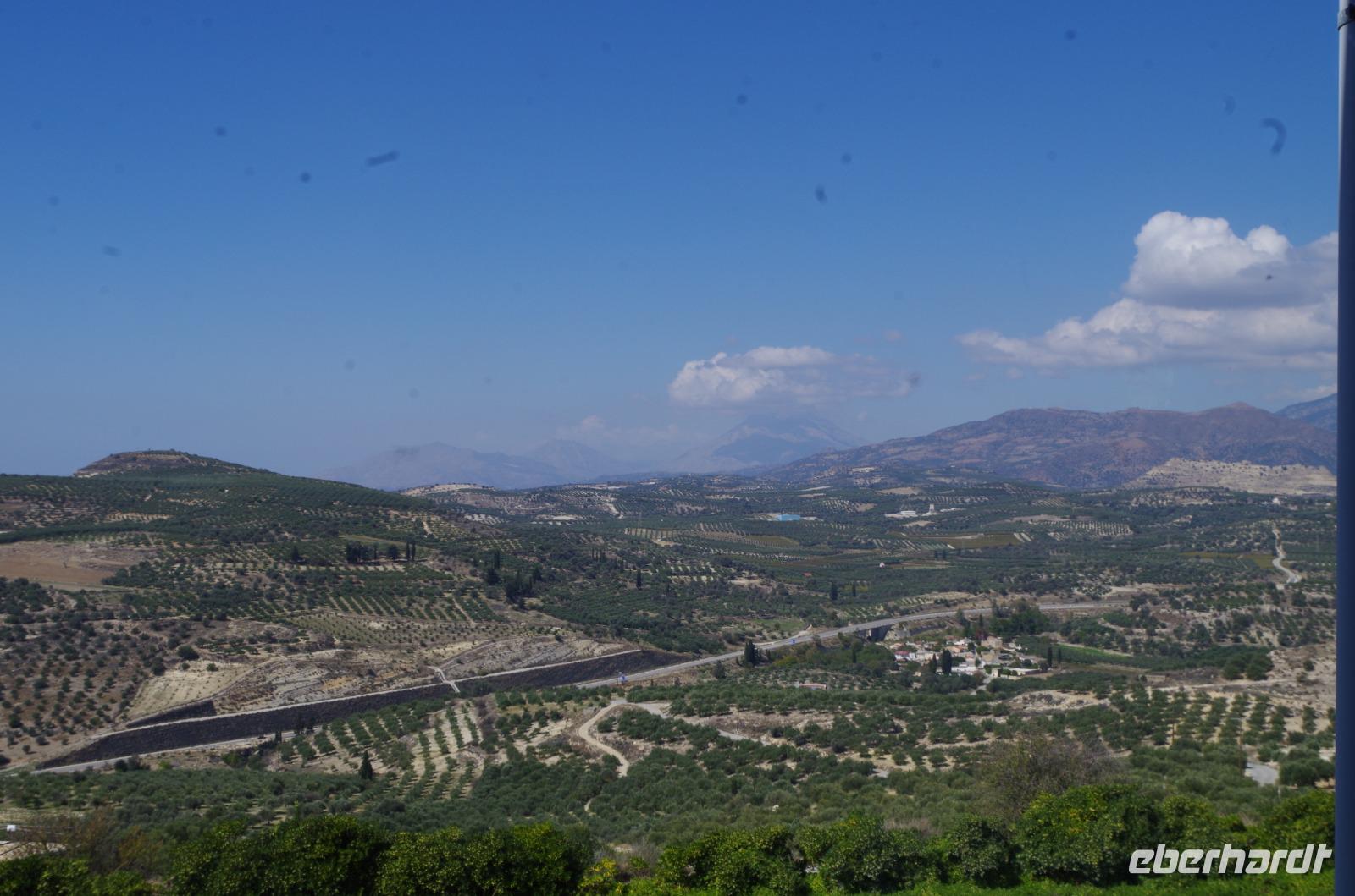 Weiter ging es dann in ein sehr kleines Kloster, das Kloster Panagia Vidiani, durch das Rena uns führte. Anschließend fuhren wir zur Höhle von Psichro, wo Zeus geboren wurde. Leider streikten heute die Wächter, sodass wir nicht in das Innere der Höhle konnten, dennoch war es möglich hinauf zur Höhle zu wandern. Von dort aus hatte man einen wunderbaren Blick auf die Lassithi-Hochebene. Es gab auch einige Tavernen, um die Mittagspause zu verbringen. Danach führte uns unsere Weiterfahrt zum Dorf Krasi, wo wir die größte und älteste Platane Kretas sehen konnten. Diese ist schätzungsweise ca. 2.000 Jahre alt.