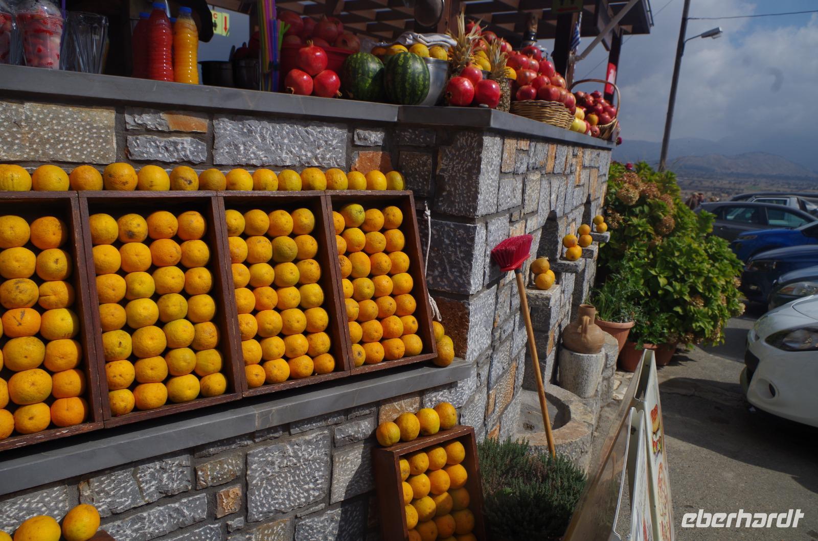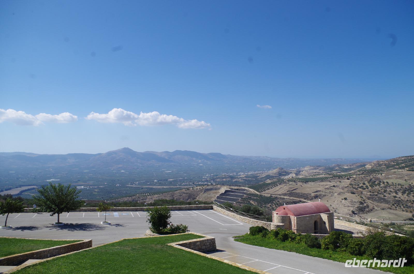 Der letzte Tagesausflug unserer Rundreise führt uns ins „unbekannte Kreta" in die Lassithi-Hochebene. Wir besichtigten zuerst die Kirche Panagia i Kardiotessa und dessen Kloster in Kera. Rena führte uns über die Anlage. Diese Kirche wurde etwa im 14. Jahrhundert erbaut, wir sahen die noch recht gut erhaltene Wandbemalung. Eine dort ausgestellte Ikone wurde laut Erzählungen einst von den Türken verschleppt, hat jedoch selbst wieder in das Kloster zurück gefunden. Als Überraschung erwartete die Gäste dort ein kleines Picknick mit tollem Blick auf die Hochebene.