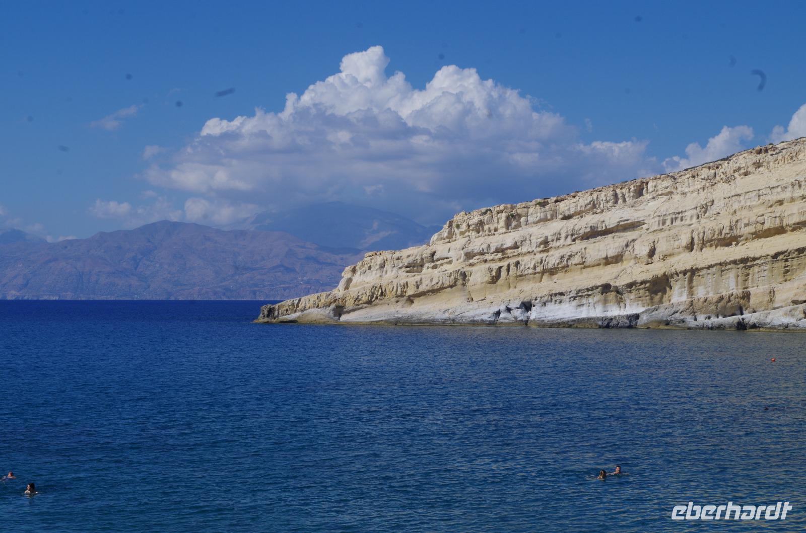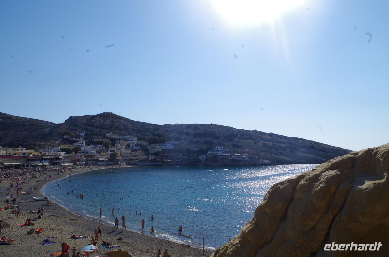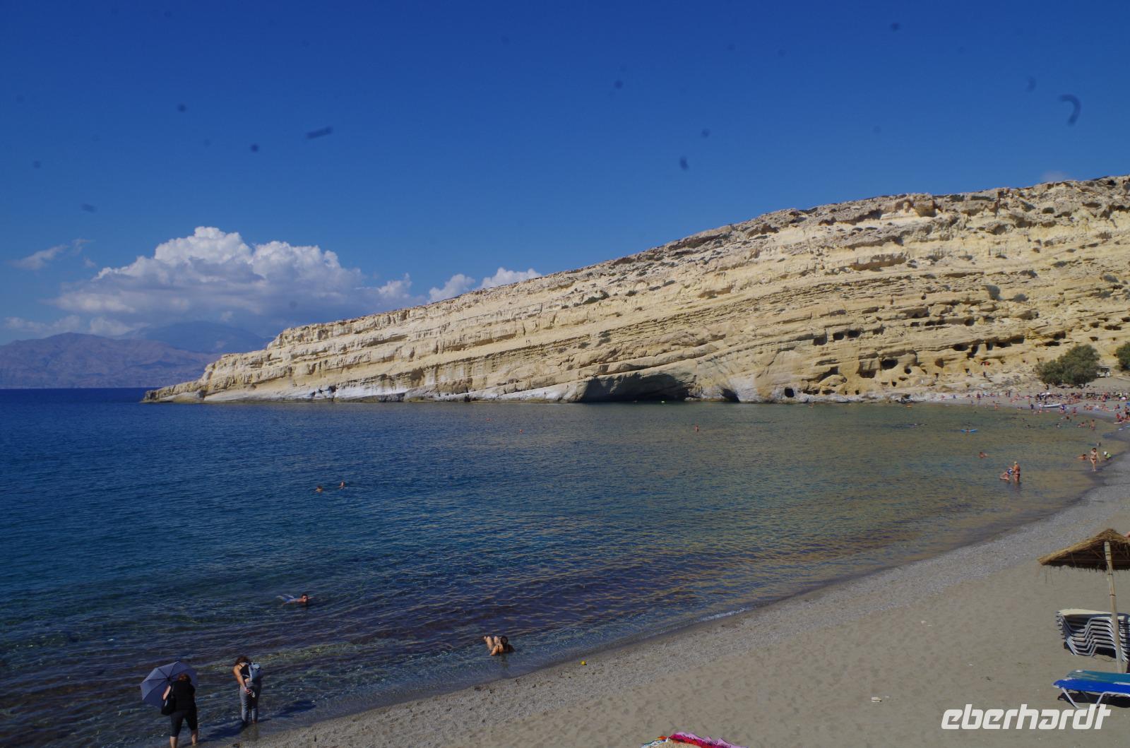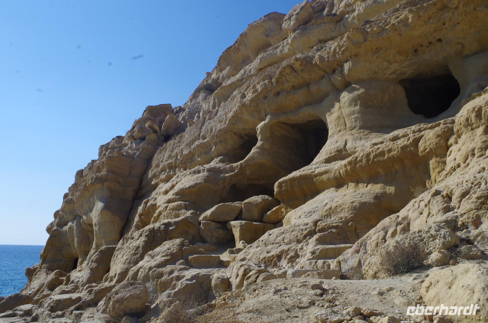 Weiter ging es dann zum lybischen Meer nach Matala, dort standen verschiedene Möglichkeiten zur Auswahl. Der kleine Ort lädt zum Bummeln ein, verweilen in einer der gemütlichen Tavernen, zum schwimmen im türkis glitzernden Meer bei strahlendem Sonnenschein oder zum Besuch der Hippiehöhlen.