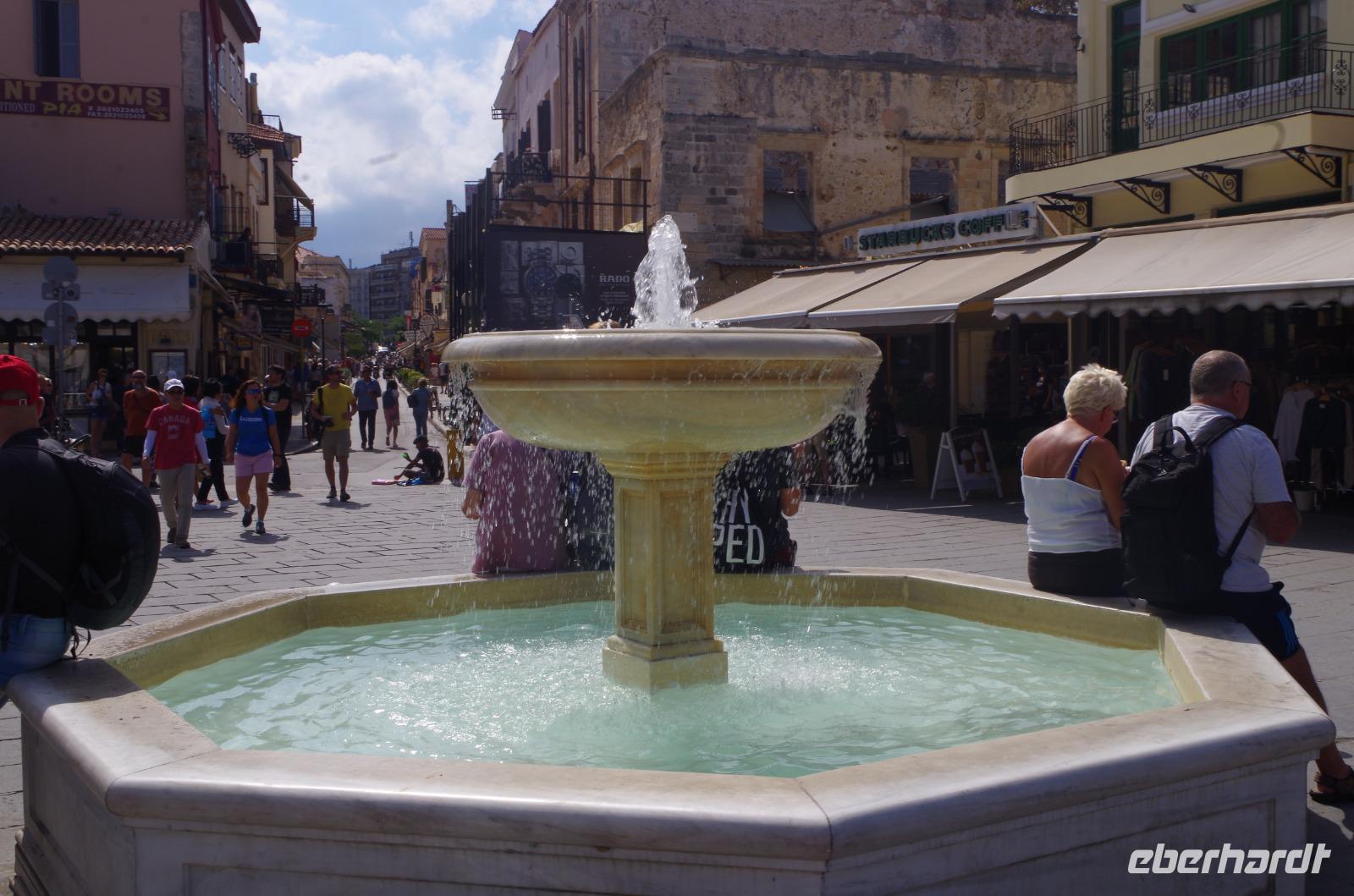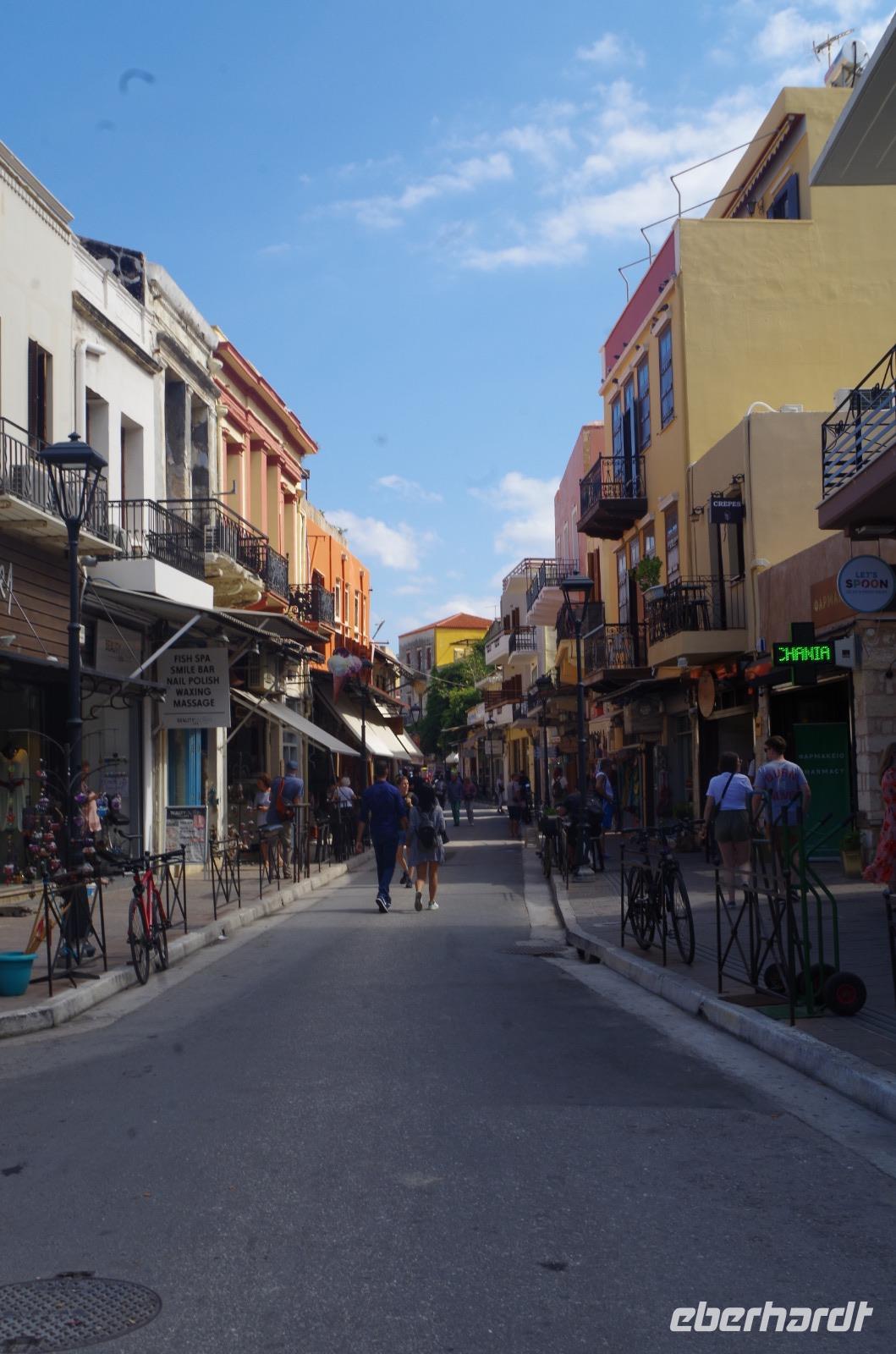 Weiter fuhren wird dann nach Chania, eine wirklich schöne Hafenstadt, die zum Bummeln in zahlreichen Geschäften, der großen Markhalle mit vielen typisch kretischen Produkten oder über den Ledermarkt einlädt. Rena führte uns ein wenig durch die Stadt und anschließend hatten wir Zeit zur freien Verfügung, um diese eigenständig zu erkunden. Auf dem Rückweg machten wir noch einen Halt in Rethymnon. Eine etwas kleinere Hafenstadt, aber ebenfalls sehr schön mit zahlreichen hübschen kleinen Gassen. Während einer Führung durch Rena stoppten wir an einem Geschäft in dem Kataifi und Baklava hergestellt werden. Es ist der einzige Betrieb, wo diese noch handgemacht hergestellt werden. Der anderen Eberhardt Gruppe und uns wurde gezeigt, wie der Teig unglaublich dünn ausgebreitet wurde und daraus dann später Kataifi und Baklava entstanden. Ein wenig Zeit verblieb noch zum eigenständigen durch die Straßen schlendern bevor wir uns auf den Rückweg zum Hotel machten. Dort war heute griechischer Abend, später wurden auch an der Poolbar noch typische griechische Volkstänze aufgeführt.