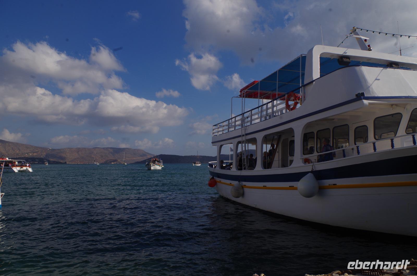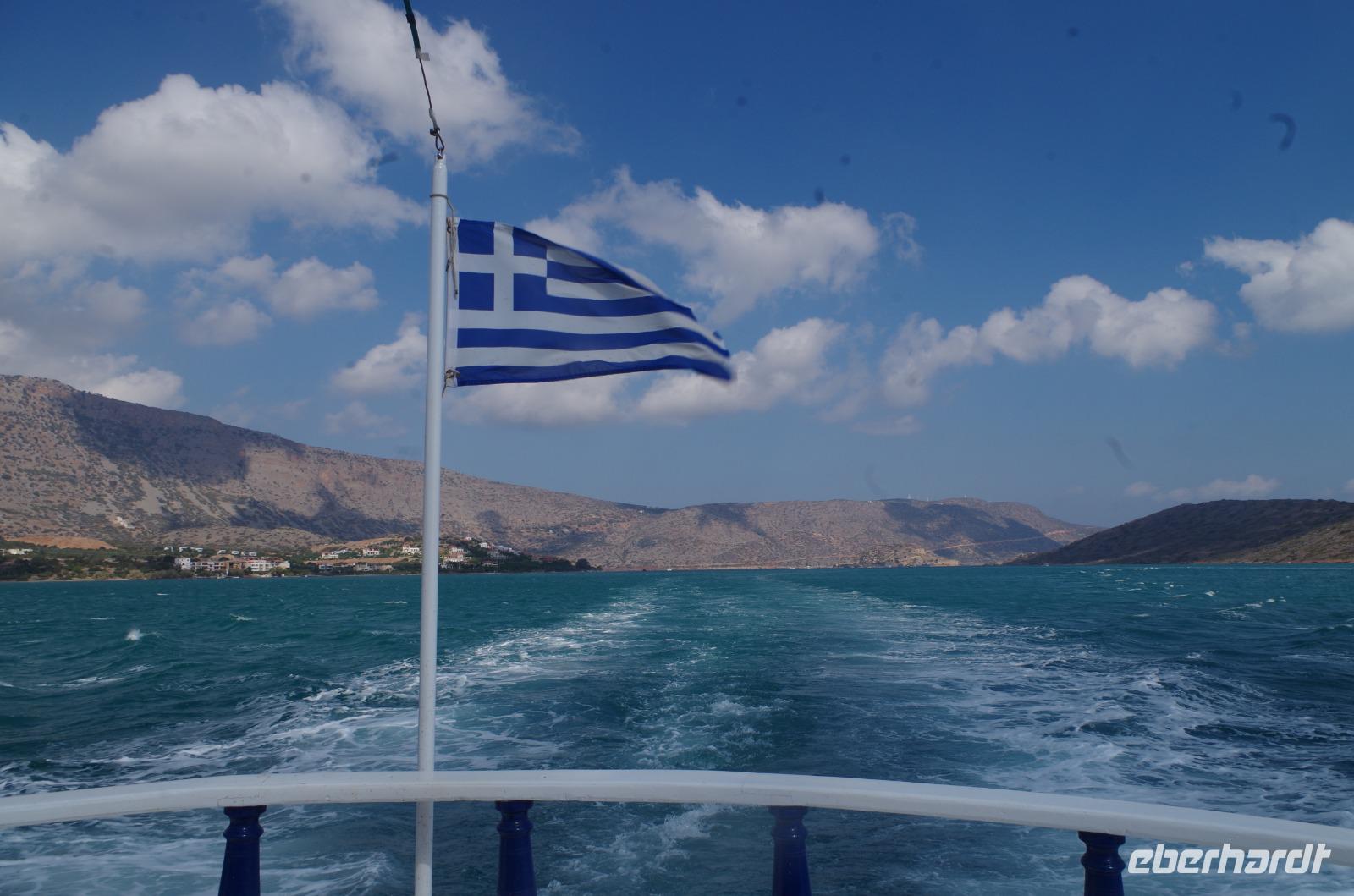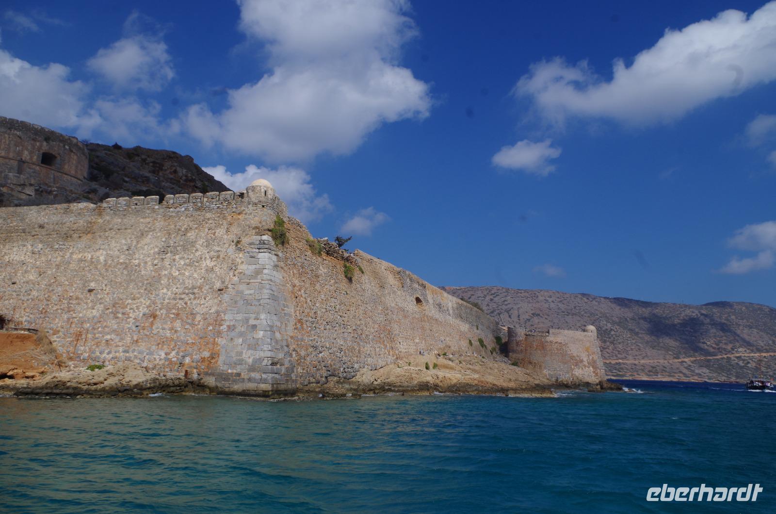 Nach dem Frühstück machten wir uns heute auf den Weg zur Insel Spinalonga. Mit dem Bus fuhren wir nach Elounda und stiegen dort gemeinsam mit der anderen Eberhardt Gruppe auf das Schiff. Die Fahrt dauert nicht lang, im Nu erreichten wir die Insel Spinalonga. Im 16. Jahrhundert erbauten die Venezianer dort eine Burg, später waren die Osmanen vorherrschend und von 1903-1957 lebten dort etwa 2.000 Leprakranke. Sie waren dort isoliert von der Außenwelt, um niemanden anzustecken. Wer einmal auf der Insel war, durfte nie wieder zurück, bis 1957 endlich ein Heilmittel entwickelt wurde und auch die letzte Leprakolonie Europas auch sein Ende fand. Auf unserer Rückfahrt mit dem Schiff drehten wir noch einmal eine Runde um Spinalonga, das Wasser war glasklar und glitzerte im Sonnenschein.